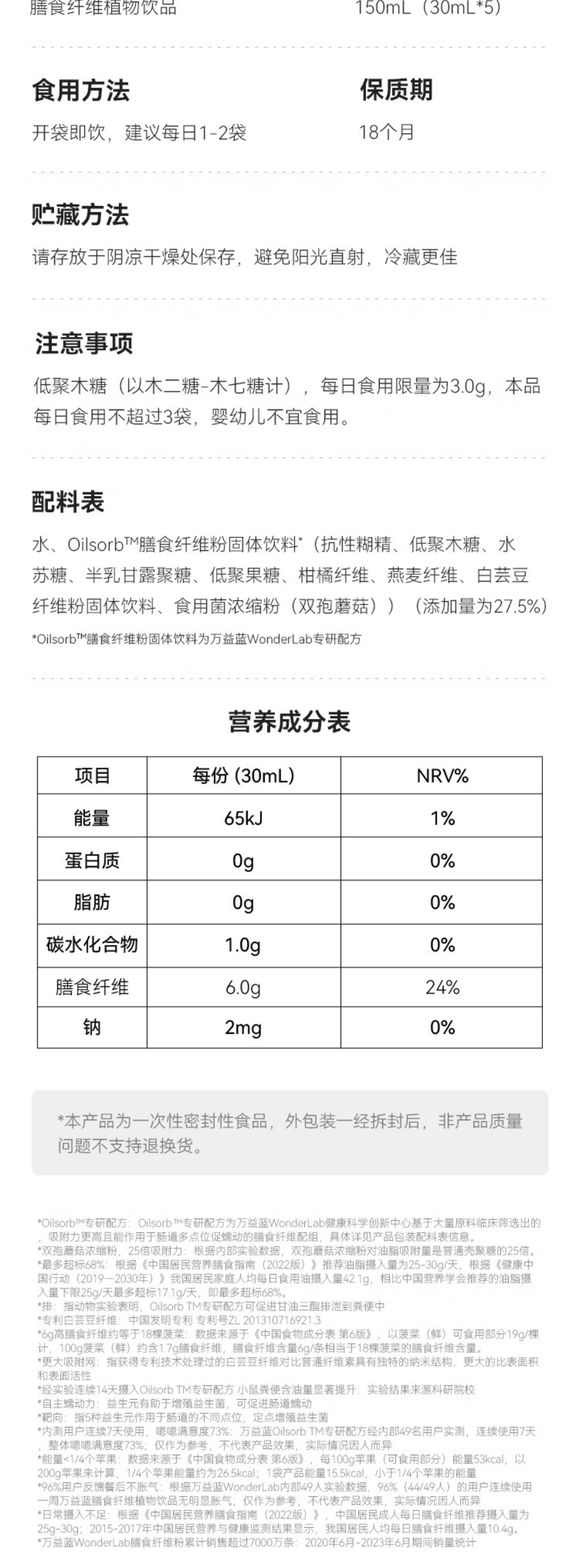 Wonderlab Wan Yi Blue Dietary Fiber Solid Drink Supplement - a Meal-Time and Post-Meal Blocker and Savior