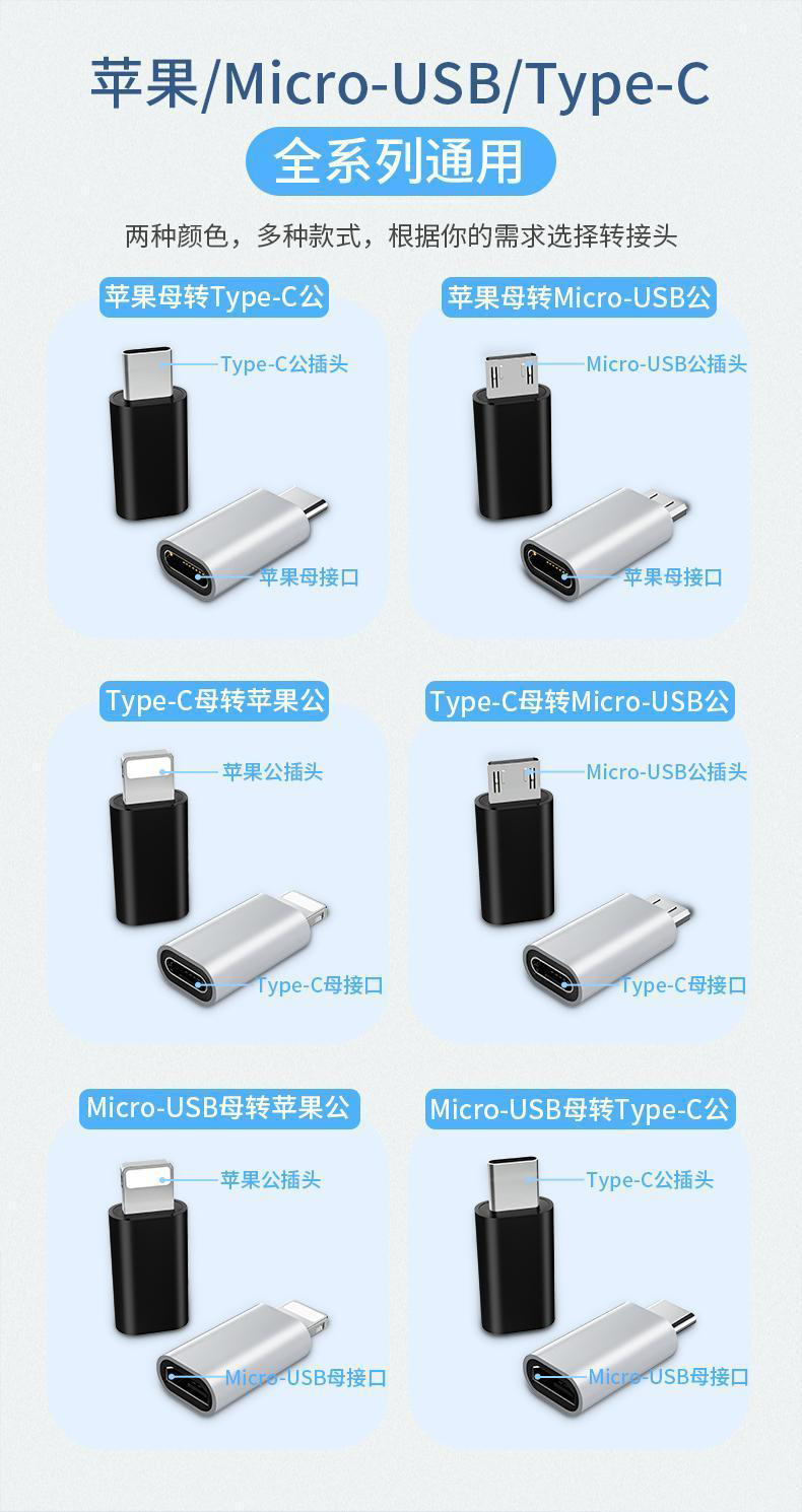 Color Classification (Android Female to Apple Male Adapter)[Adapter]-1 Pack[Temperament Silver],(Android Female to Apple Male Adapter)[Adapter]-1 Pack[Gentleman Black],(Android Female to Apple Male Adapter)[Adapter]-1 Pack[Local Gold],(Android Female to Apple Male Adapter)[Adapter]-1 Pack[Rose Gold],(Apple Lightning to Usb-C Adapter)[Adapter]-1 Pack[Gentleman Black],(Apple Lightning to Usb-C Adapter)[Adapter]-1 Pack[Local Gold],(Apple Lightning to Usb-C Adapter)[Adapter]-1 Pack[Rose Gold],(Apple Lightning to Usb-C Adapter)[Adapter]-1 Pack[Temperament Silver],(Mini) Apple Female to Usb-C Male Adapter[Adapter]-1 Pack[Temperament Silver],(Apple) Lightning to Usb-C Adapter[Adapter]-1 Pack[Gentleman Black],(Apple) Lightning to Usb-C Adapter[Adapter]-1 Pack[Local Gold],(Apple) Lightning to Usb-C Adapter[Adapter]-1 Pack[Rose Gold],(Small)[Android Female to Type-C Male]Adapter-1 Pack[Classic Silver],(Small)[Android Female to Type-C Male]Adapter-1 Pack[Gentleman Black],(Small)[Android Female to Type-C Male]Adapter-1 Pack[Local Gold],(Small)[Android Female to Type-C Male]Adapter-1 Pack[Rose Gold],(Small)[Typec Female to Android Male]Adapter-1 Pack[Classic Silver],(Small)[Typec Female to Android Male]Adapter-1 Pack[Gentleman Black],(Small)[Typec Female to Android Male]Adapter-1 Pack[Local Gold],(Small)[Typec Female to Android Male]Adapter-1 Pack[Rose Gold],(Small)[Typec Female to Apple Male]Adapter-1 Pack[Classic Silver],(Small)[Typec Female to Apple Male]Adapter-1 Pack[Gentleman Black],(Small)[Typec Female to Apple Male]Adapter-1 Pack[Local Gold],(Small)[Typec Female to Apple Male]Adapter-1 Pack[Rose Gold]