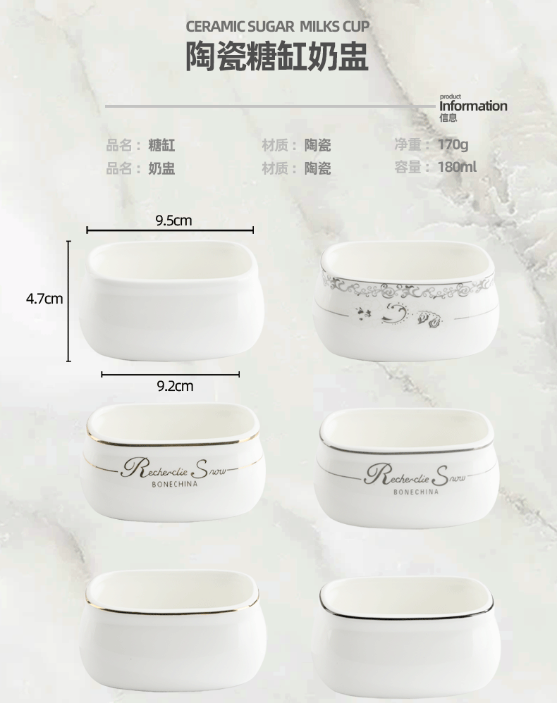 Color Classification Pure White Sugar Jar,Single Black Edge Sugar Bowl,Single Gold-Rimmed Sugar Bowl,Gold Rim Sugar Bowl,European Sugar Bowl,Silver-Rimmed Sugar Bowl,Pure White Milk Cup,Single Black Rim Milk Cup,Single Gold Rim Milk Cup,European Milk Cup,Silver Rim Milk Cup
