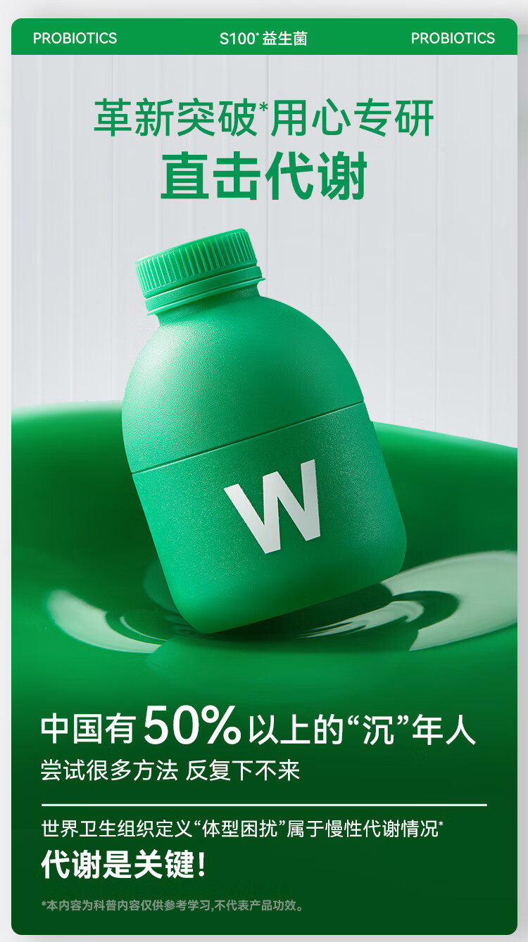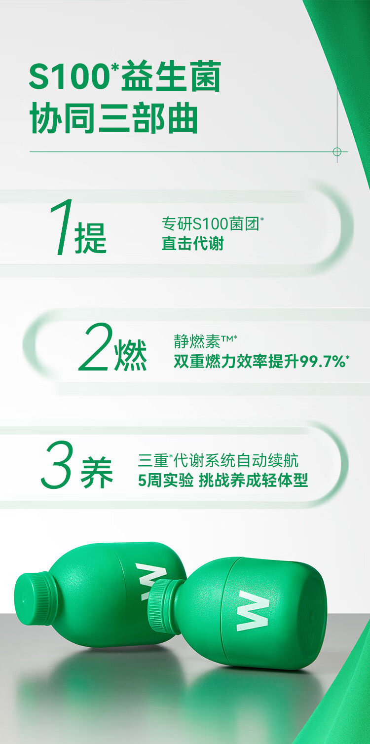 Wonderlab Wan Yi Lan S100 Metabolic Probiotics Wanderlab Morning and Night S Probiotics for Slimming Small Green Bottle