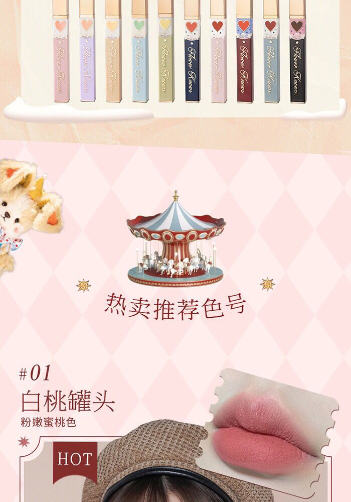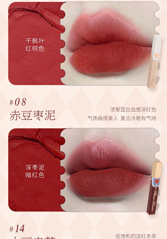 Near-Expiry Flower Knows Circus Velvet Mist Lip Glaze Lipstick Nude Lip Mud Velvet Moisturizing Matte Milk Tea Color