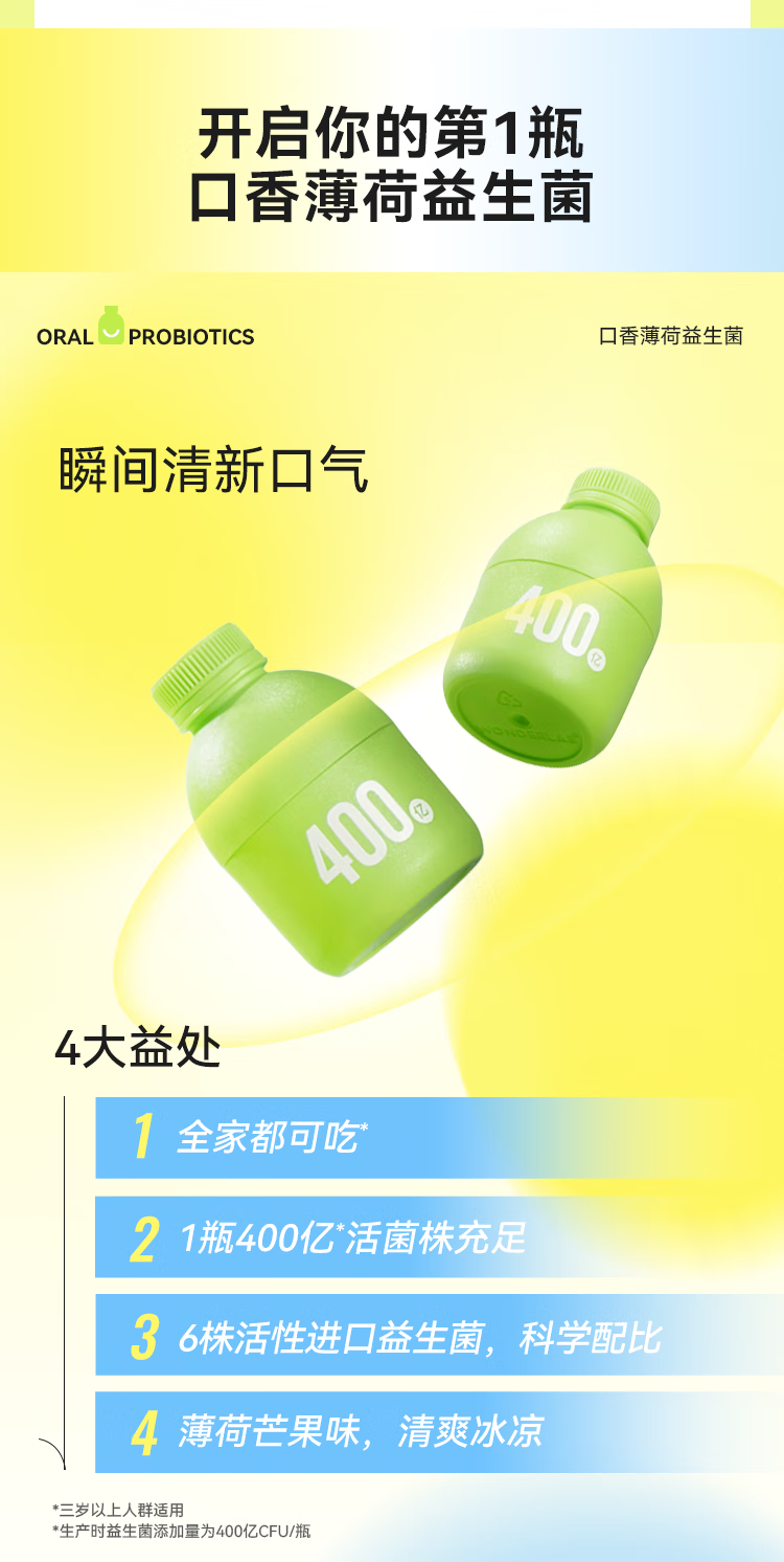 Wonderlab Wan Yi Lan Oral Probiotics Trillion Probiotics Oral Freshener for Bad Breath Small Green Bottle Freeze-Dried Powder