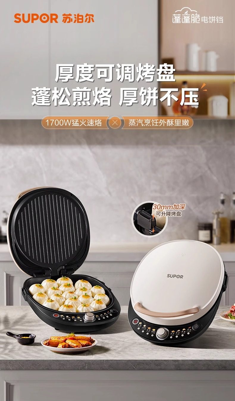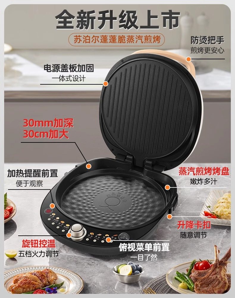 Supor Electric Griddle for Home Use, Double-Sided Heating Pancake and Crepe Maker, New Model, Deepened and Enlarged, Official Flagship Store Genuine Product