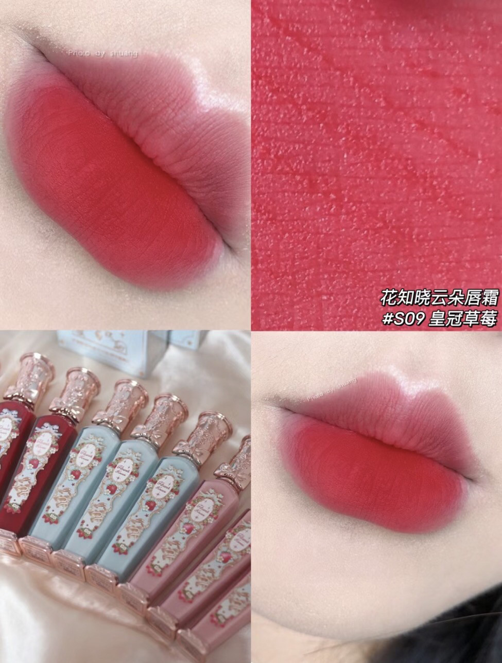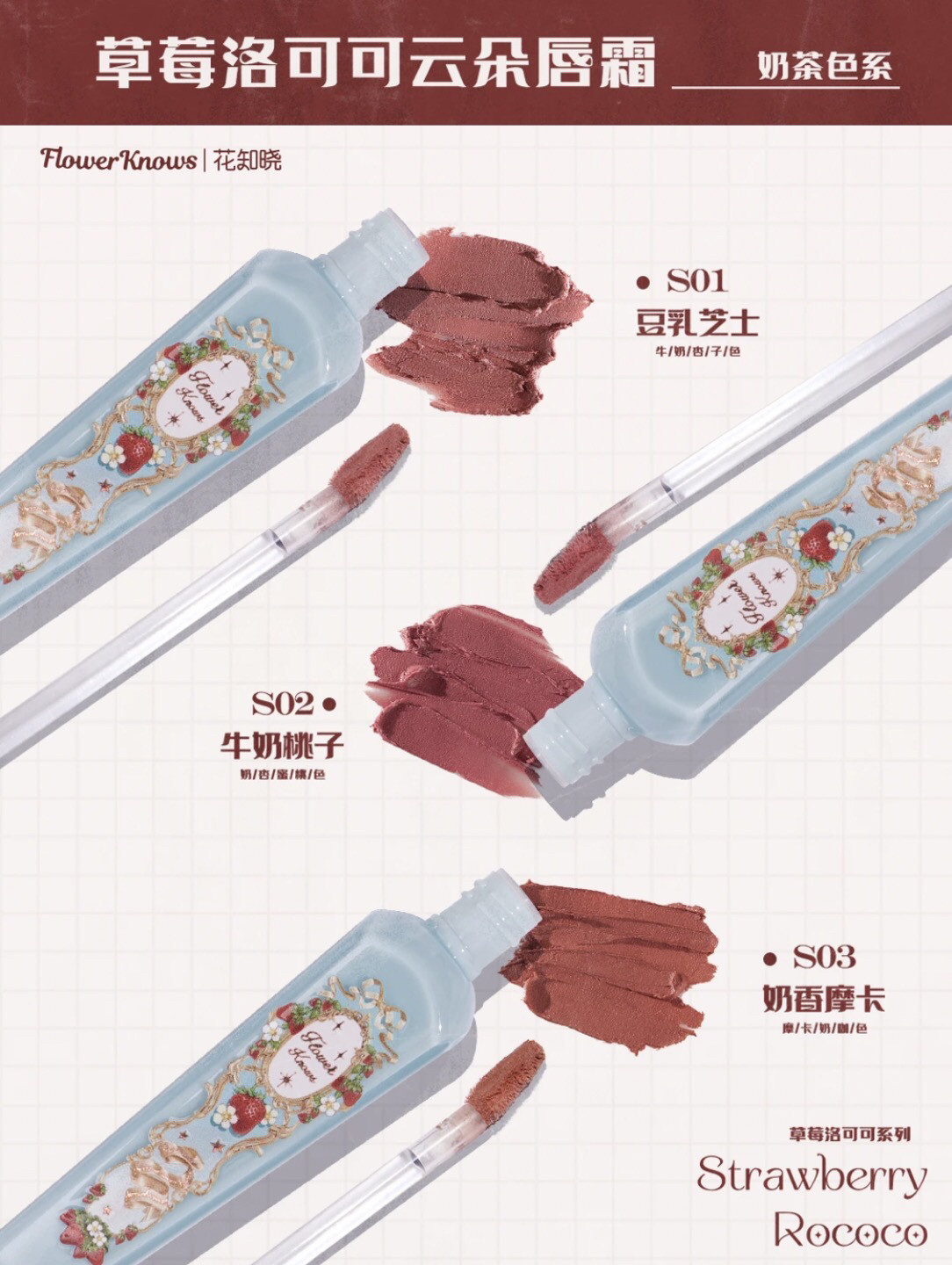 Floral Whisper Strawberry Rococo Cloud Lip Cream Lightweight Daily Lip Glaze Matte Milk Tea Color