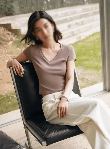 2024 New Summer Women's Clothing Simple and Versatile V-Neck T-Shirt Uwg440067 #