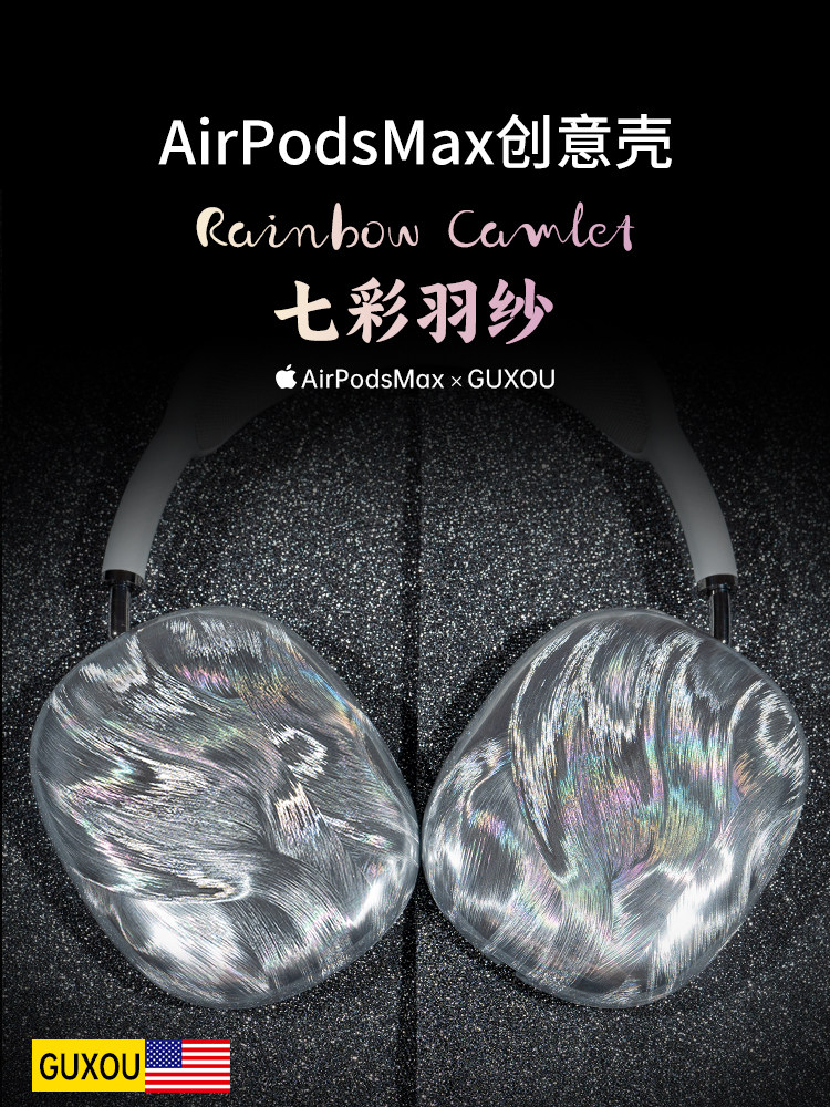 [Guxou Creative Case]Suitable for AirPods Max 2 Laser Feather White Protective Case Apple Over-Ear Headphones Max Earcup Horizontal Headband Apm Gradient Protective Case Accessories