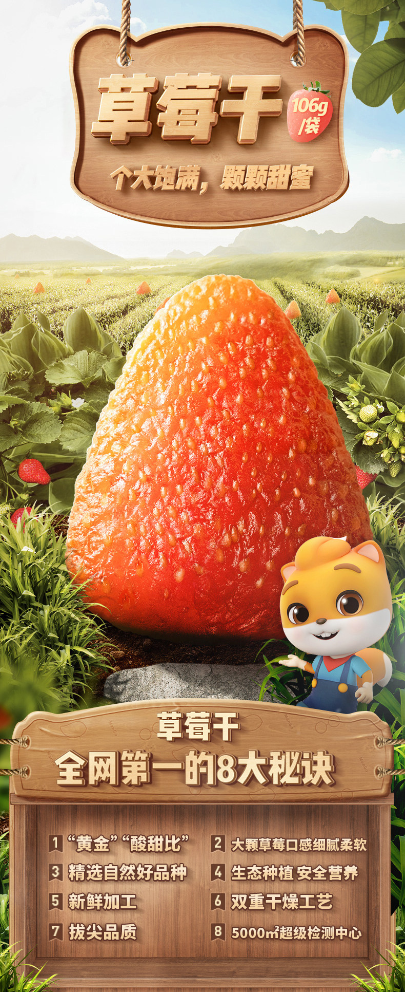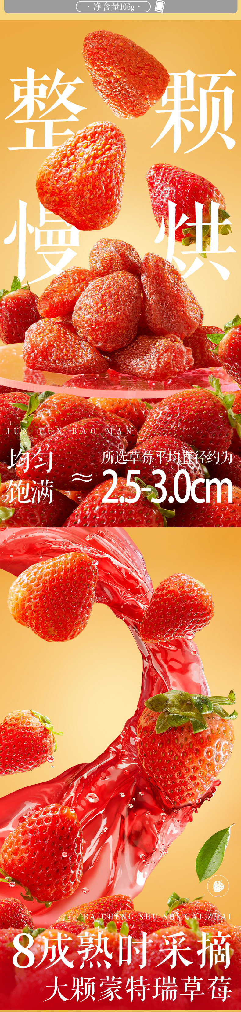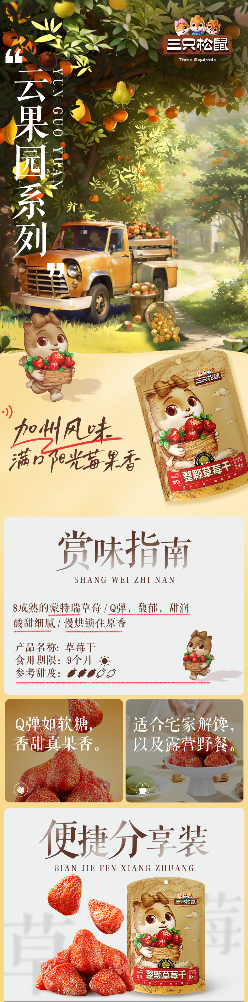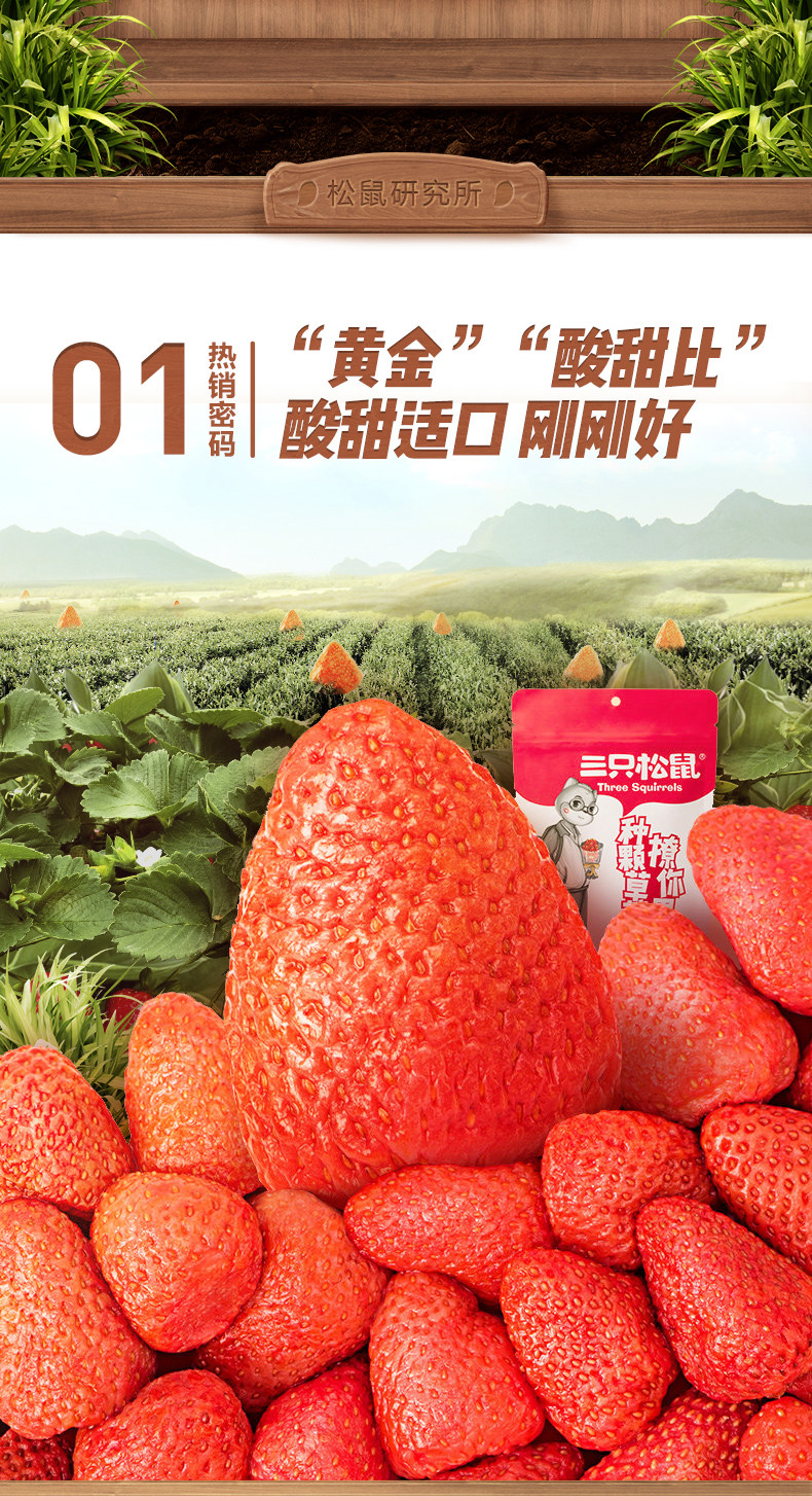 [Three Squirrels_Dried Strawberries 106g] Snacks, Candied Fruits, Preserved Fruits, Dried Fruits, Leisure Food