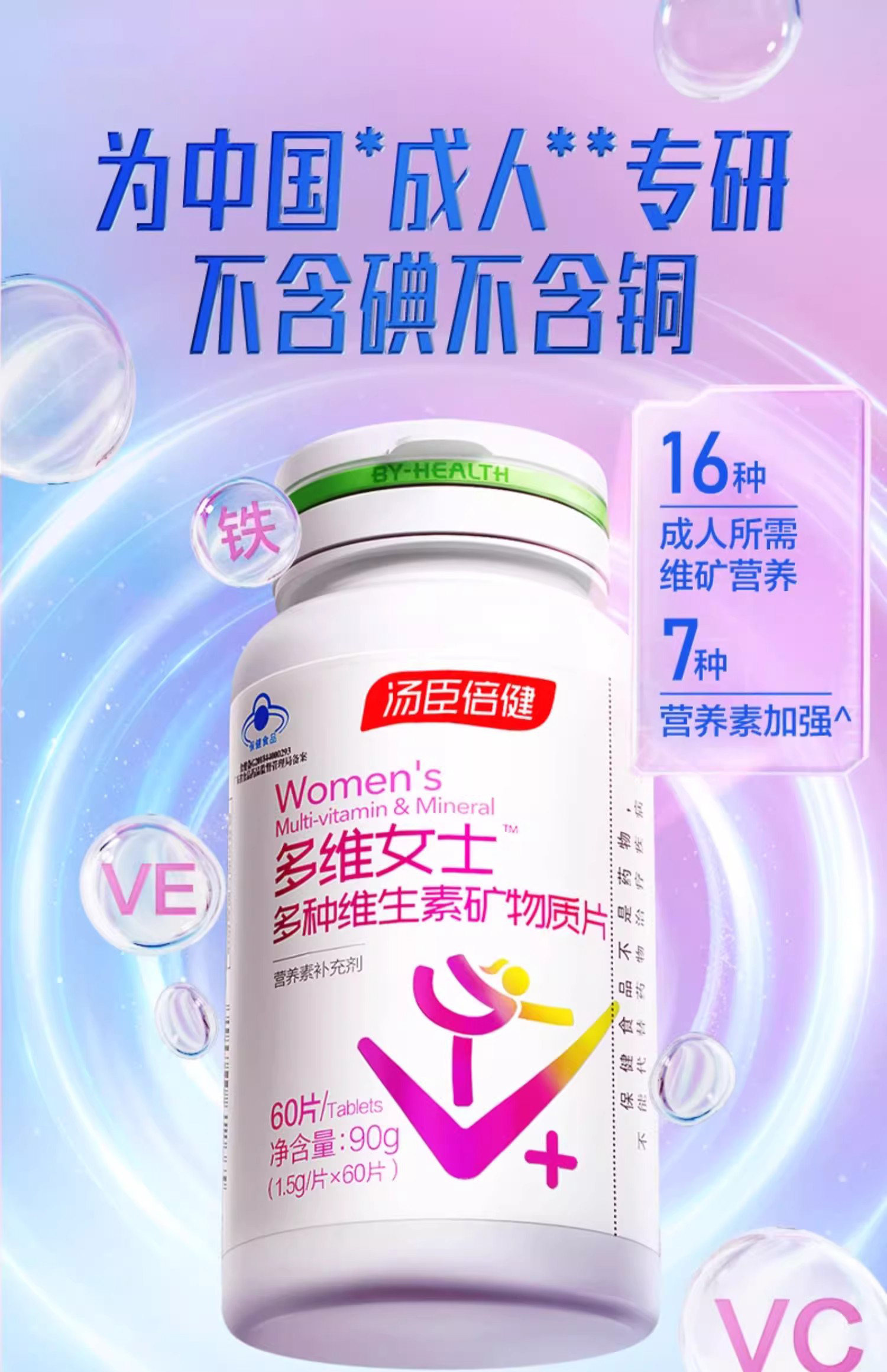 Tomson By-Health Women's Multivitamin and Mineral Tablets Calcium Tablets Women's Calcium Supplement Complex Bc Genuine Product