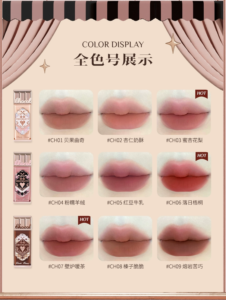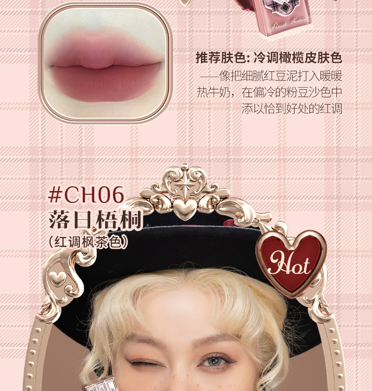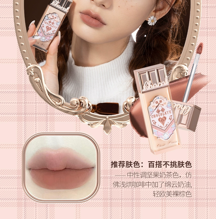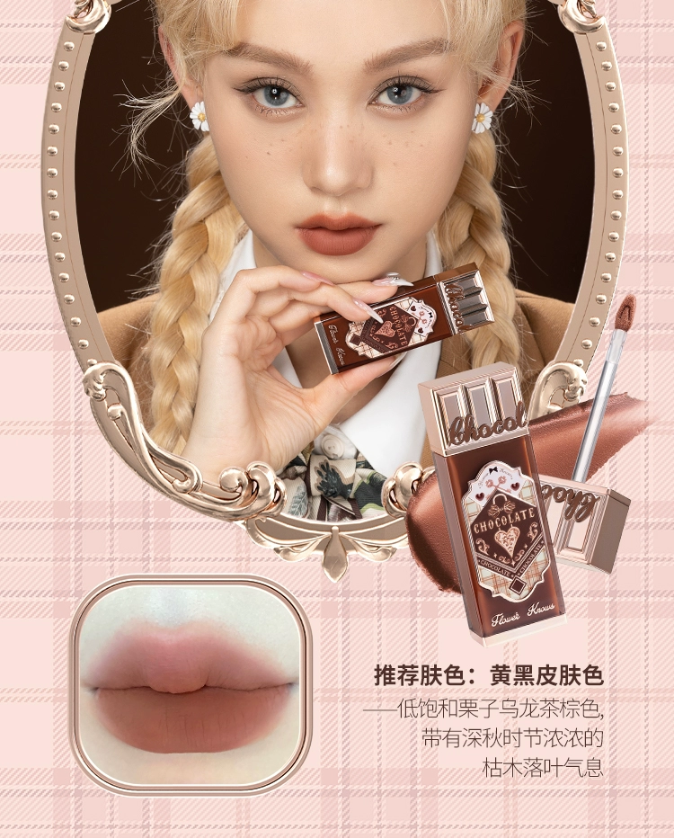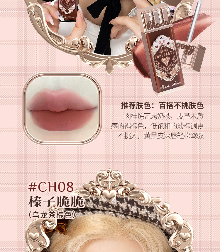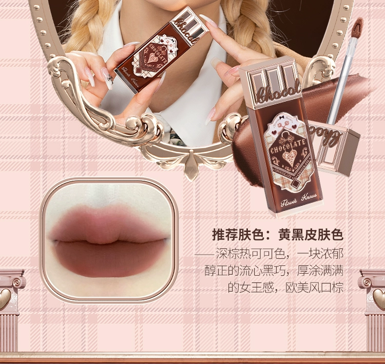 Flower Knows Chocolate Lip Cream Ch02 Matte Lip Mud 05 Red Bean Milk Nude Lipstick Non-Stick Cup