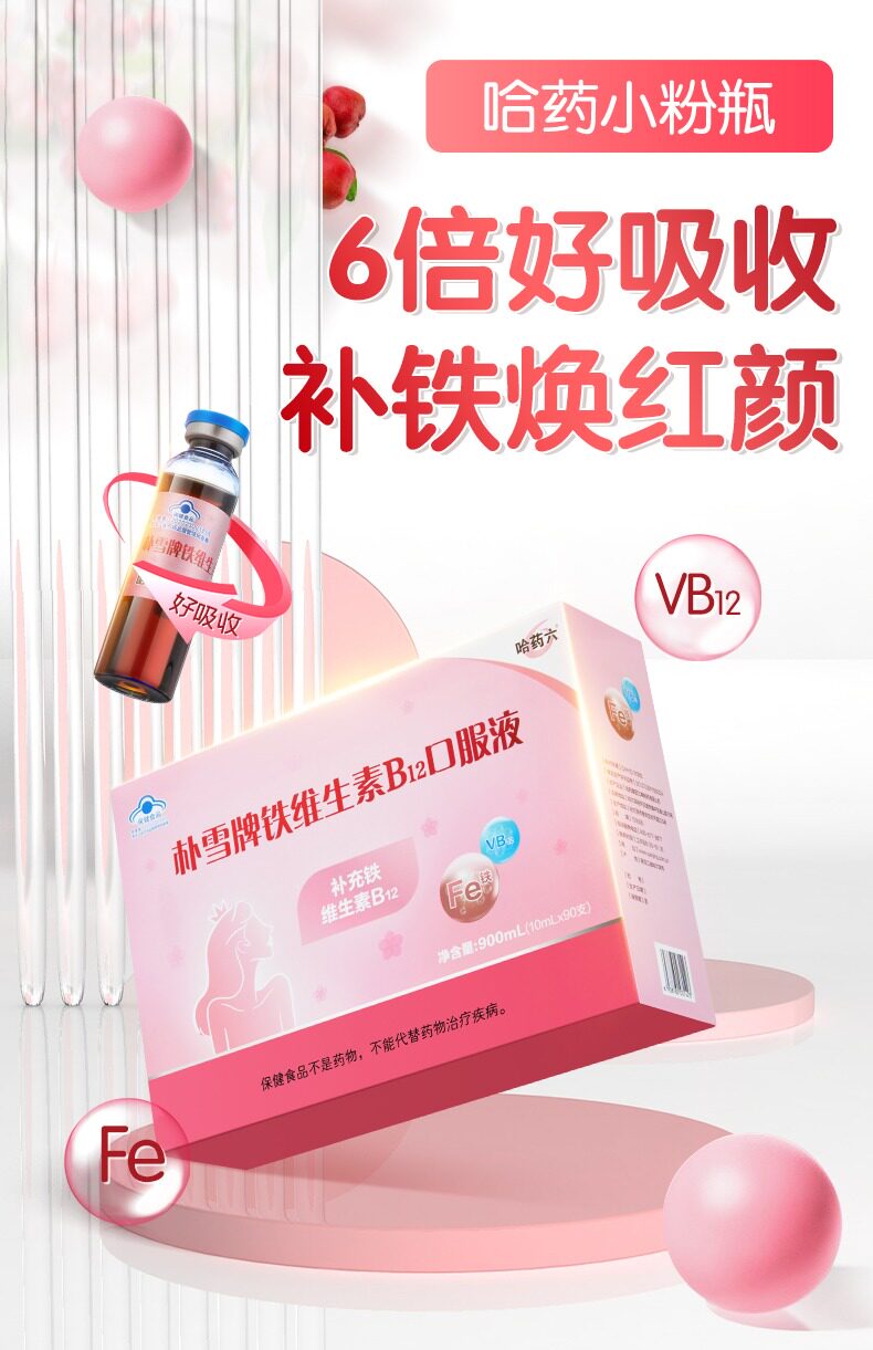 Harbin Pharmaceutical Six Pu Xue Iron Supplement Vitamin B12 Oral Liquid for Women's Blood and Vitality, Iron Supplement Oral Liquid for Pregnant Women