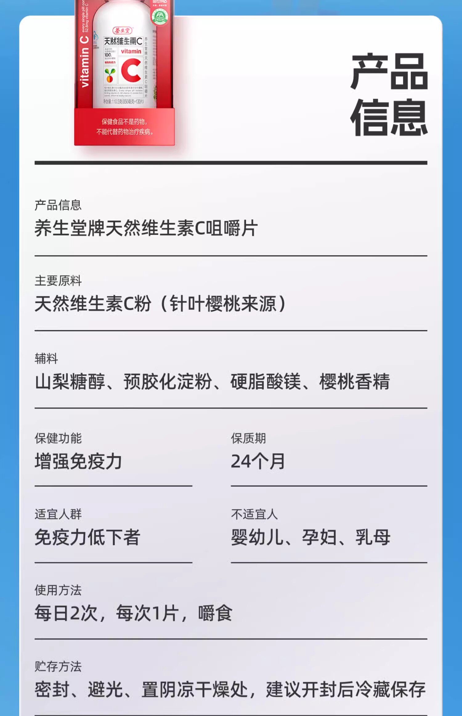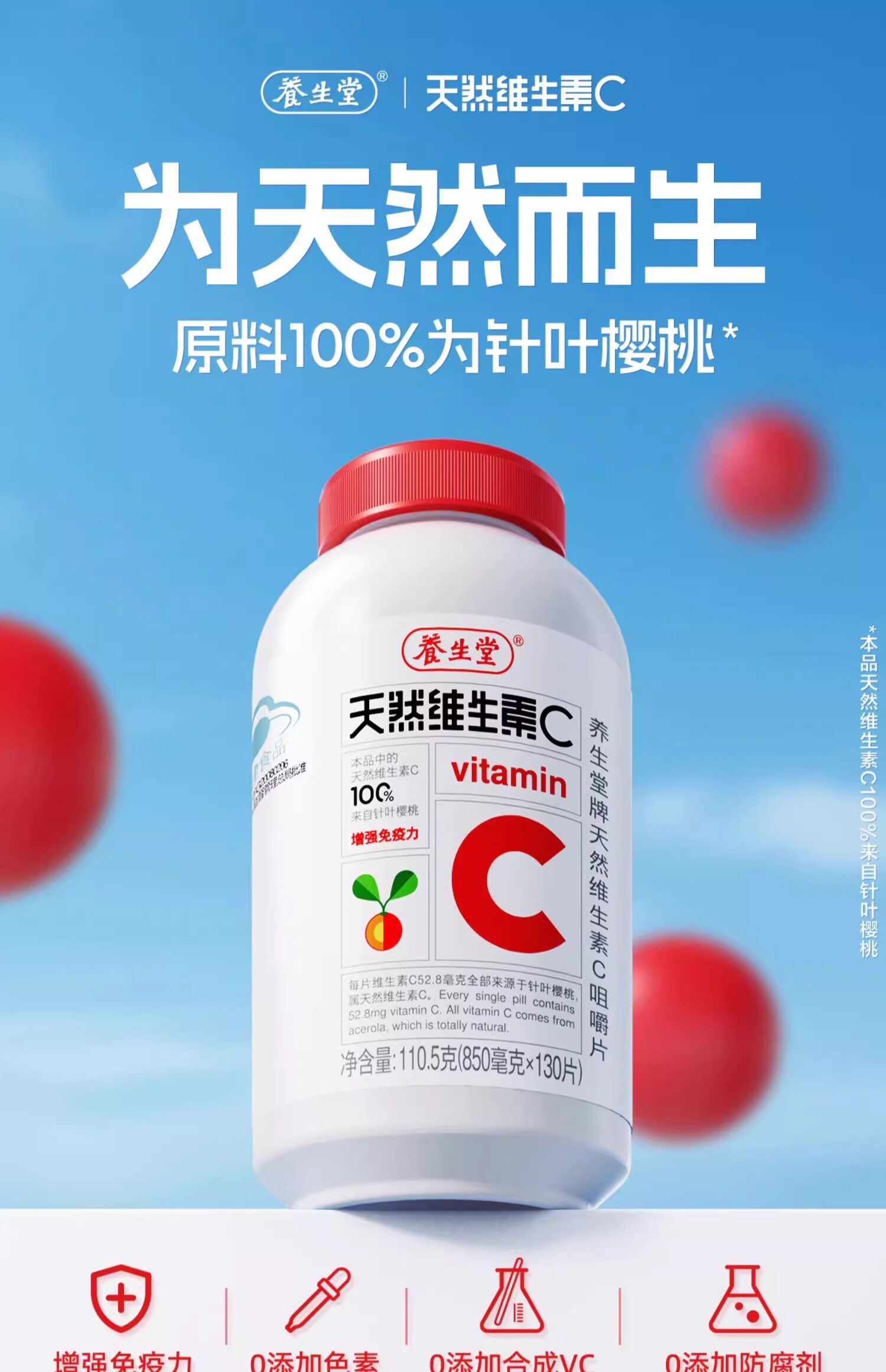 [Special Offer] Yangshengtang Vitamin C Chewable Tablets Genuine Product to Enhance Children's Immunity with Natural Vitamin E