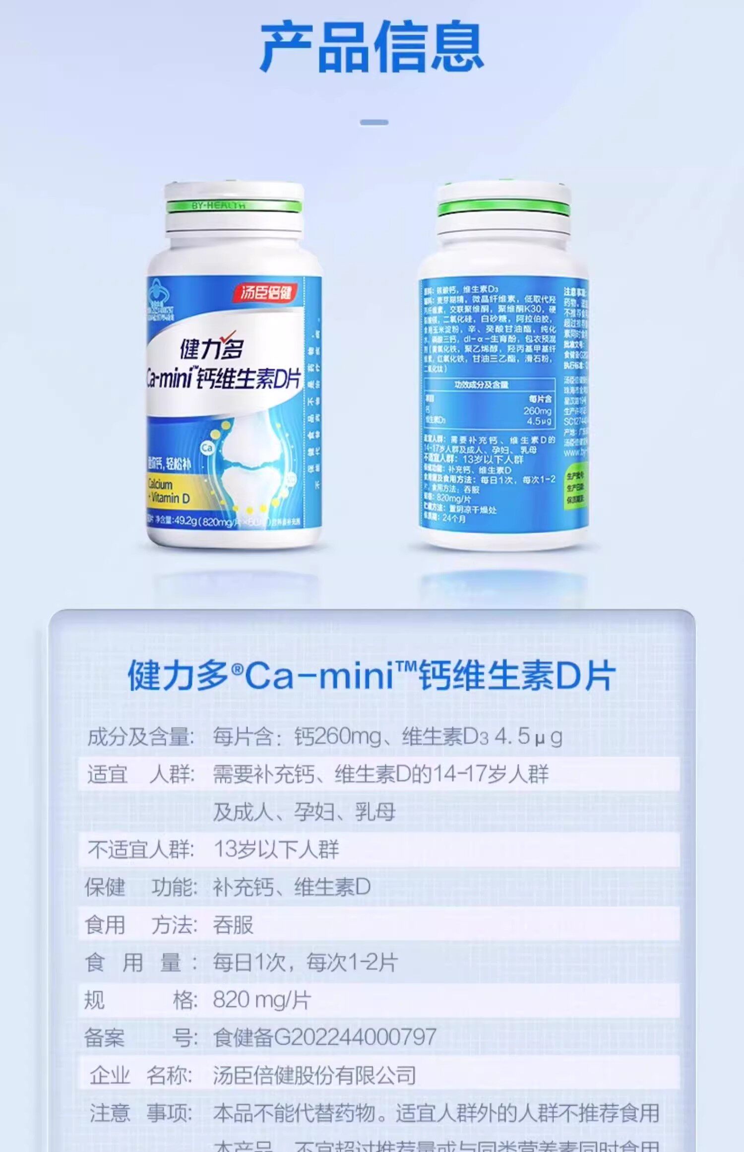 Tomson By-Health Calcium Tablets for Men and Women, Calcium Supplement for Middle-Aged and Elderly, Health Boosting Multivitamin D3 Calcium Tablets, Official Genuine Product