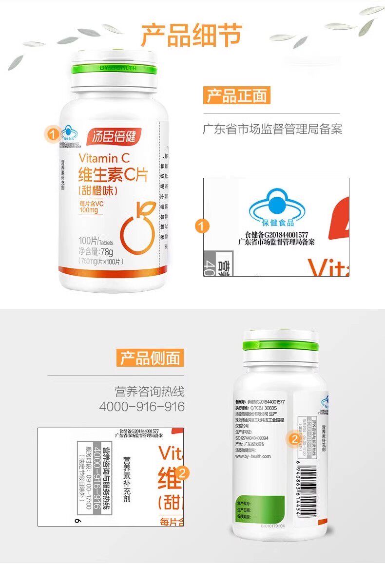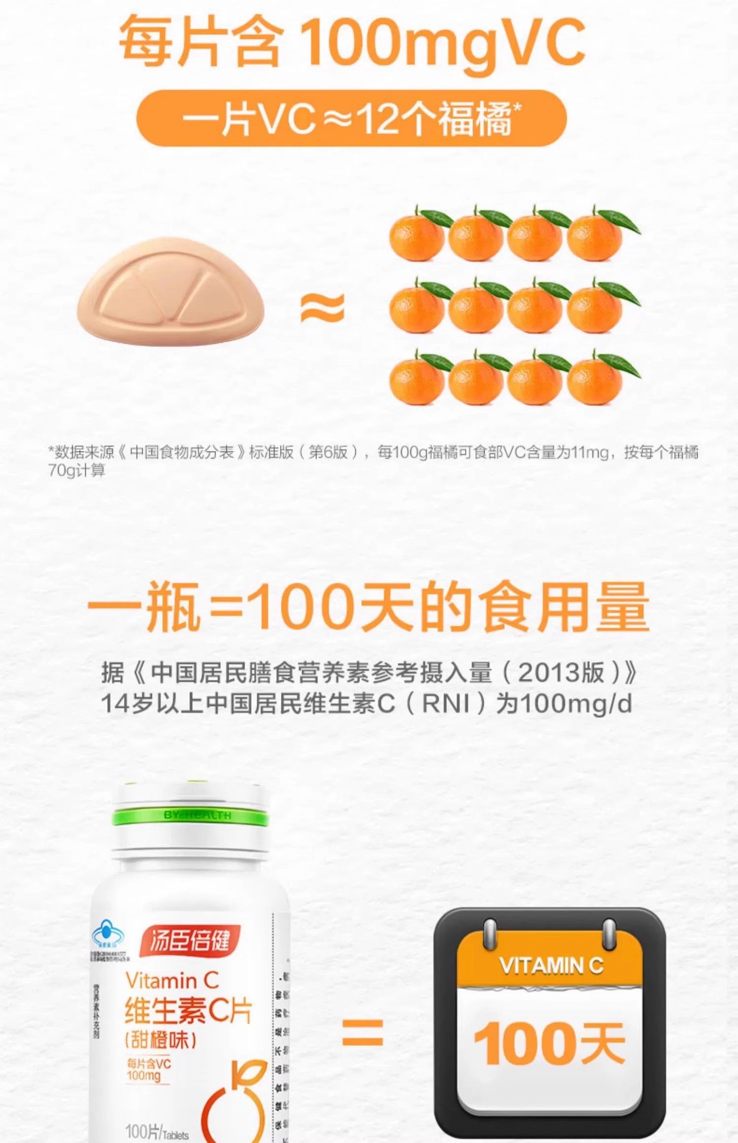 Tomson By-Health Vitamin C Official Genuine Vc Nutritional Orange Flavor Sweet Orange Flavor Vitamin C Chewable Tablets