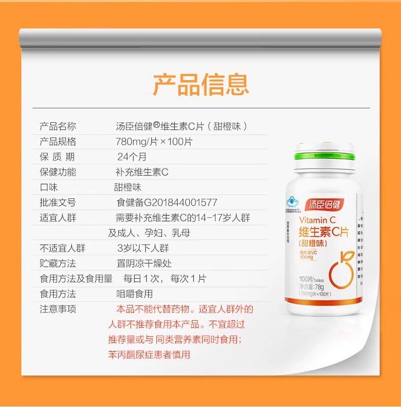 Color Classification [Sweet Orange Flavor] 50 Tablets*1,[Sweet Orange Flavor] 60 Tablets*1 (Expires on 25.11),[Sweet Orange Flavor] 60 Tablets*2 (Expires on 25.11),[Sweet Orange Flavor] 200 Tablets Gift Box,[Sweet Orange Flavor] 30 Tablets*1,[Sweet Orange Flavor] 30 Tablets*3,[Sweet Orange Flavor] 100 Tablets*1,[Sweet Orange Flavor] 100 Pieces*2,[Sweet Orange Flavor] 100 Tablets (Expires in December This Year),Vitamin B+C [100 Tablets in Total],[Orange Flavor] 30 Tablets*1,[Orange Flavor] 120 Tablets*1