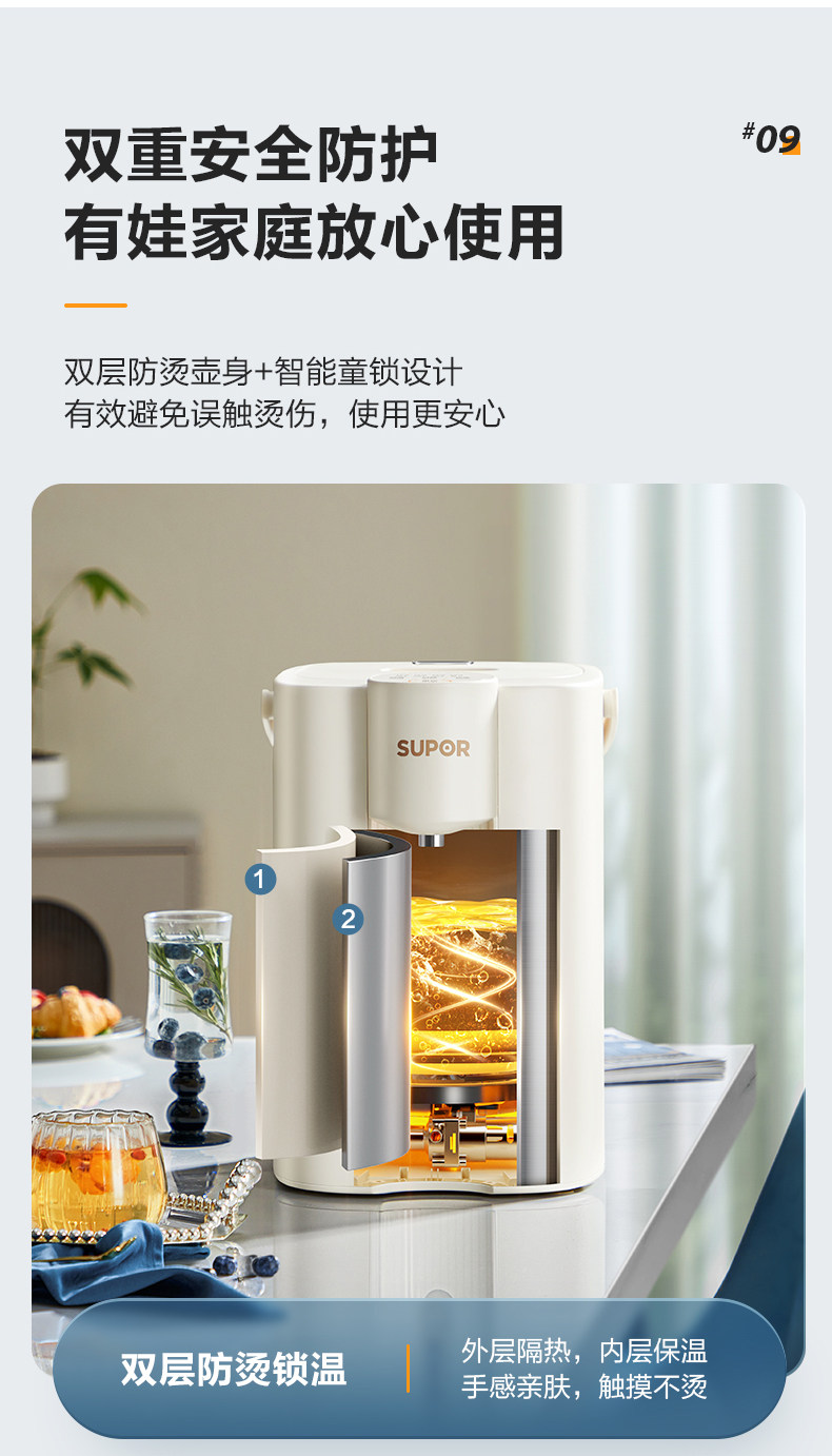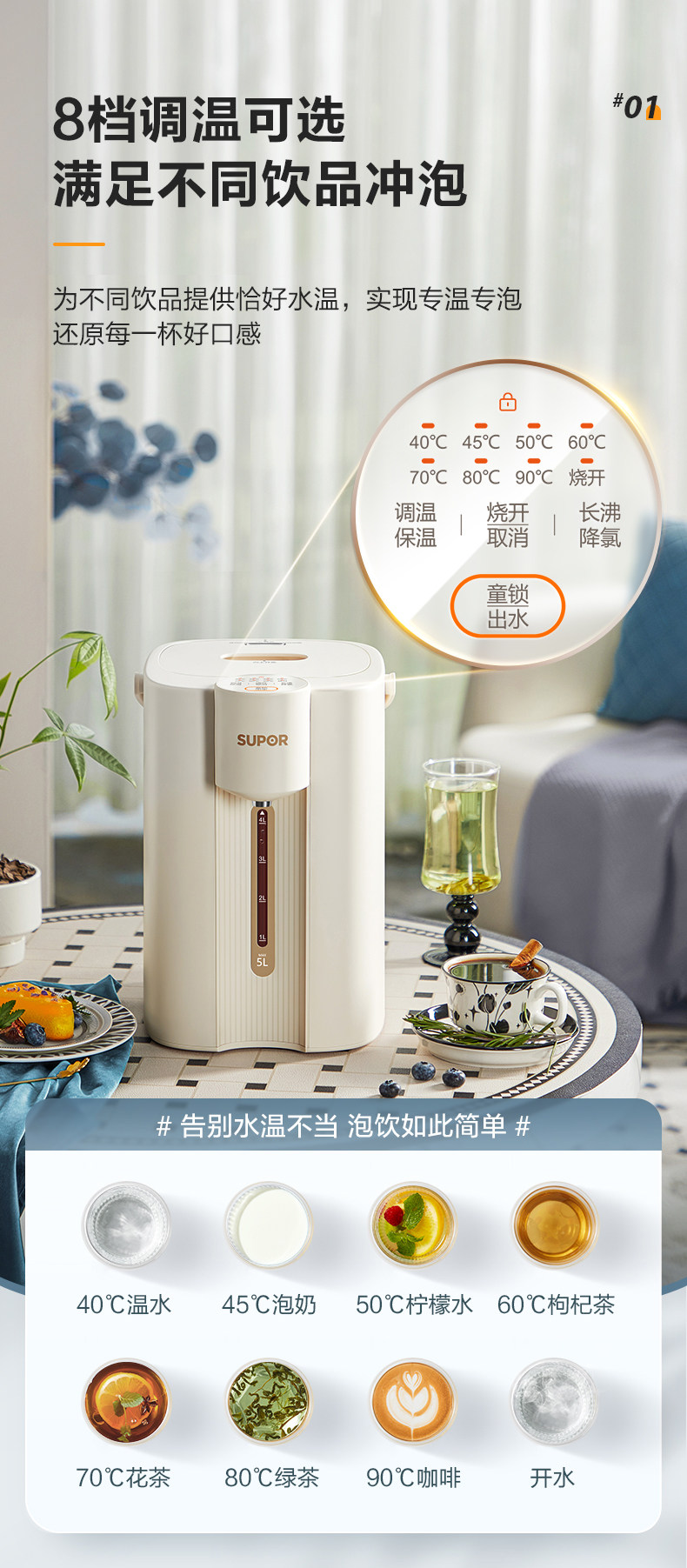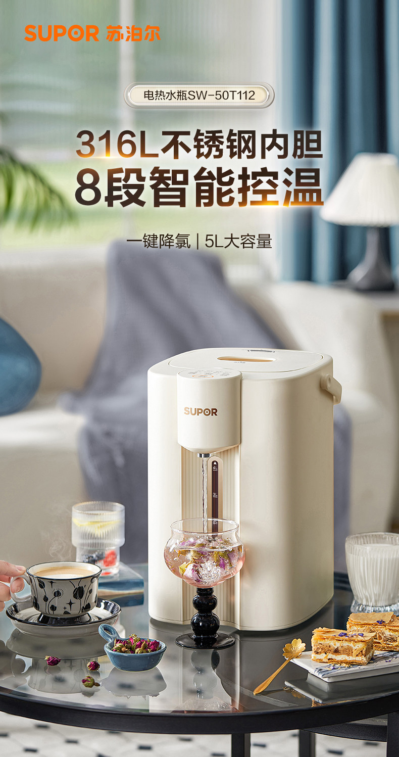 Supor Constant Temperature Electric Kettle for Home Use, Smart Water Boiler with Integrated Insulation, Fully Automatic Electric Thermos, 2024 New Model