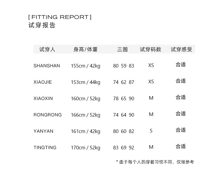 China (cm) 160-165/84-86 165-170 / 88-90 167-172 / 92-96 168-173 / 98-102 170-176 / 106-110