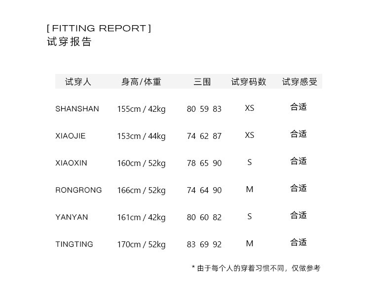 China (cm) 160-165/84-86 165-170 / 88-90 167-172 / 92-96 168-173 / 98-102 170-176 / 106-110