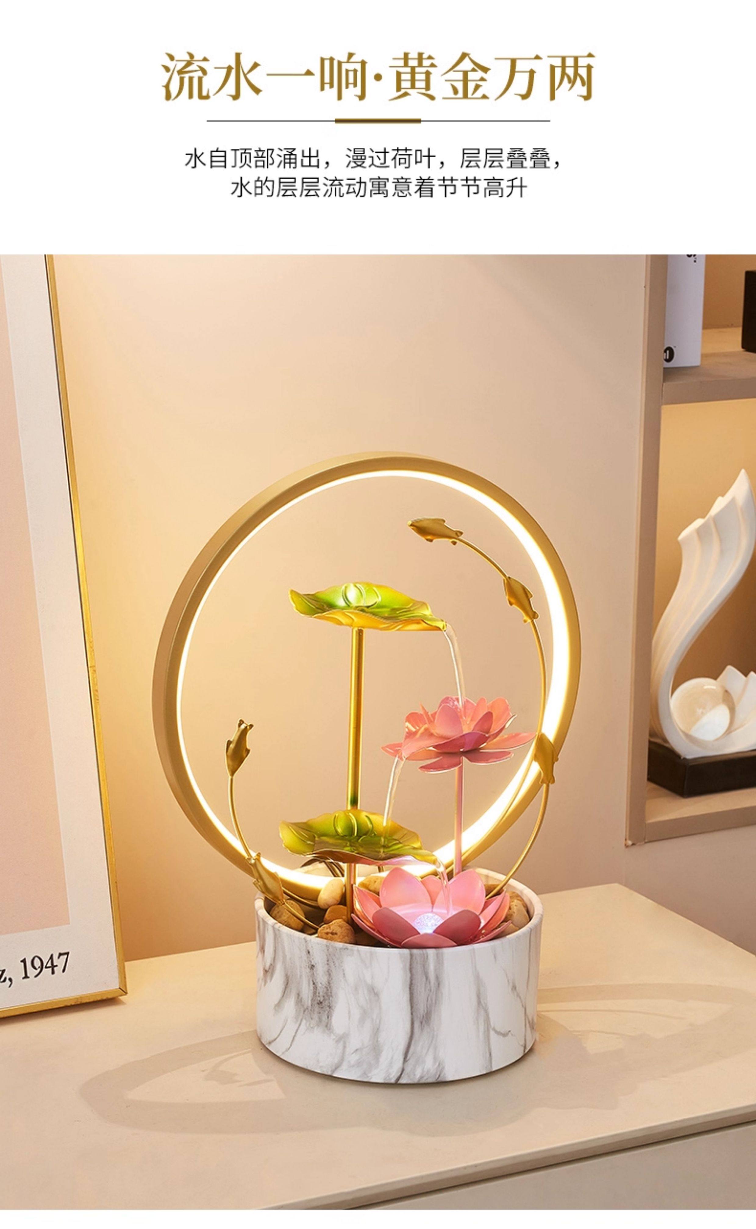 Flowing Water Ornaments, Circulating Water to Attract Wealth, Modern Light Luxury for Living Room Desktop, Moving and Opening Business Gifts, Housewarming Gifts for New Homes