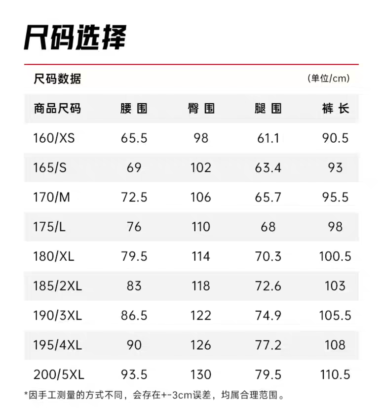 Outseam (cm) 99 cm 101.5 cm 104 cm 106.5 cm 109 cm