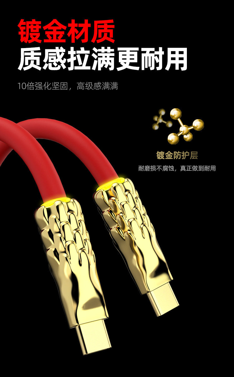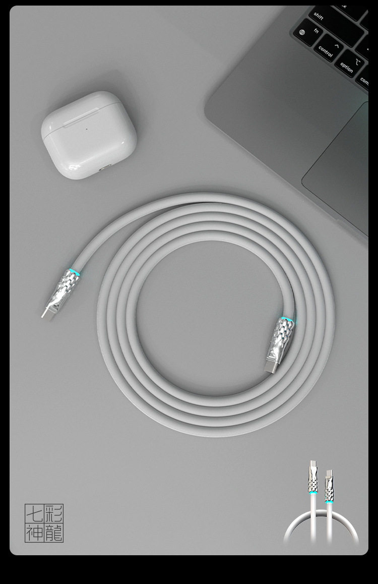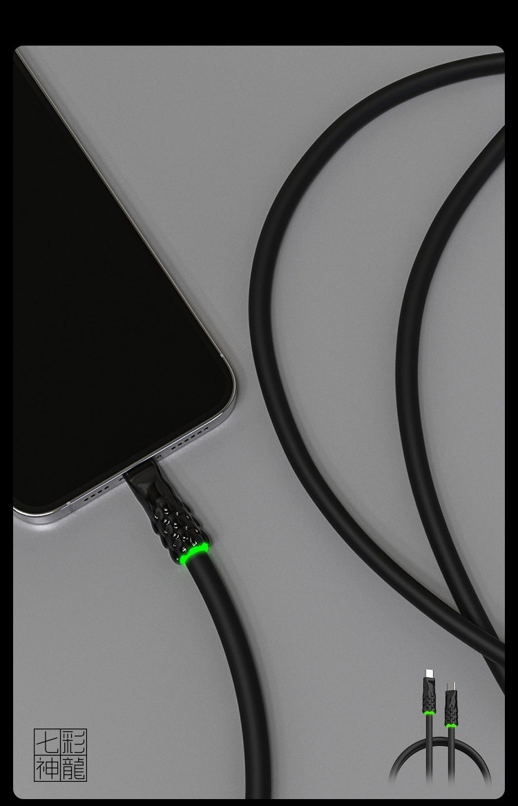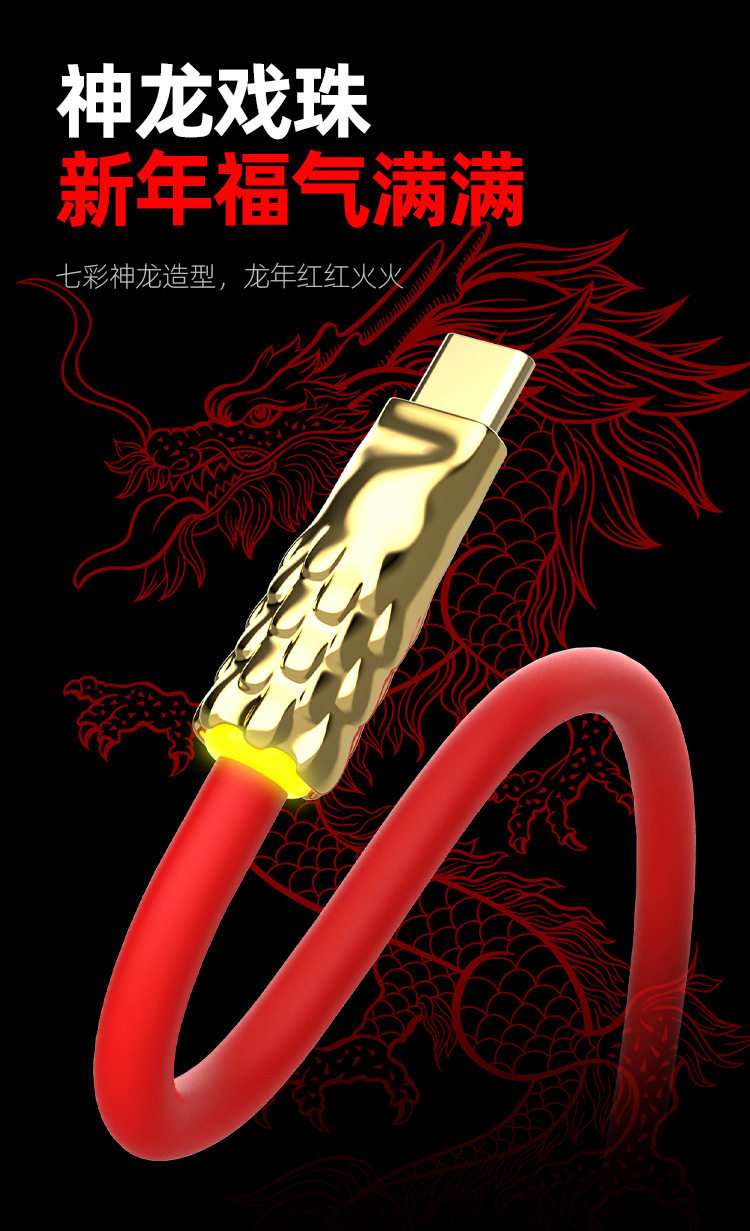 Seven-Colored Dragon 240W Fast Charging Liquid Soft Silicone Breathing Light Luminous Cable Android Data Cable Type-C/Lightning Apple 30W Gold-Plated Texture Year of the Dragon Edition 1.5m Dragon Luminous Cable