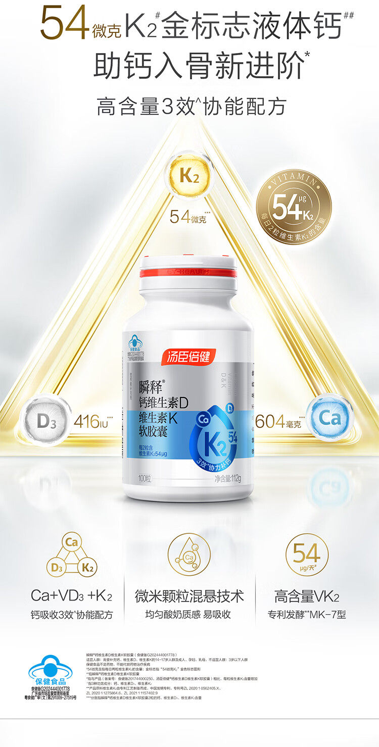 Tomson By-Health Gold Label Liquid Calcium Tablets Instant Release Calcium Calcium Vitamin D3K2 Soft Capsules Genuine Middle-aged and Elderly Official