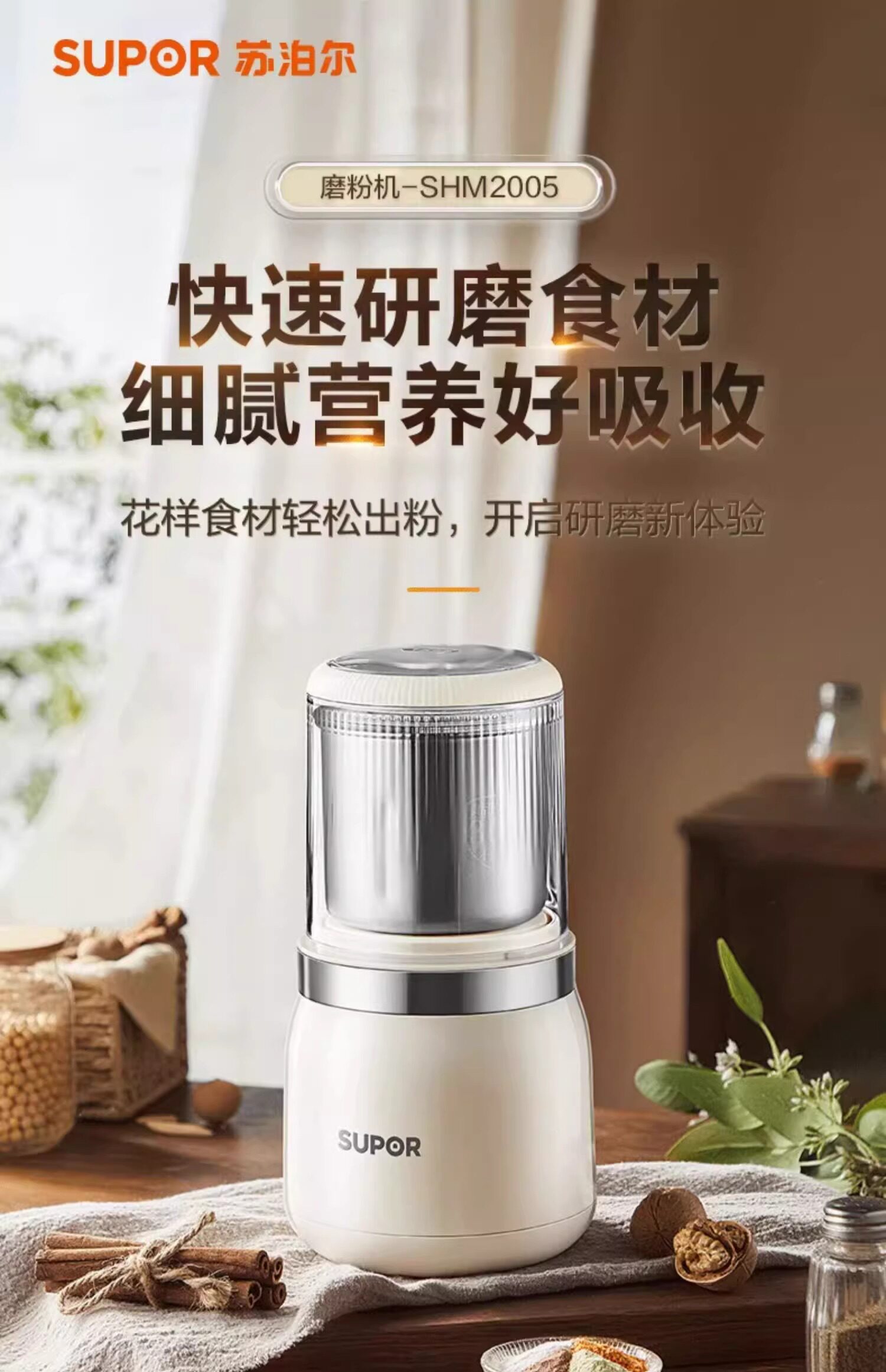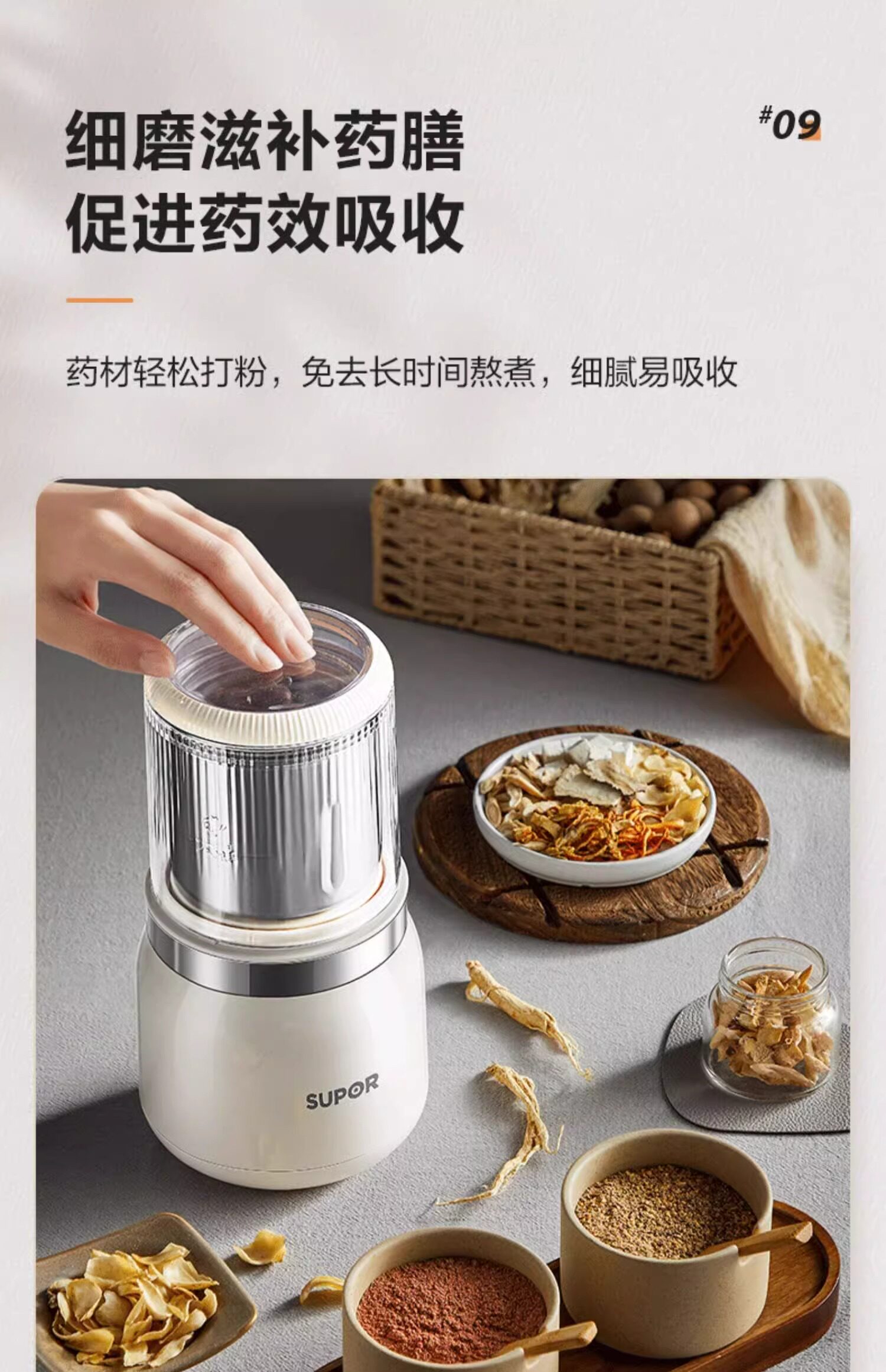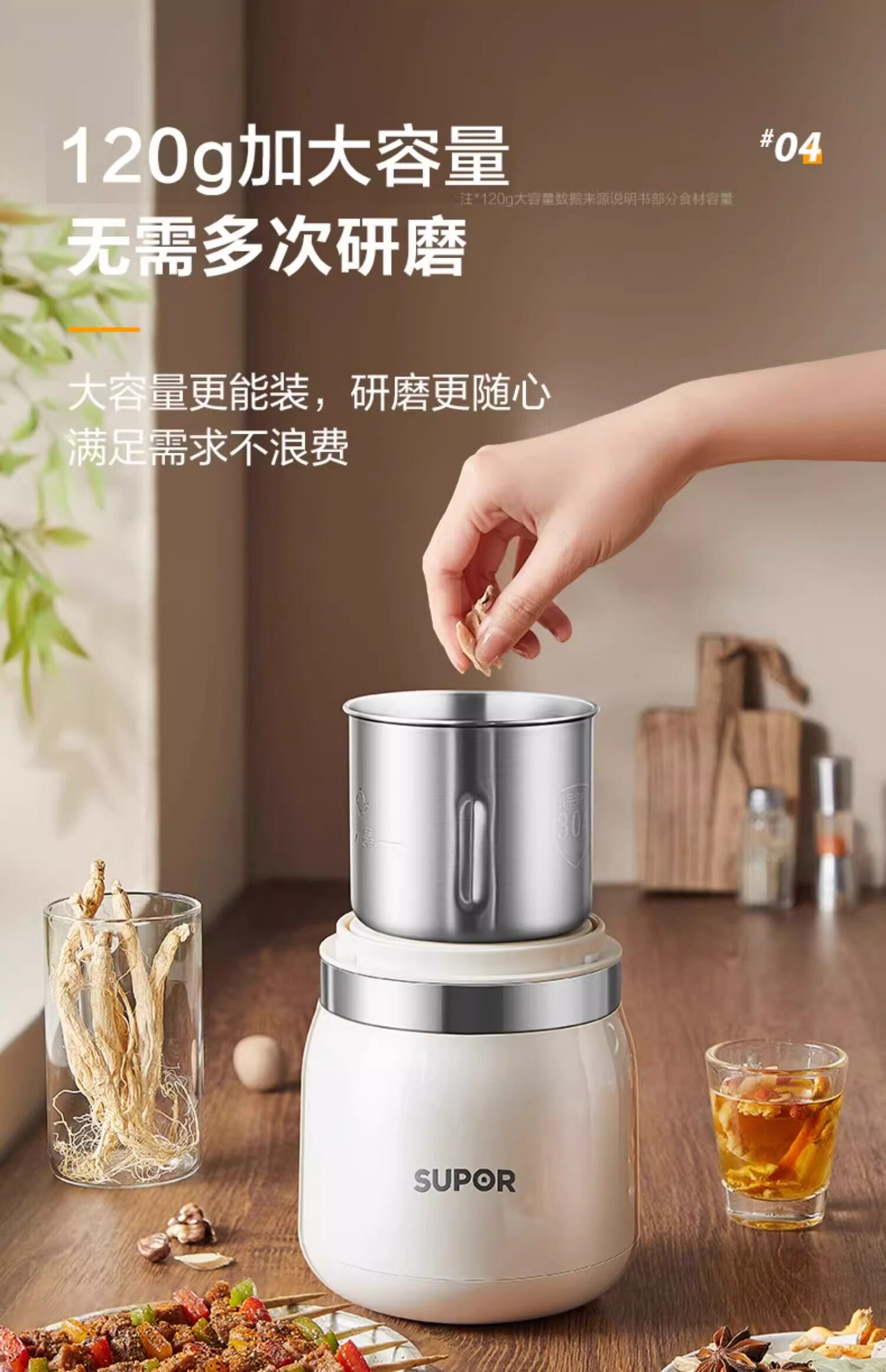 Supor Grinder Mill Machine for Home Use, Ultra-Fine Grinding Cup, Multifunctional Small Electric Dry Grinder for Grains