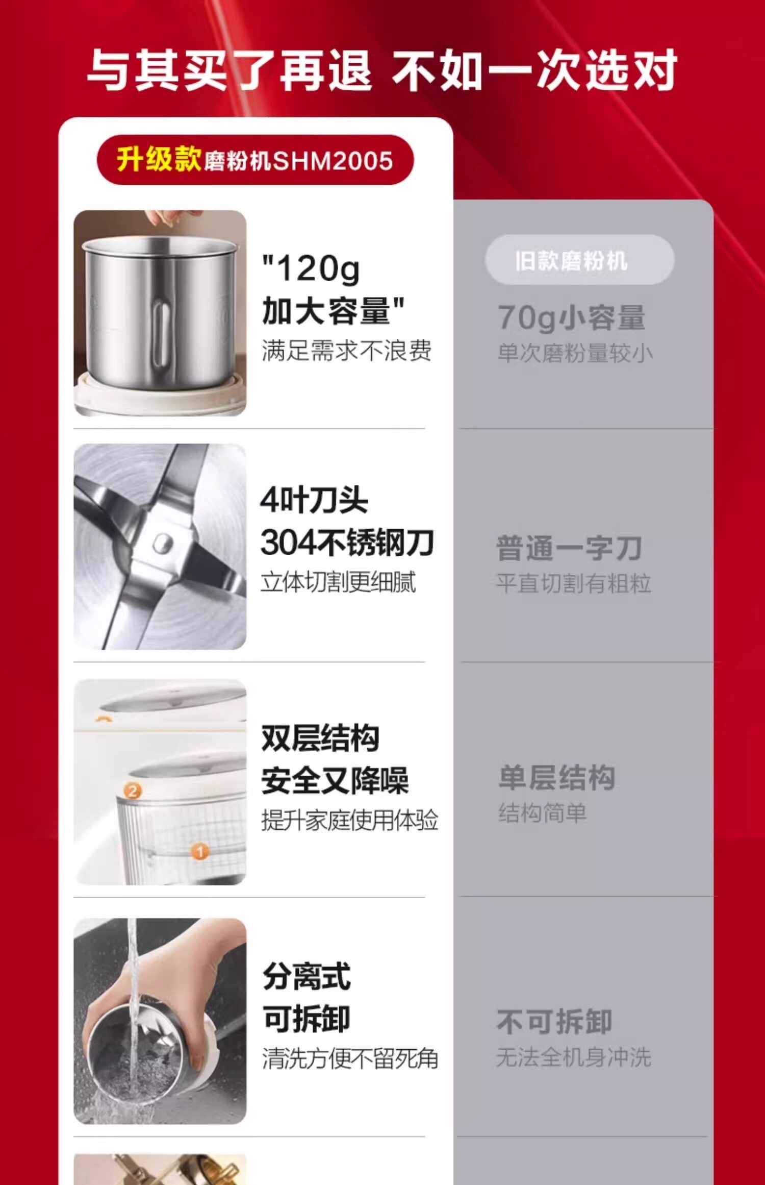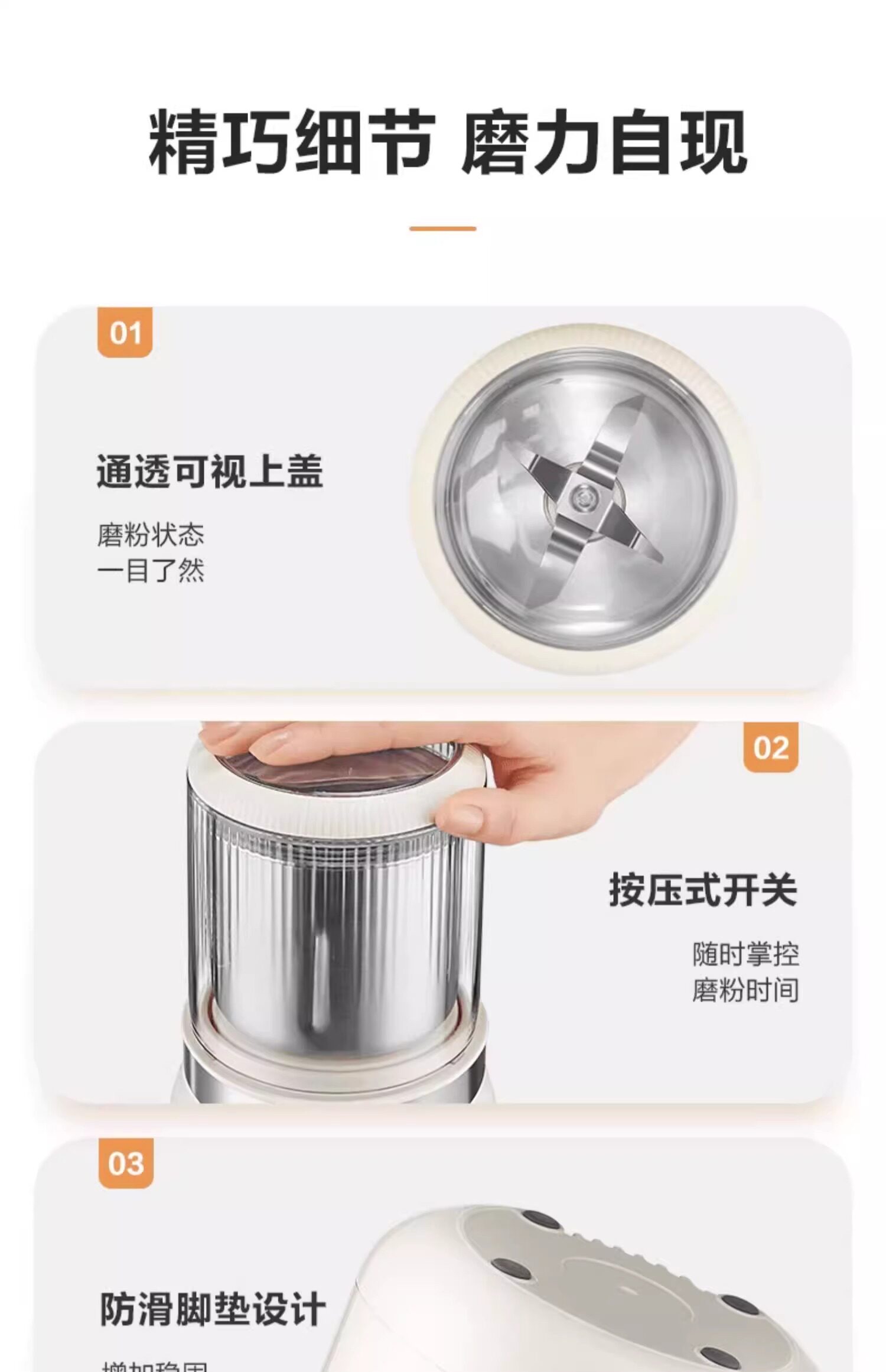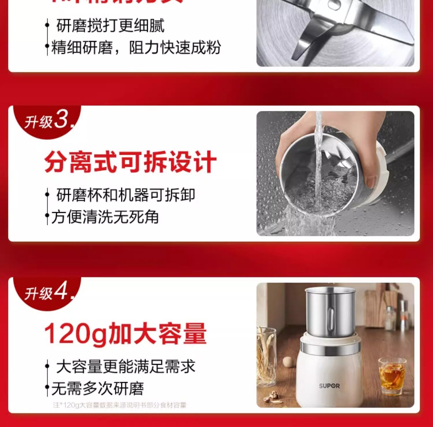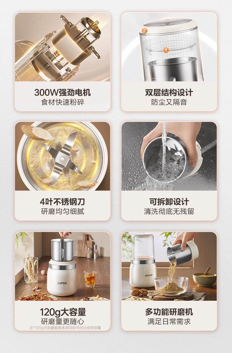 Supor Grinder Mill Machine for Home Use, Ultra-Fine Grinding Cup, Multifunctional Small Electric Dry Grinder for Grains