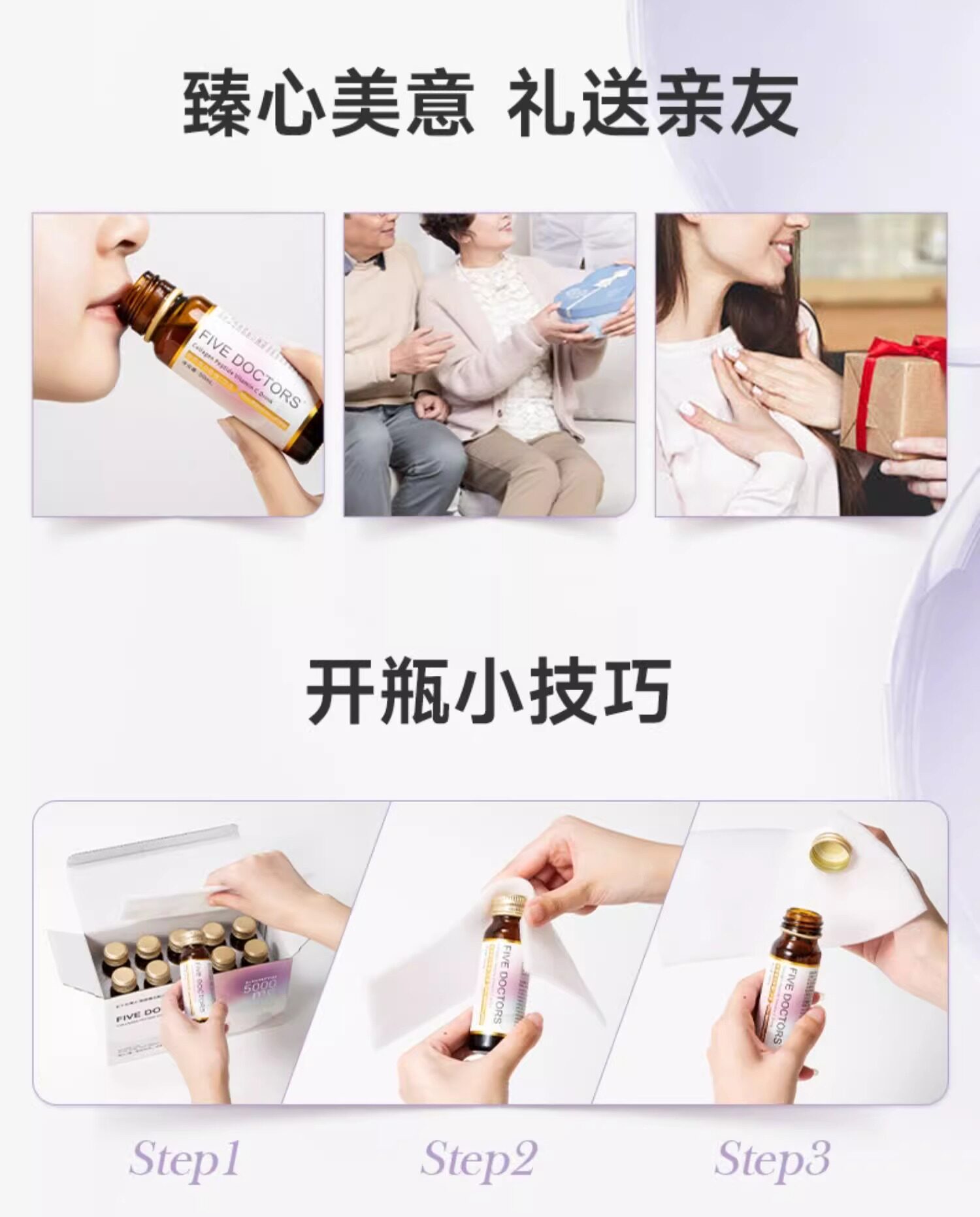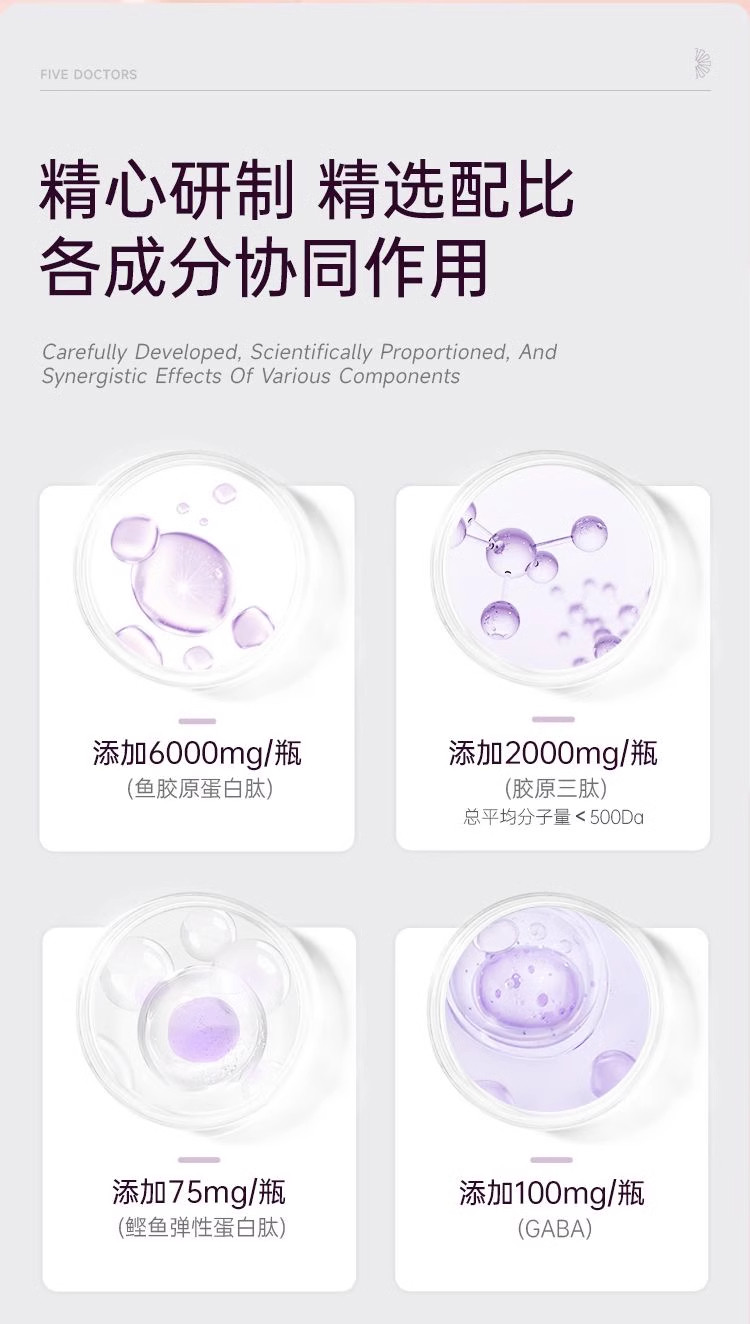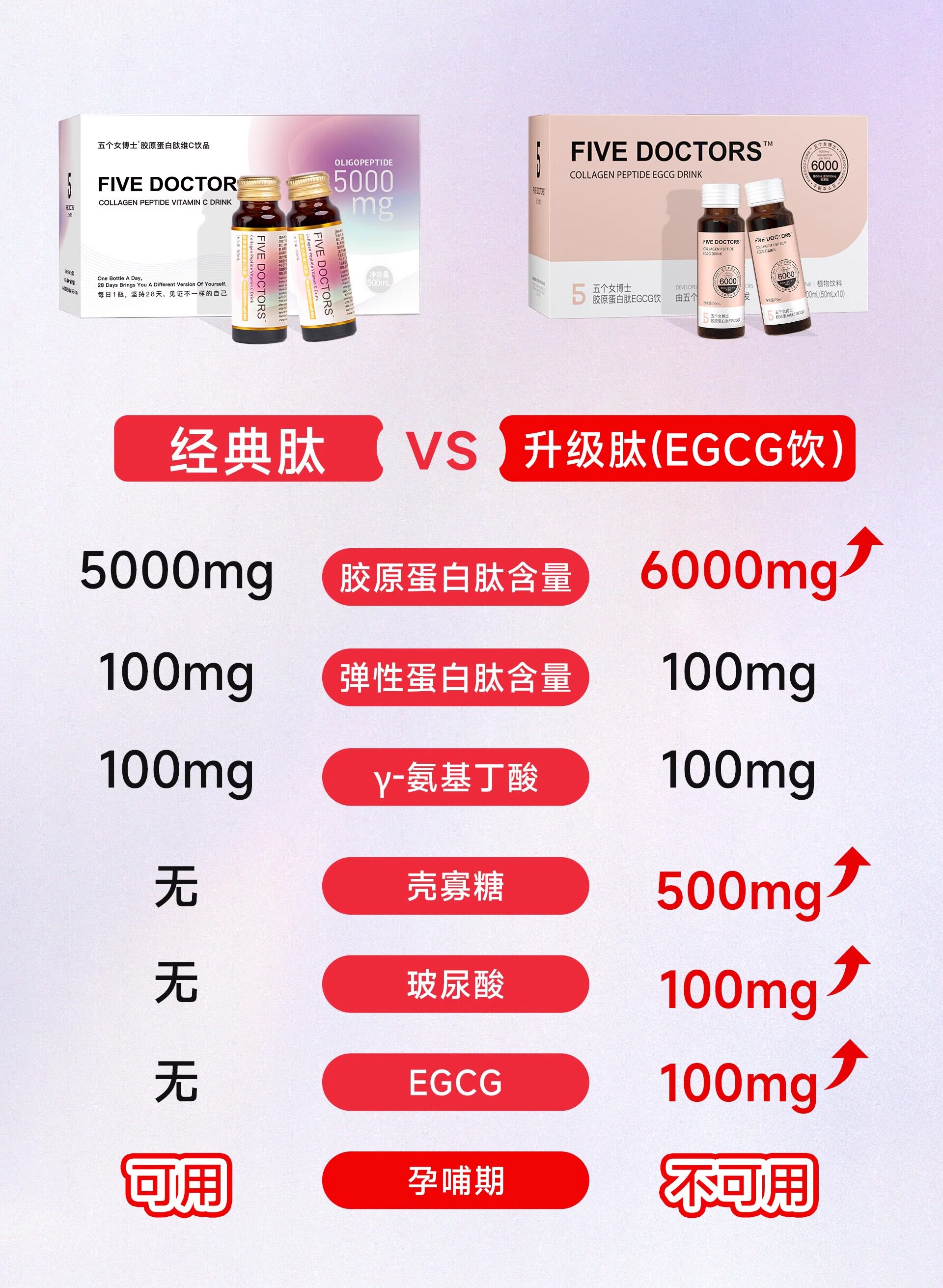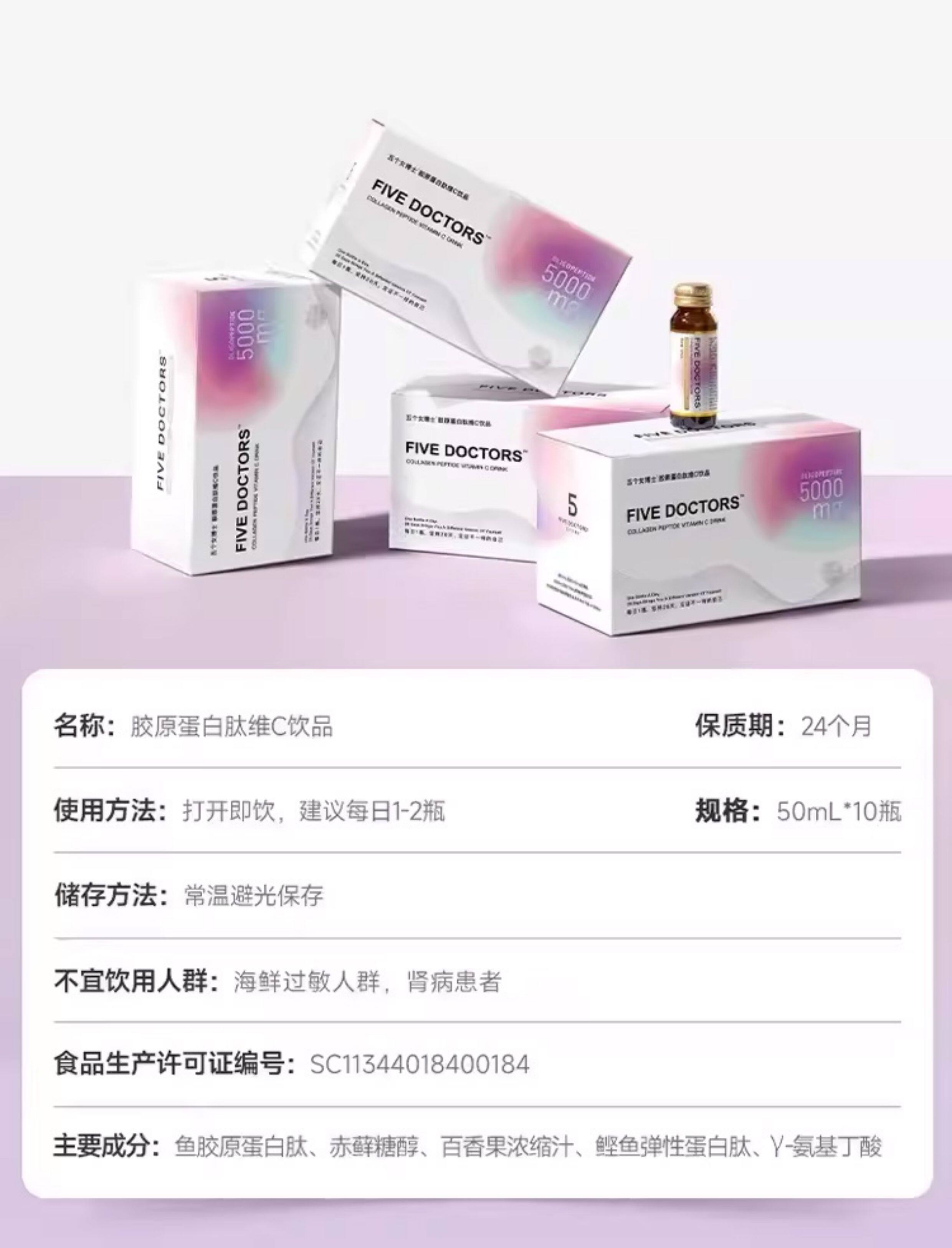 Five Female Doctors' Collagen Peptide Genuine Upgraded Version Egcg Liquid Drink with Hyaluronic Acid and Vitamin C