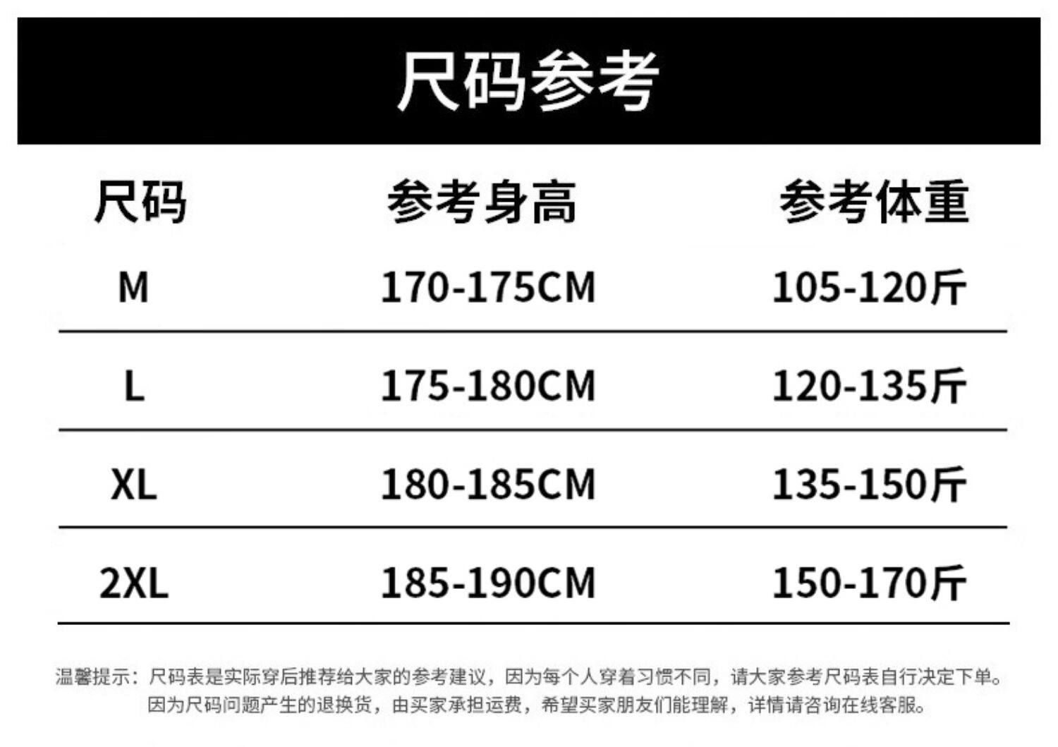 China (cm) 165 / 88-90 170 / 96-98 175 / 108-110 180 / 118-122 185 / 126-130