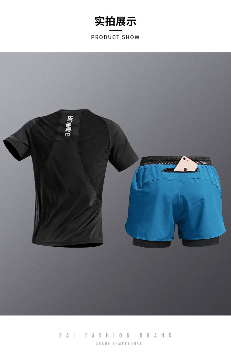 Marathon Running Sports Suit Men's Ice Silk Quick-Drying T-Shirt Summer Sports Track and Field Cycling Training Fitness Clothes