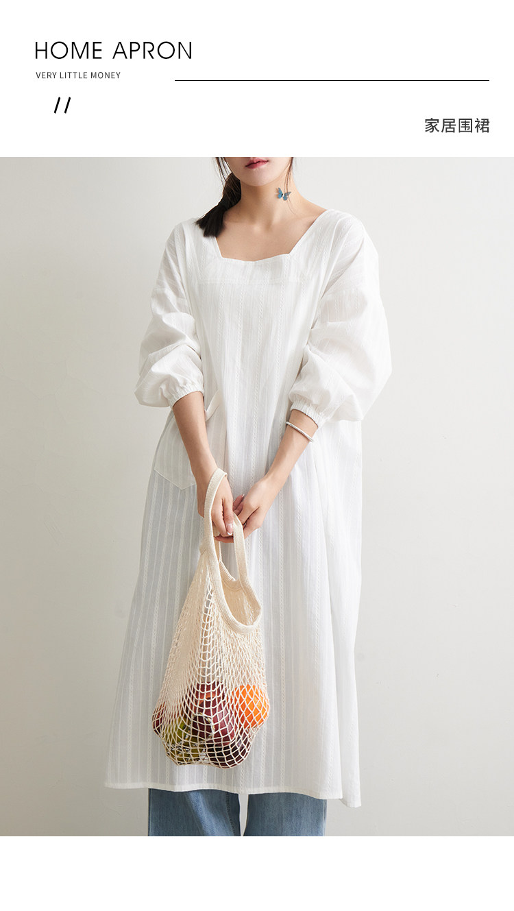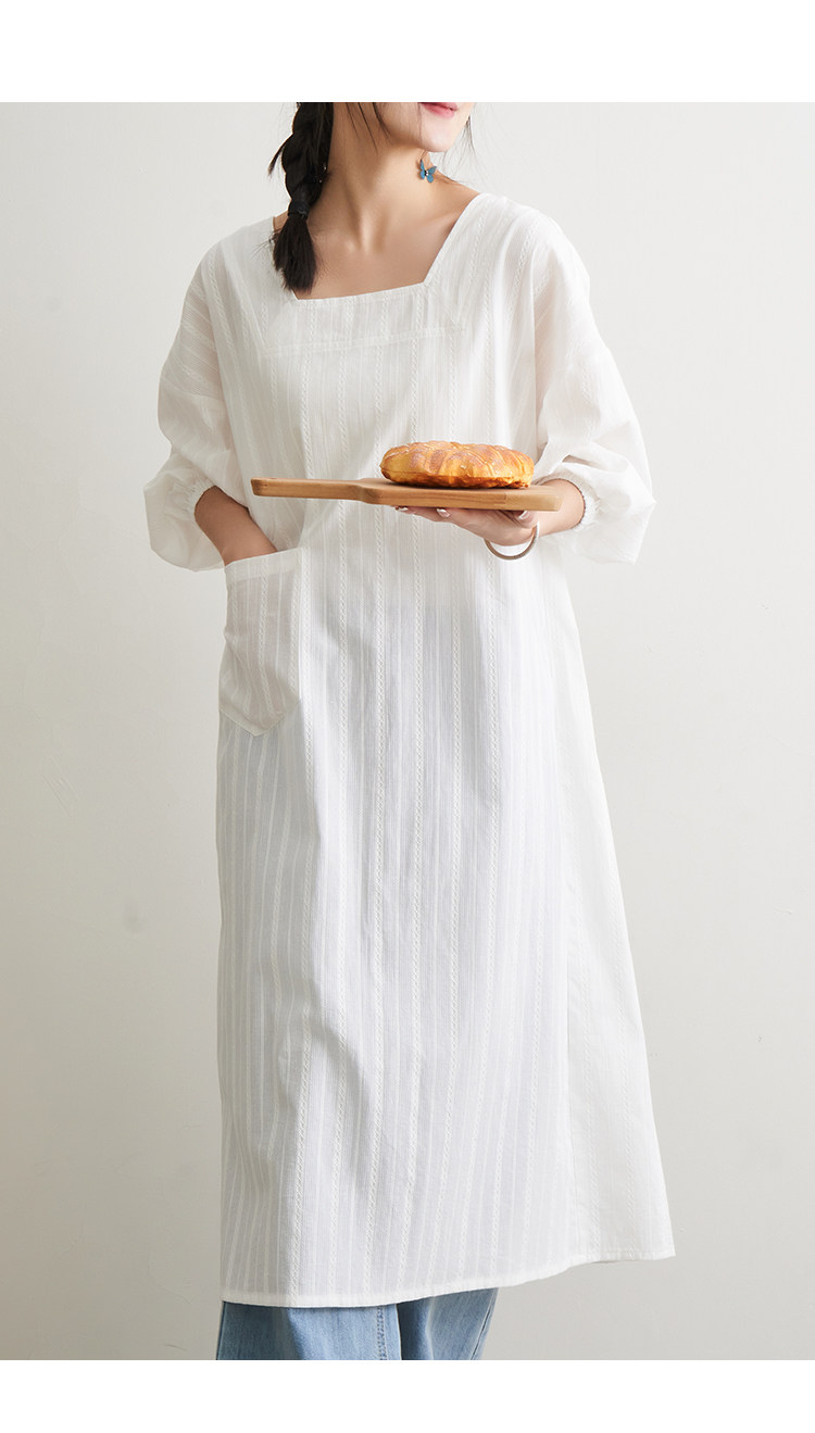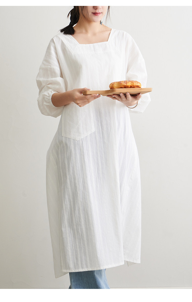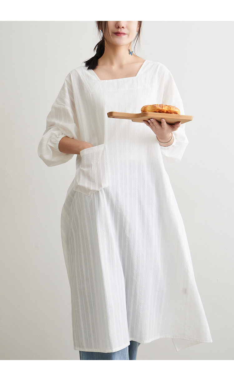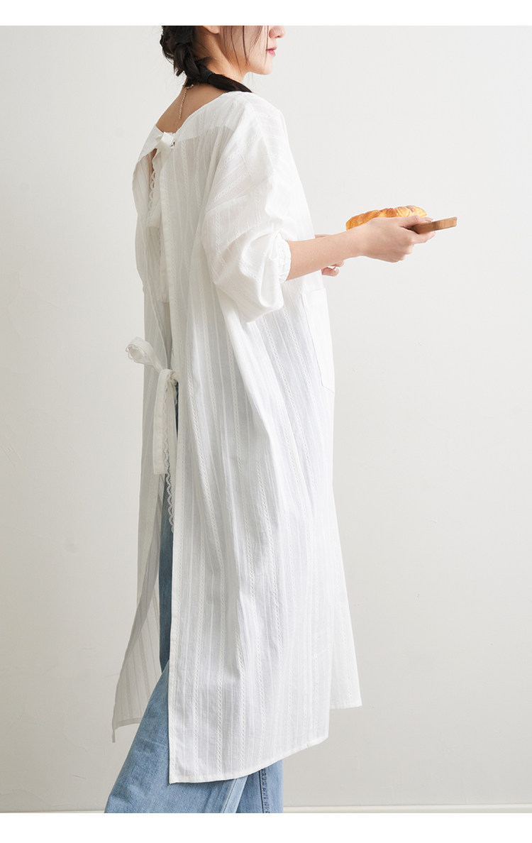 Japanese-Style Pastoral White Long-Sleeved Smock for Baking, Nail Art, Painting, Art, Flower Shop, Catering, Kitchen Work Apron