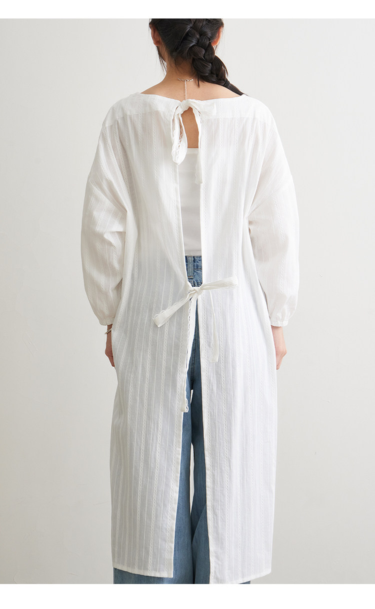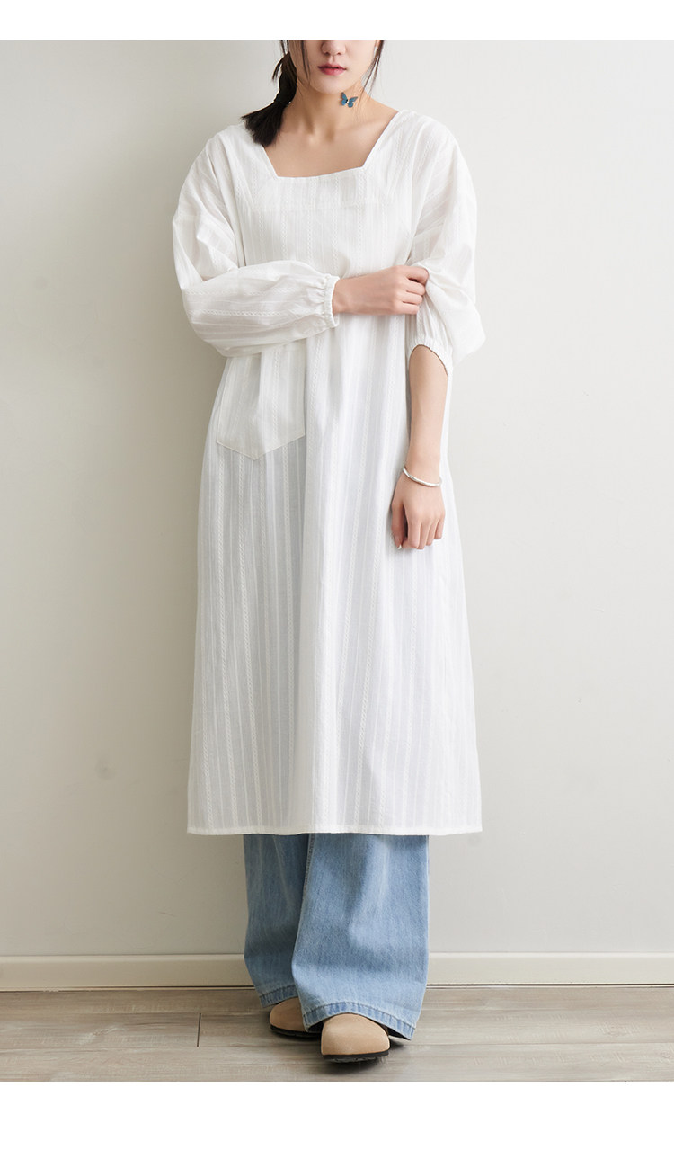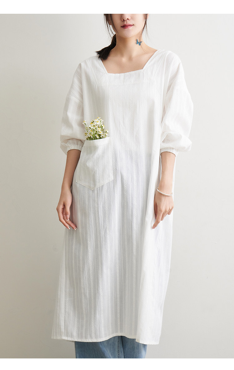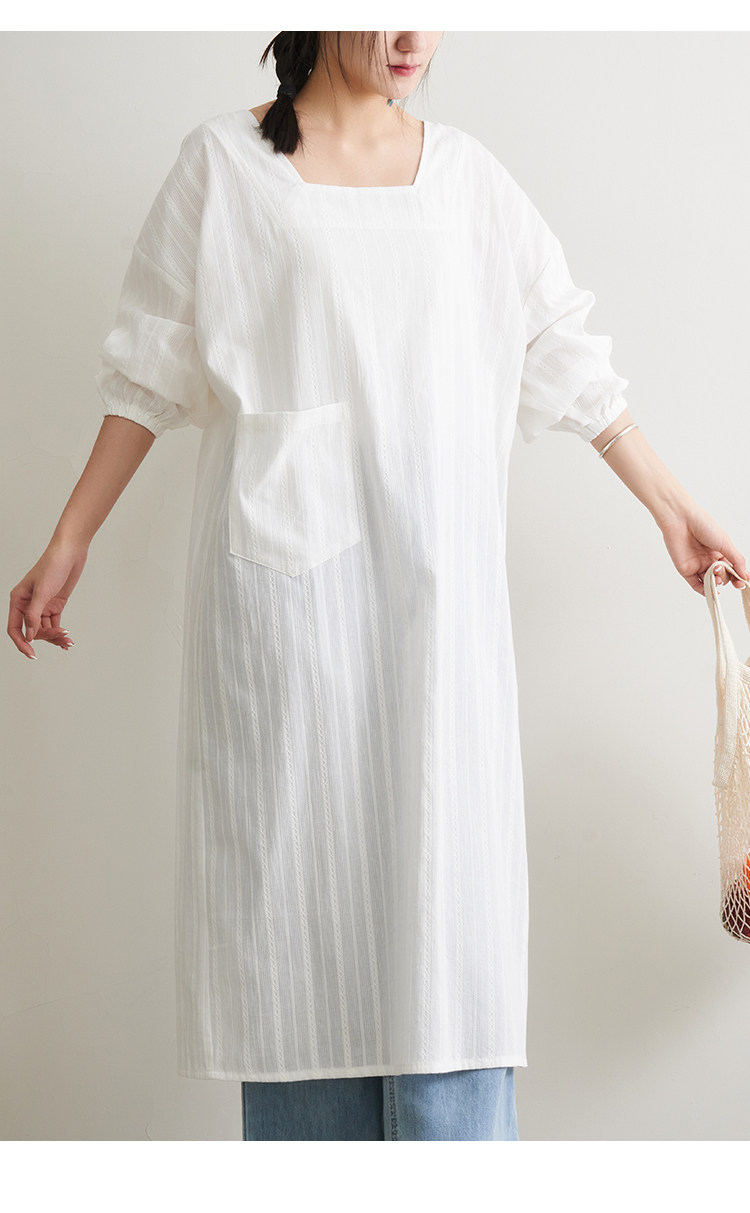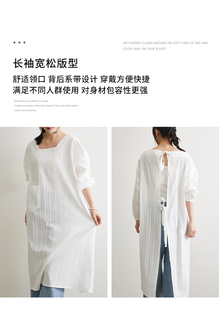 Japanese-Style Pastoral White Long-Sleeved Smock for Baking, Nail Art, Painting, Art, Flower Shop, Catering, Kitchen Work Apron