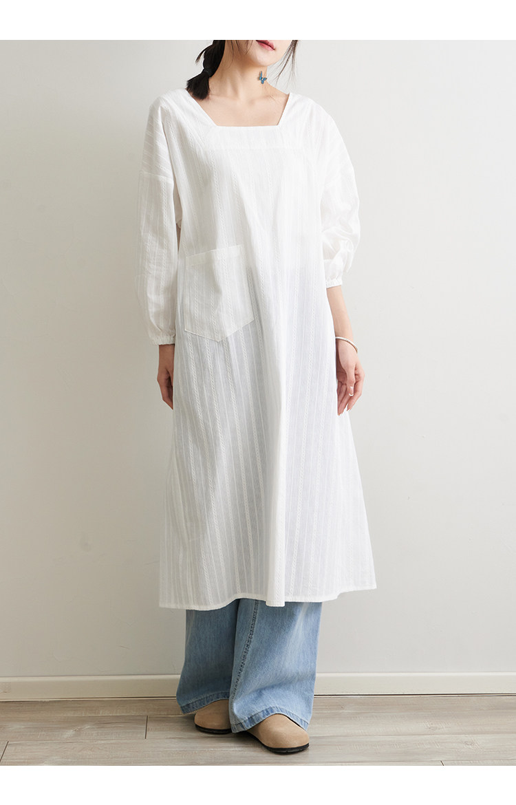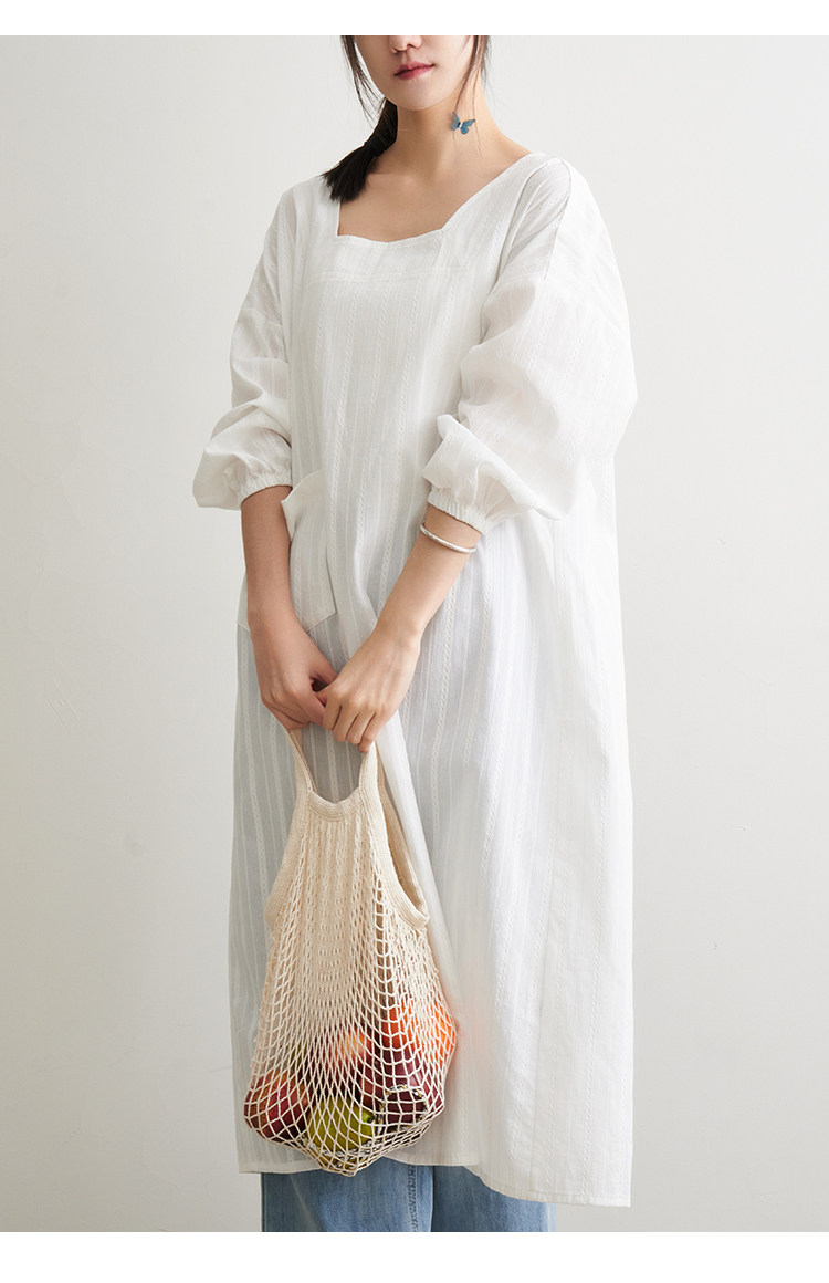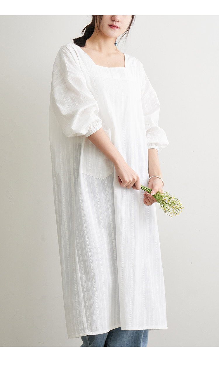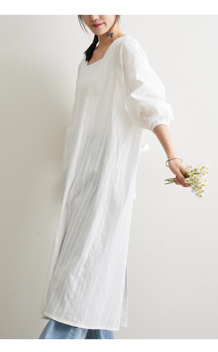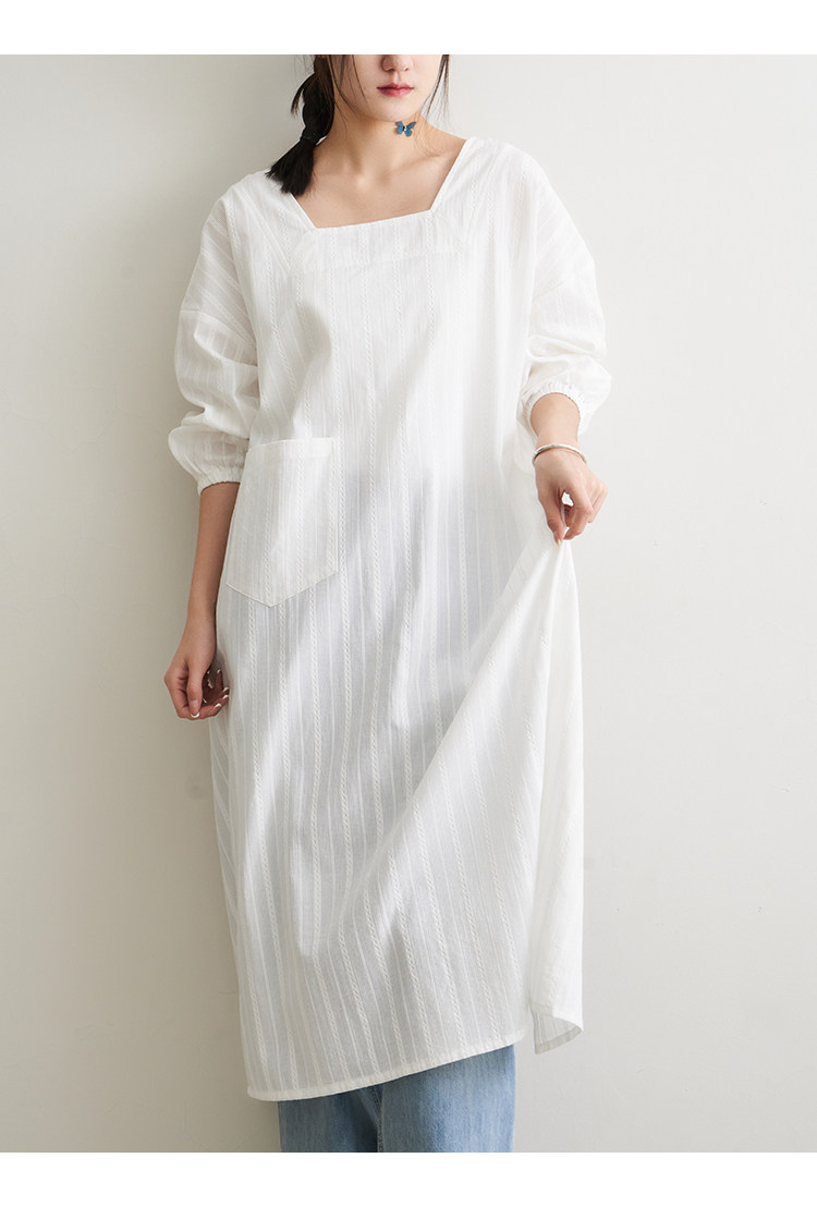 Japanese-Style Pastoral White Long-Sleeved Smock for Baking, Nail Art, Painting, Art, Flower Shop, Catering, Kitchen Work Apron