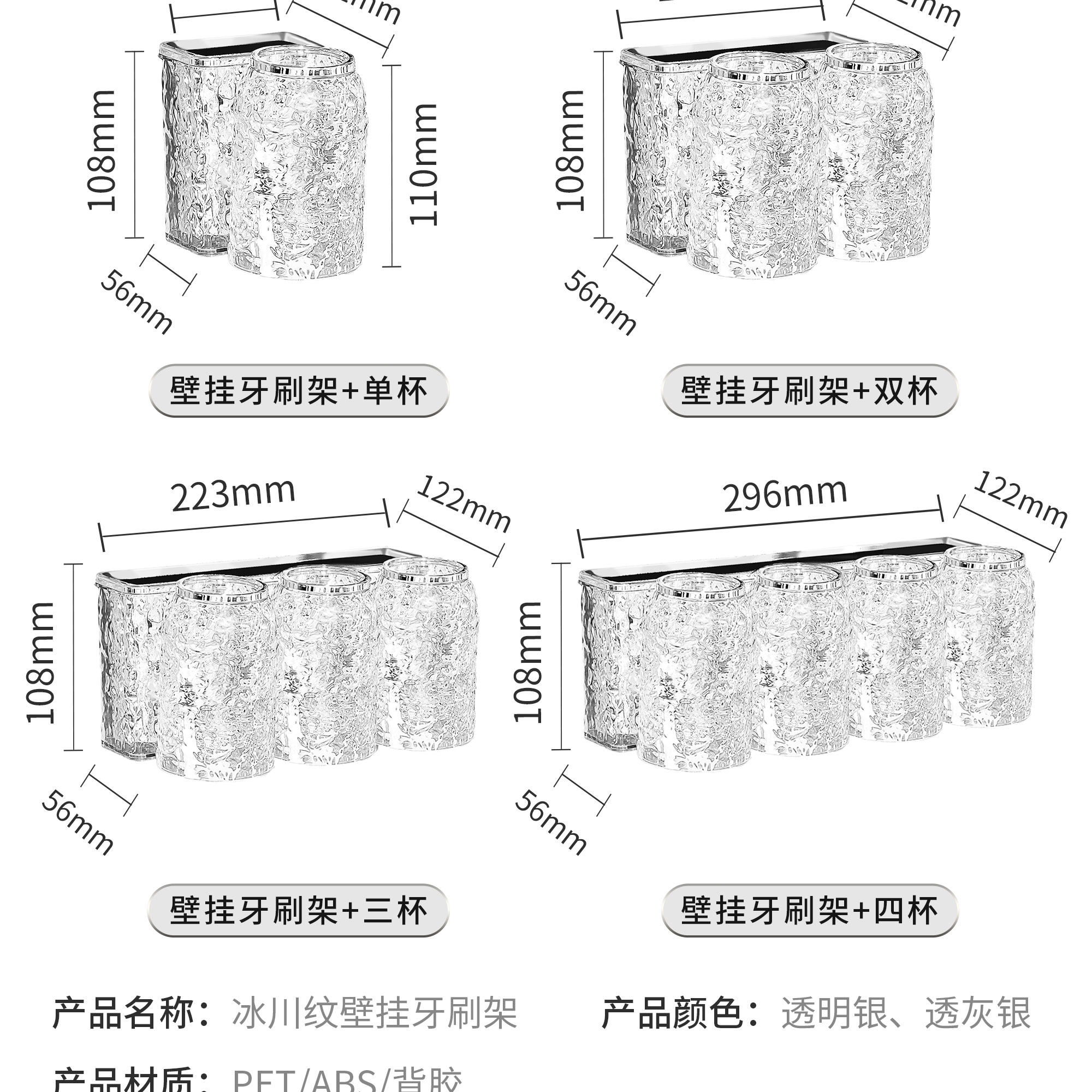 Sort by color Hot selling recommendation: Mixed color double cups, transparent silver + transparent gray silver, wall-mounted toothbrush holder,The store manager recommends mixed-color double cups, transparent silver + transparent gray silver, wall-mounted toothbrush holder + toothpaste squeezer + rabbit,Recommended for couples, mixed color double cups, transparent silver + transparent pink, wall-mounted toothbrush holder,Mixed color double cups, transparent silver + transparent powder, wall-mounted toothbrush holder + toothpaste squeezer + rabbit,A family of three, three cups of mixed colors, transparent silver + transparent pink + transparent silver gray wall-mounted toothbrush holder,Three cups of mixed colors, transparent silver + transparent powder + transparent silver gray, wall-mounted toothbrush holder + toothpaste squeezer + rabbit,Family of four, mixed color four cups, transparent silver + transparent pink + transparent silver gray + amber wall-mounted toothbrush holder,Family of four, four cups of mixed colors, transparent silver + transparent pink + transparent silver gray + amber, wall-mounted toothbrush holder + toothpaste squeezer + rabbit,Transparent Silver Combination Set A Hair Dryer Storage Rack + Toothbrush Cup Holder,Translucent Gray Silver Combination Set A Hair Dryer Storage Rack + Toothbrush Cup Holder,Transparent Silver Combination Set B Hair Dryer Storage Rack + Toothbrush Cup Holder,Transparent gray silver combination set B hair dryer shelf + toothbrush cup holder,Transparent Silver Combination Set C Hair Dryer Storage Rack + Toothbrush Cup Holder,Transparent gray silver combination set C hair dryer shelf + toothbrush cup holder,Transparent Silver--Single Cup--Glacier Pattern Toothbrush Holder,Translucent gray silver--single cup--glacier pattern toothbrush holder,Transparent silver--double cups+toothpaste dispenser+sitting bunny*1--glacier pattern toothbrush holder,Translucent gray silver--double cups+toothpaste dispenser+sitting bunny*1--glacier pattern toothbrush holder,Transparent silver--three cups+toothpaste squeezer+sitting bunny*1--glacier pattern toothbrush holder,Transparent silver--four cups+toothpaste dispenser+sitting bunny*1--glacier pattern toothbrush holder,Transparent Silver--Double Cup--Glacier Pattern Toothbrush Holder,Translucent gray silver--double cups--glacier pattern toothbrush holder,Transparent Silver--Three Cups--Glacier Pattern Toothbrush Holder,Transparent Silver--Four Cups--Glacier Pattern Toothbrush Holder