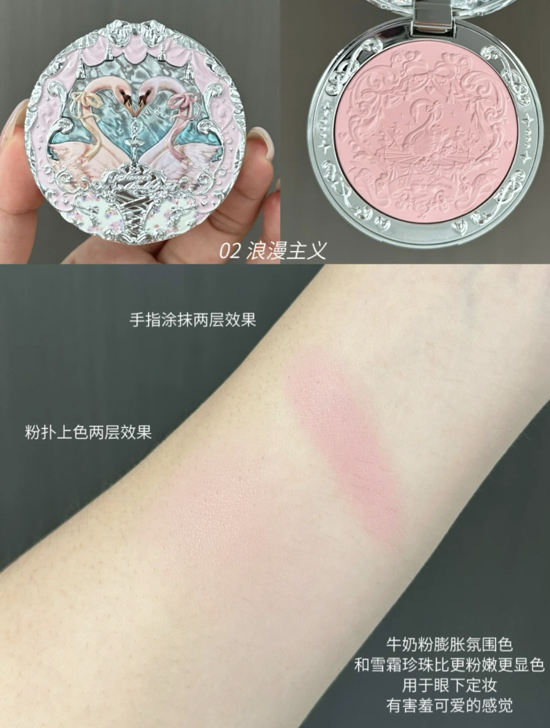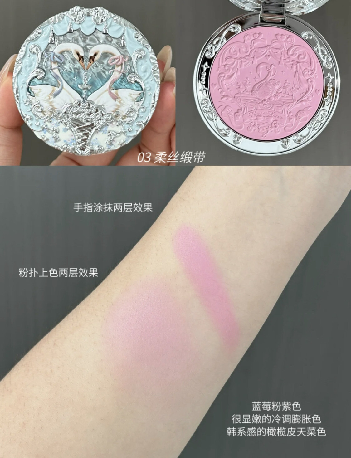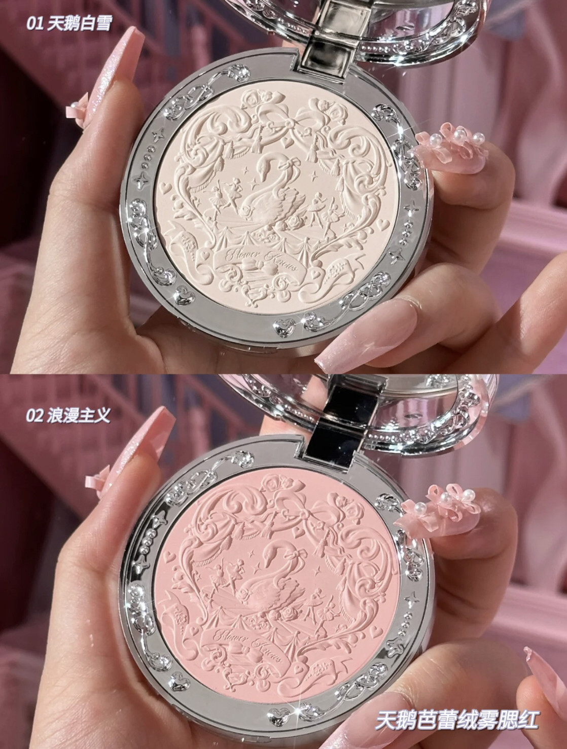 Flower Knows Swan Ballet Series Velvet Mist Embossed Blush Highlighter Expanding Color Blush Purple Atmosphere for Women