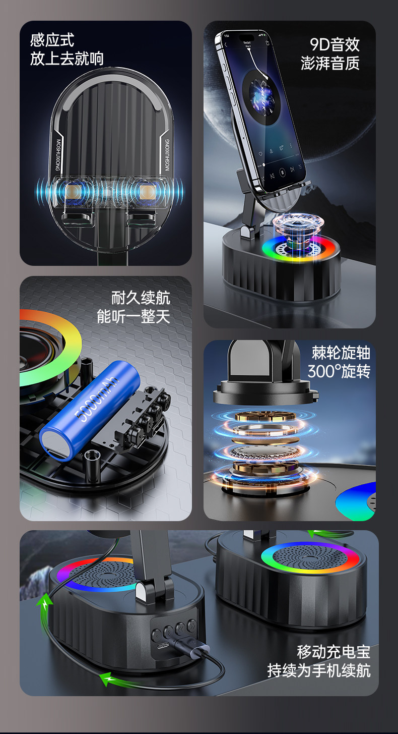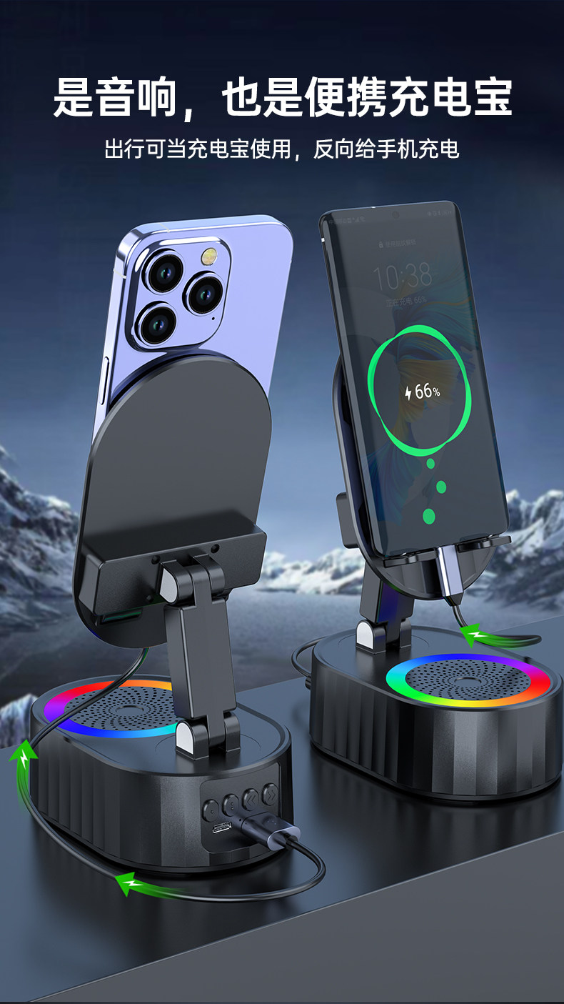 Multifunctional Five-In-One Mobile Phone Stand with Bluetooth Speaker, Power Bank, Desktop Home Lazy Stand, Speaker, Tablet, Bluetooth Power Bank, Audio-Visual Entertainment All-In-One Speaker