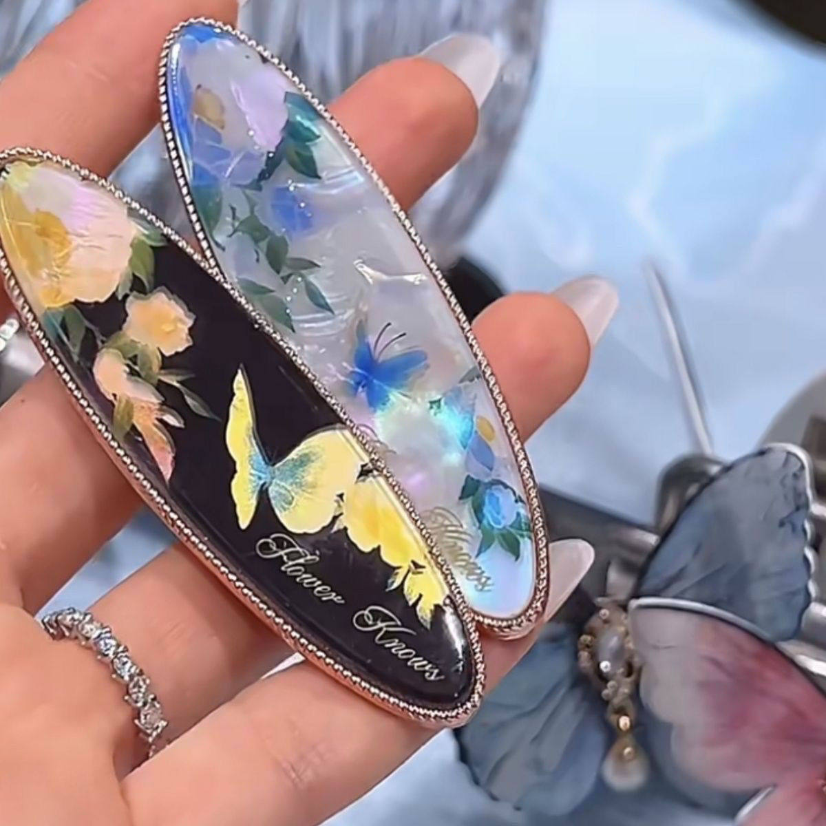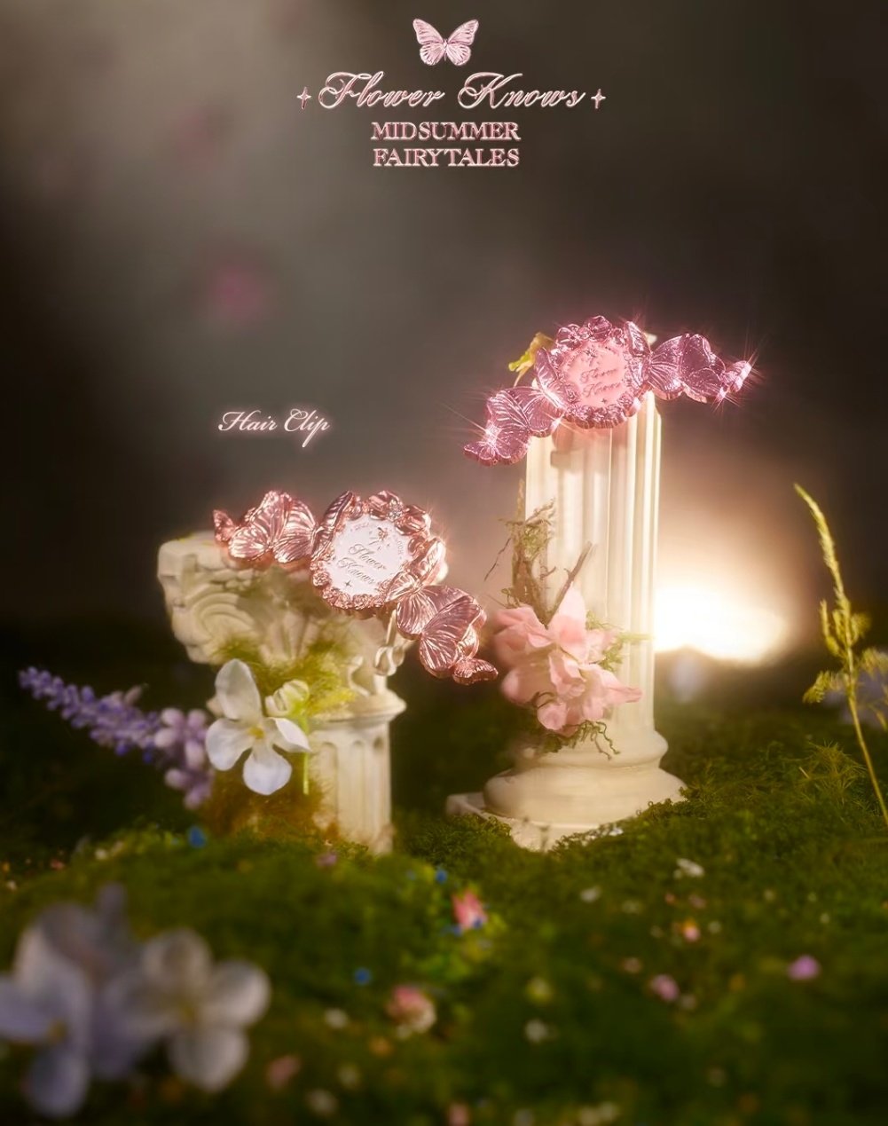 Floral-Themed Hairpin with Shell Pearls, Strawberry Cupid, Butterfly, Cloud Shoulder, Midsummer Night, Two-Tone Hair Clip, Hair Accessory