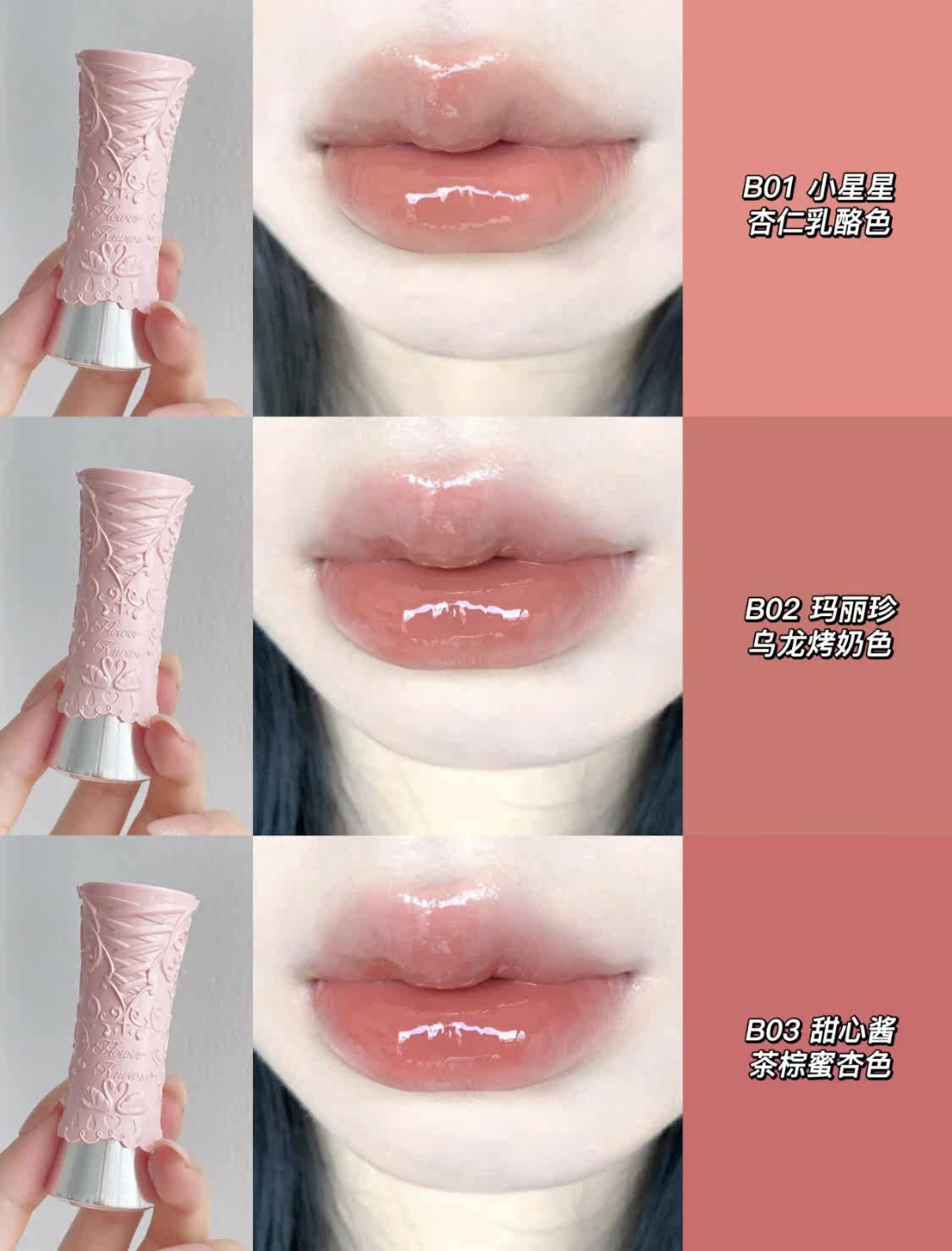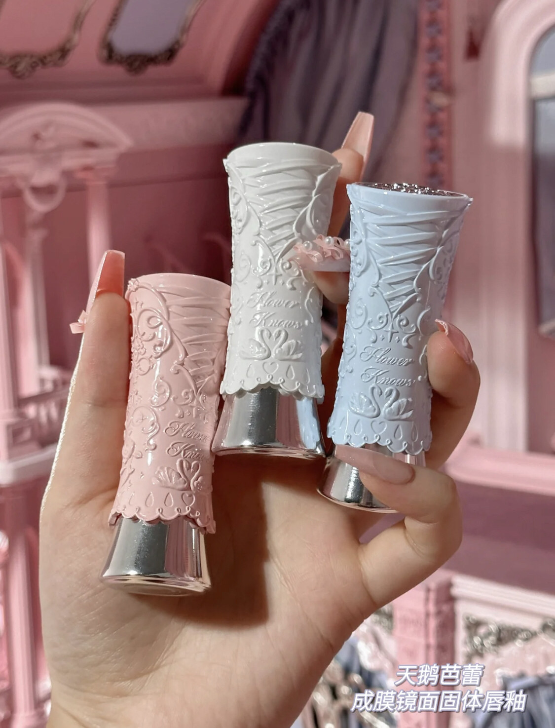 Product Name Flower Knows Swan Ballet Series Film-Forming Mirror Solid Lip Glaze B04 Silver Crescent