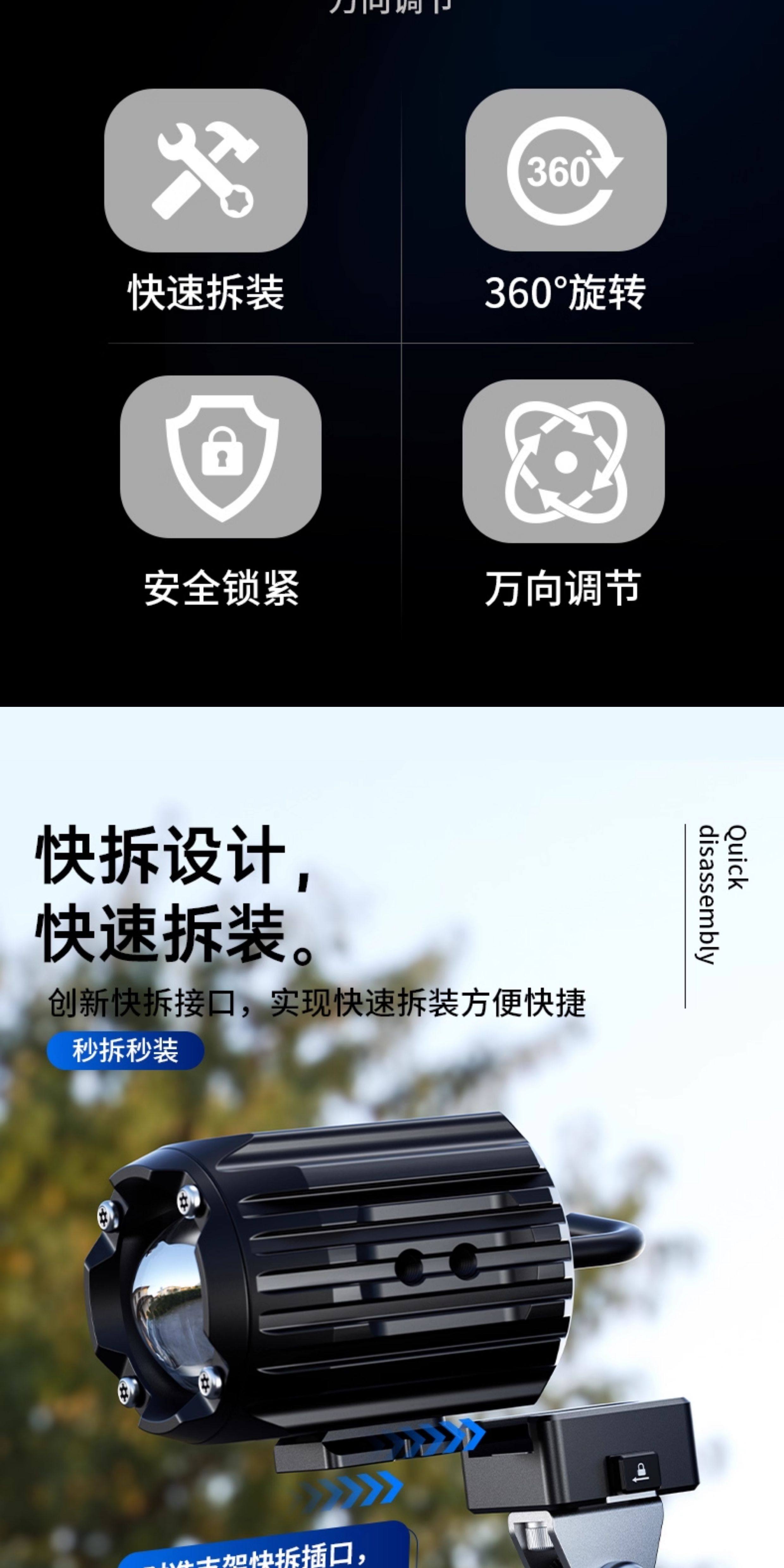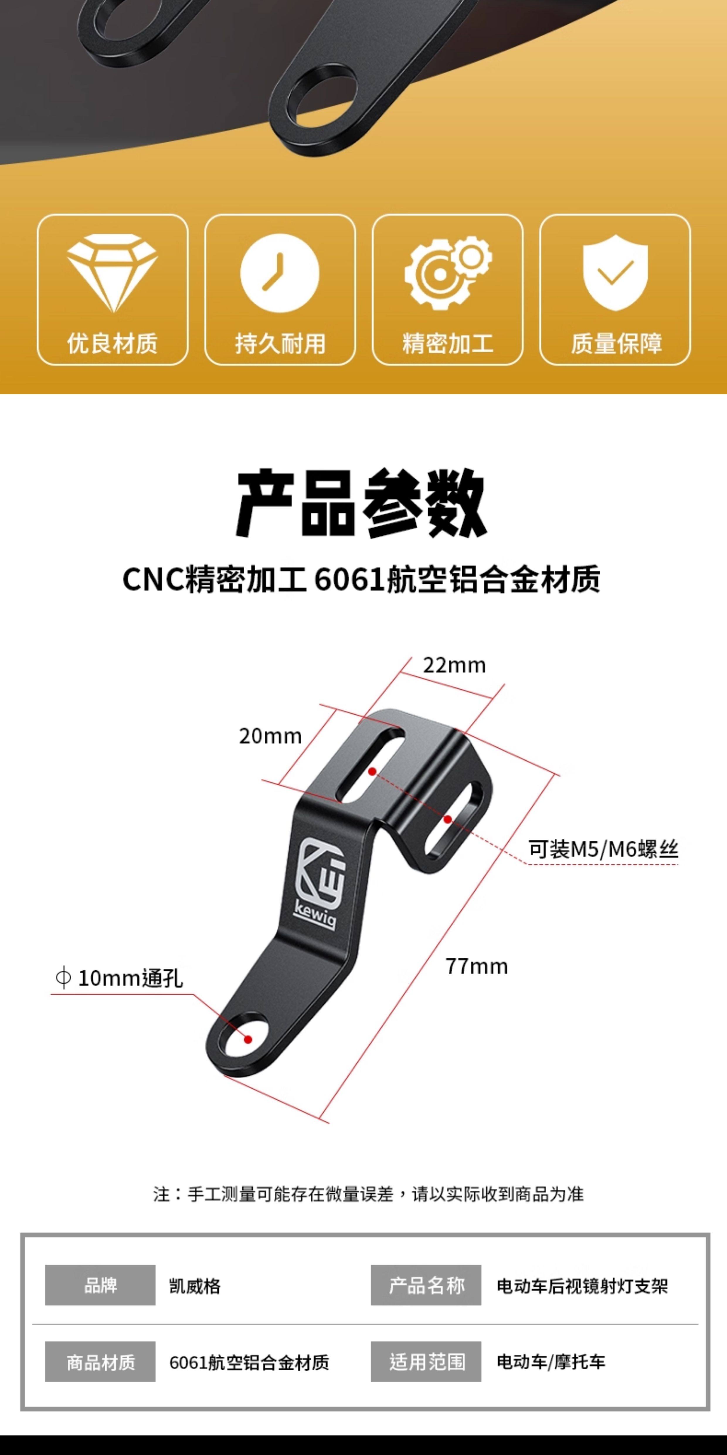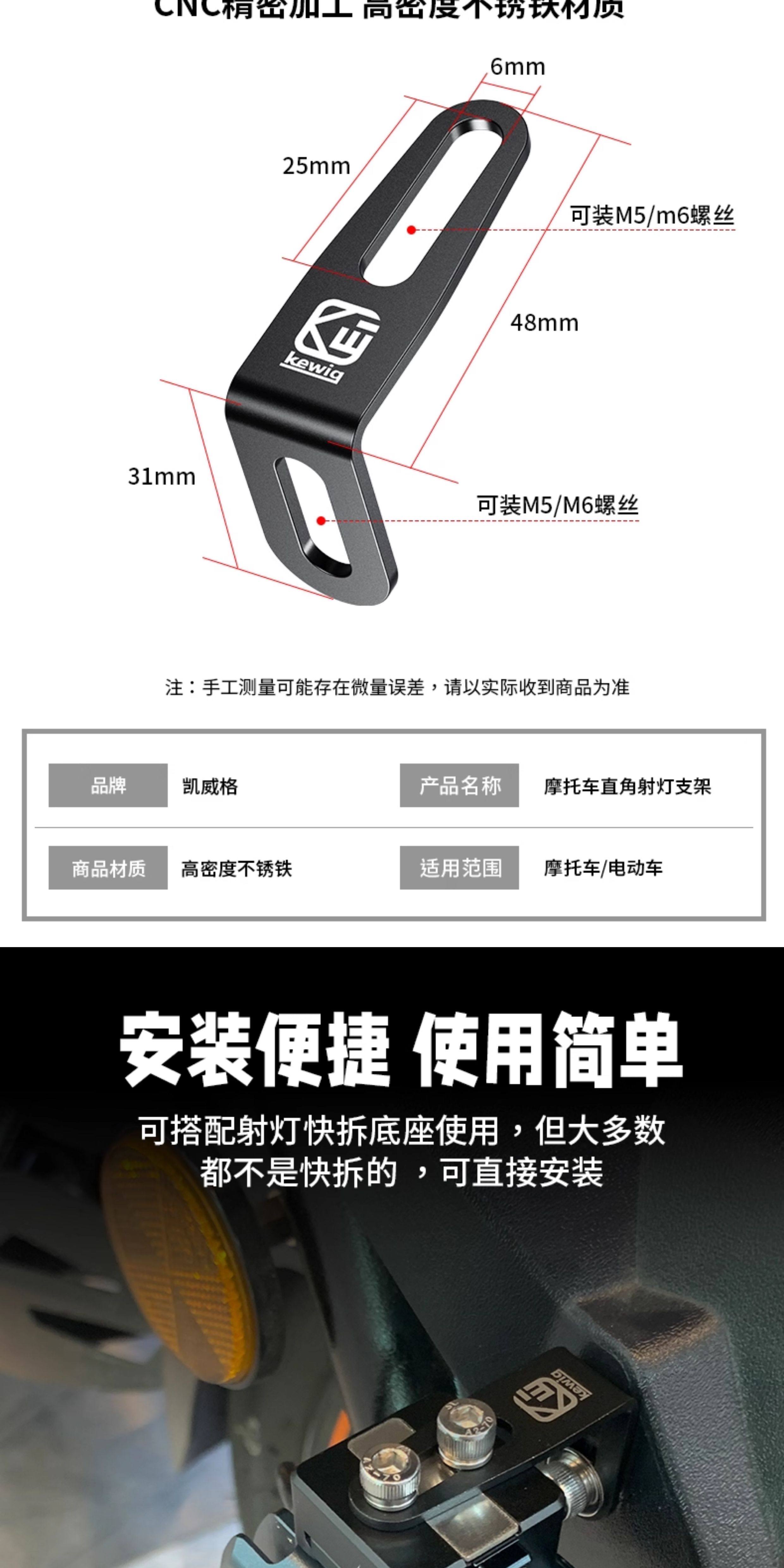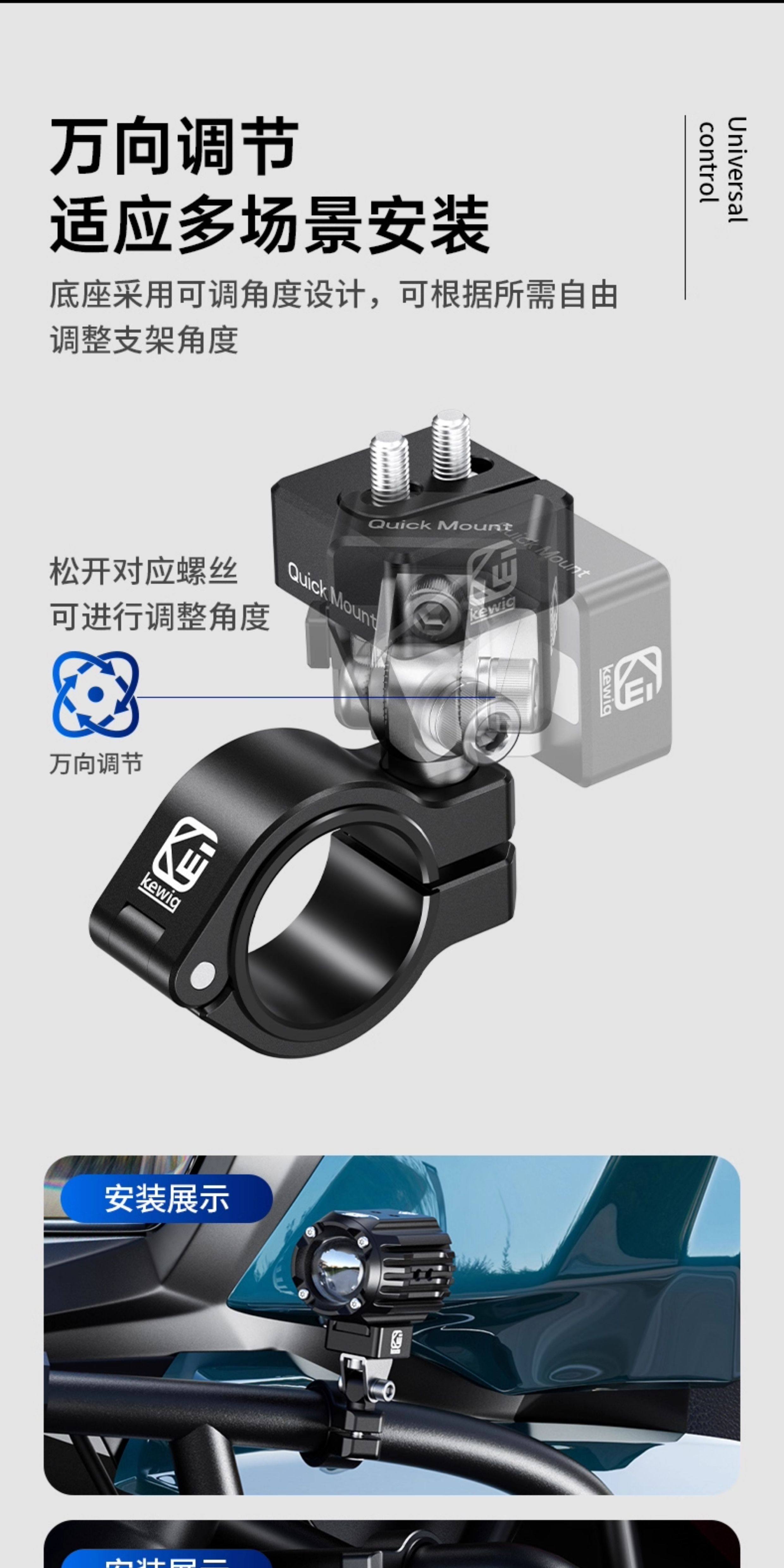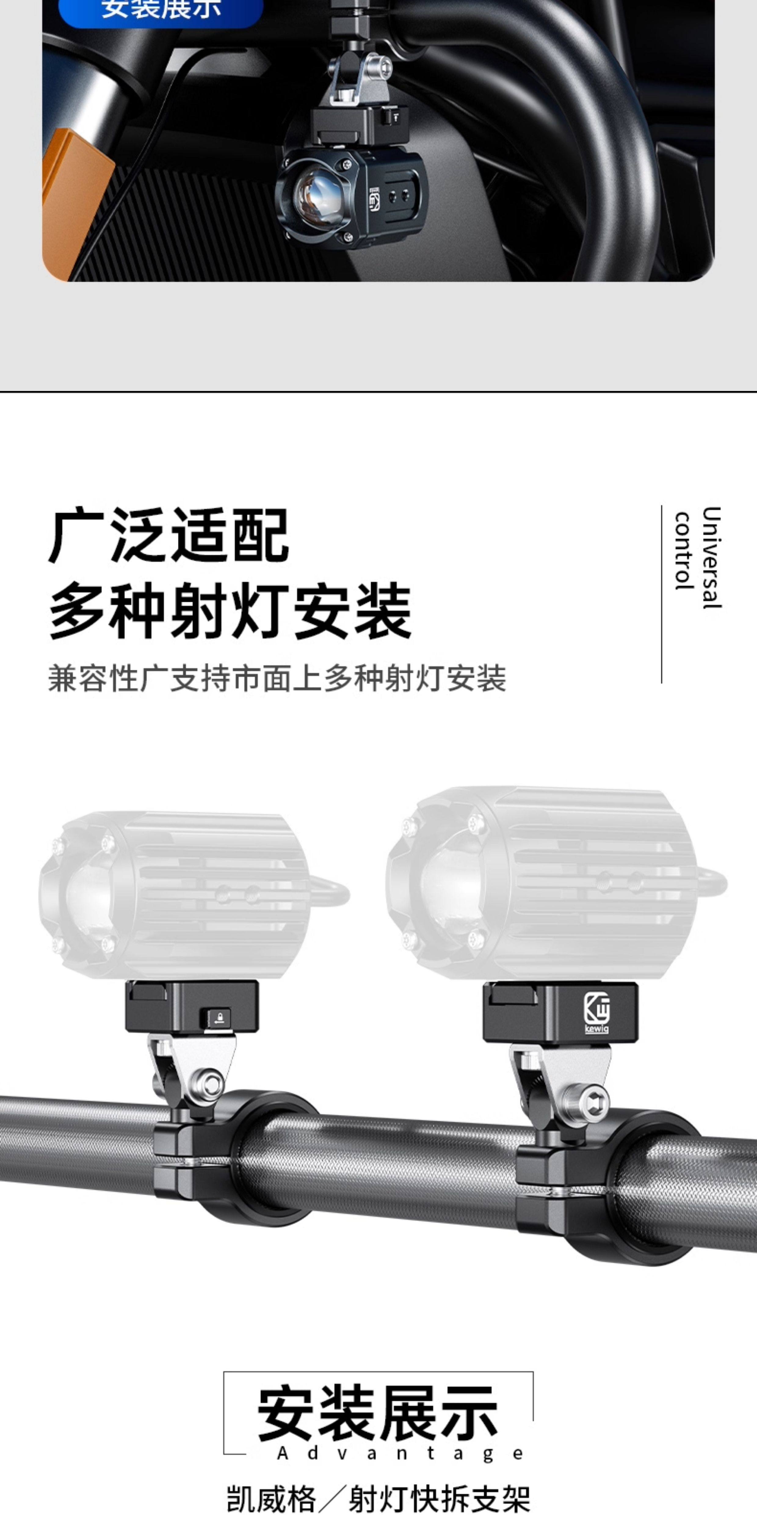 Kaiweige Motorcycle Spotlight Quick-Release Bracket Fixed to Electric Vehicle Rearview Mirror Base Hidden Universal Bracket