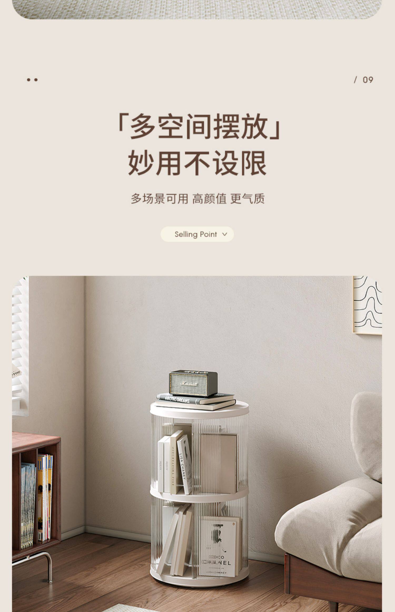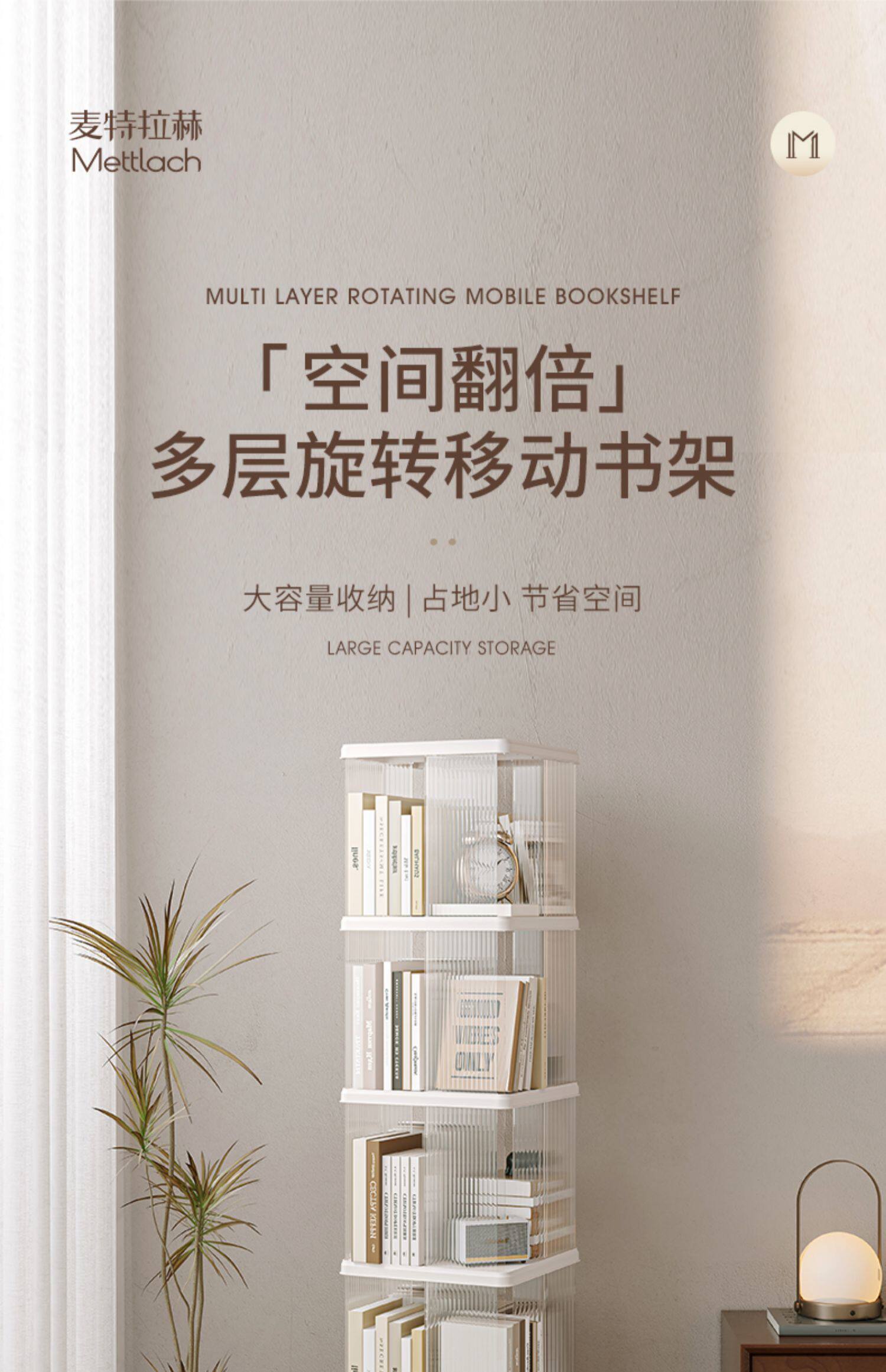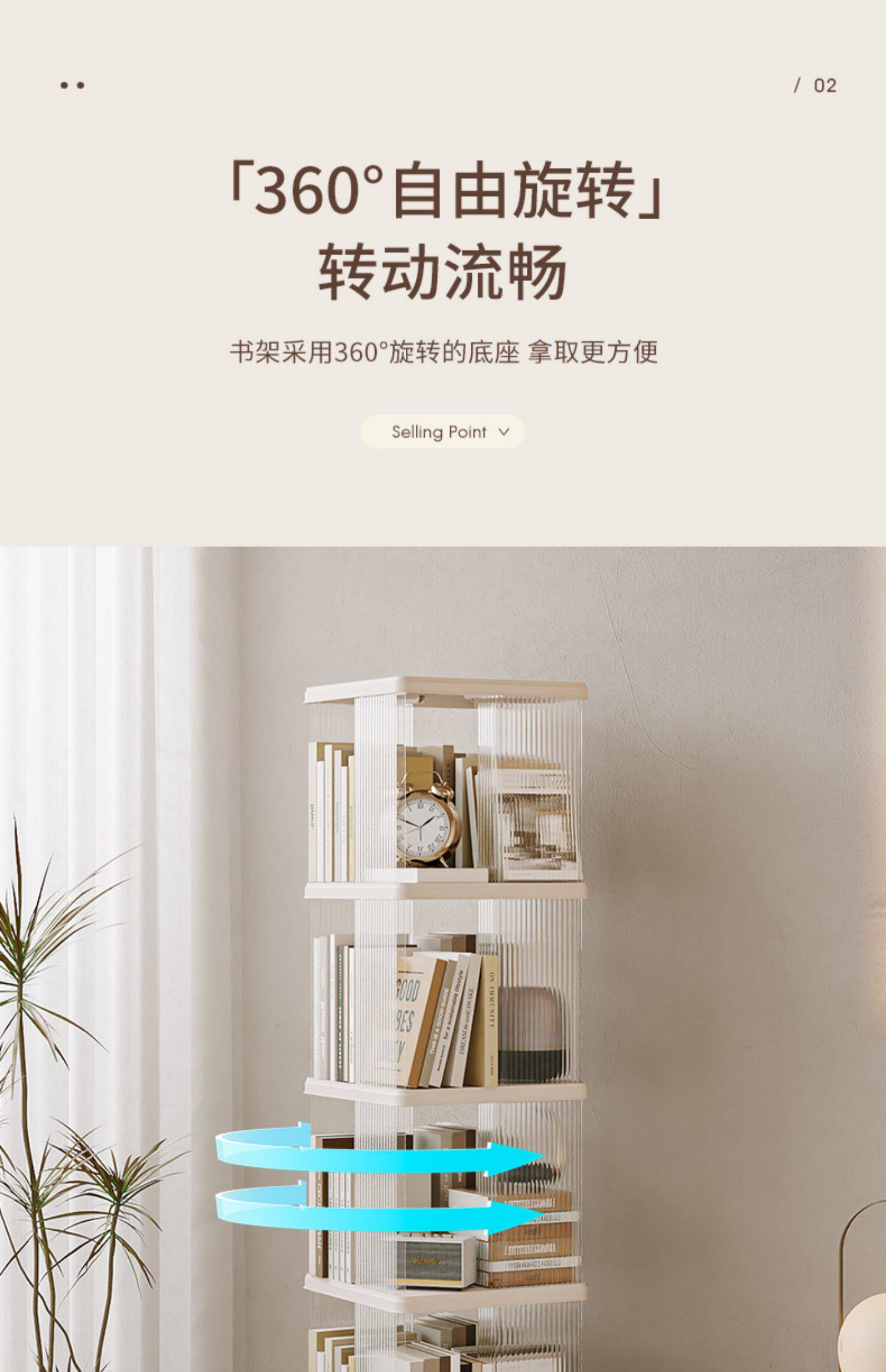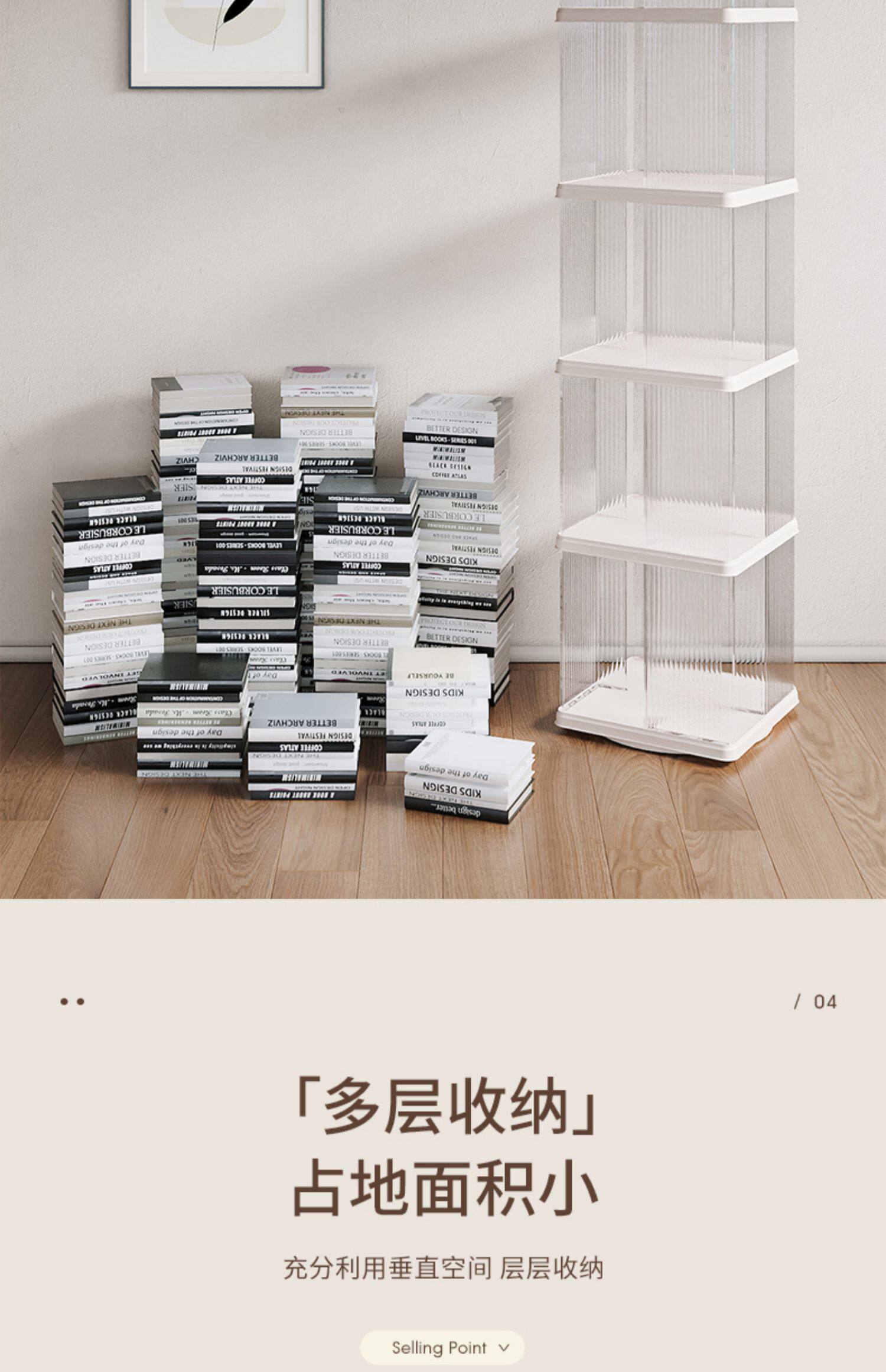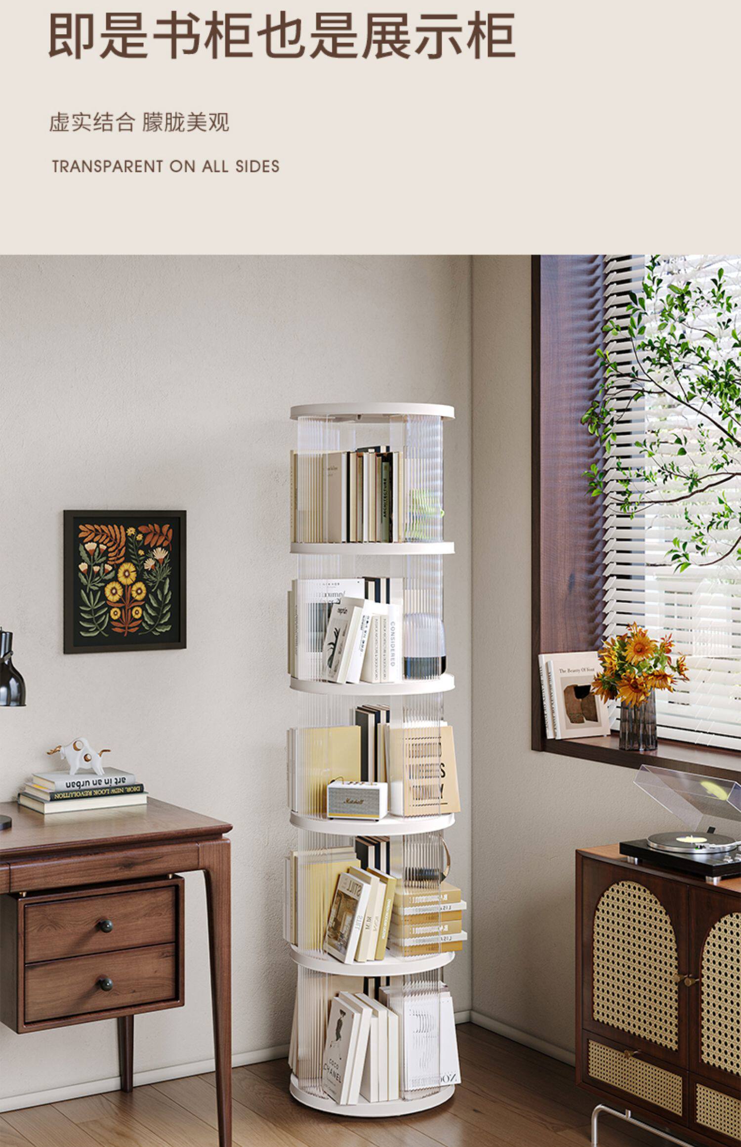 Bookshelf floor-standing storage rack 360-degree rotating movable display bookcase living room study corner multi-layer storage rack