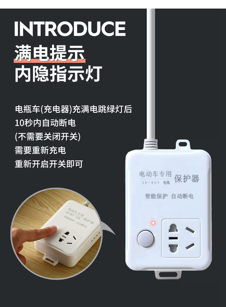 Electric Vehicle Charging Protector Prevents Overcharging, Automatically Cuts Off Power, Extends the Cable, Smart Timer Socket, Battery Electric Vehicle Two-Wheel Charging Protection Countdown Control