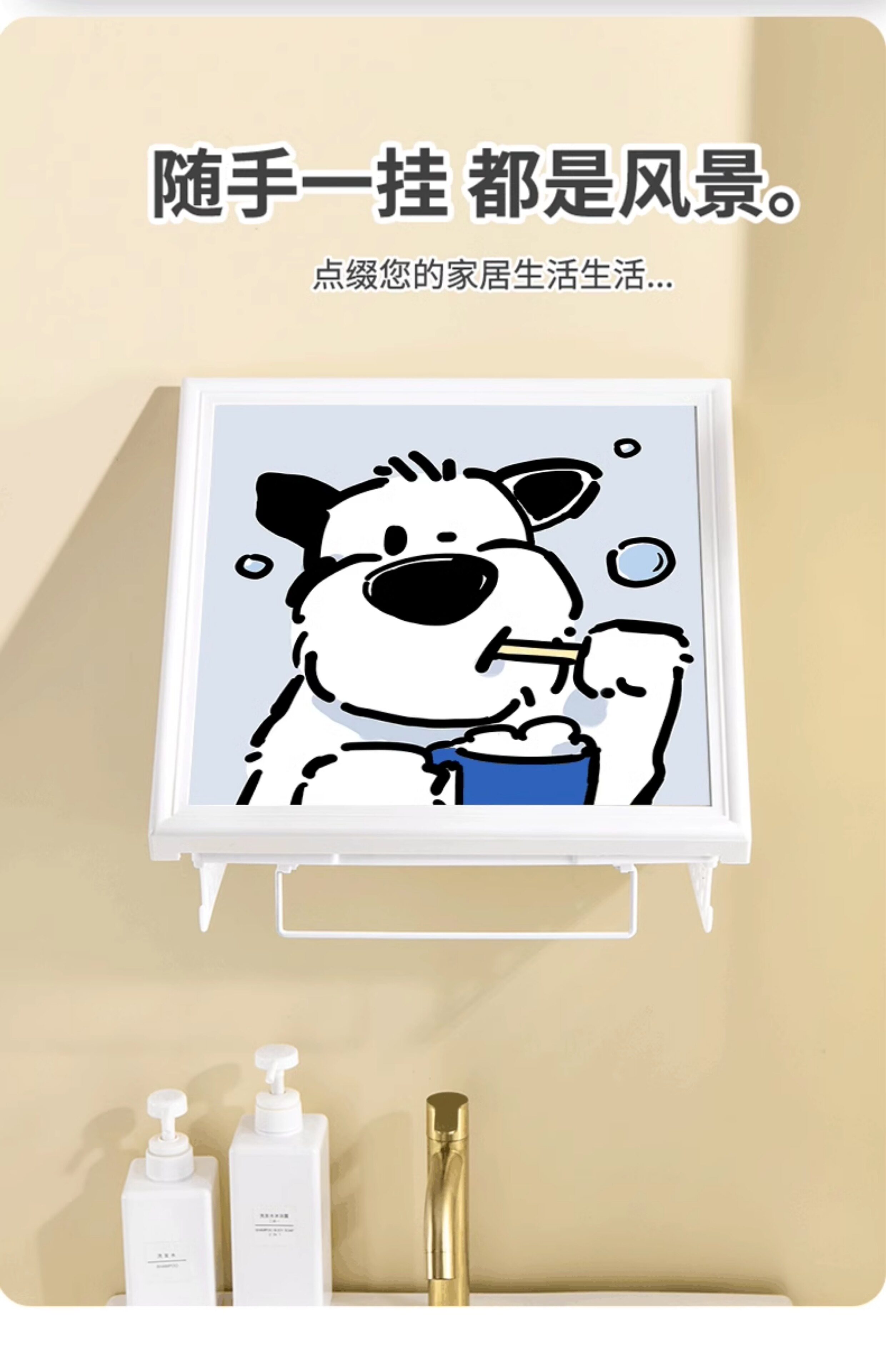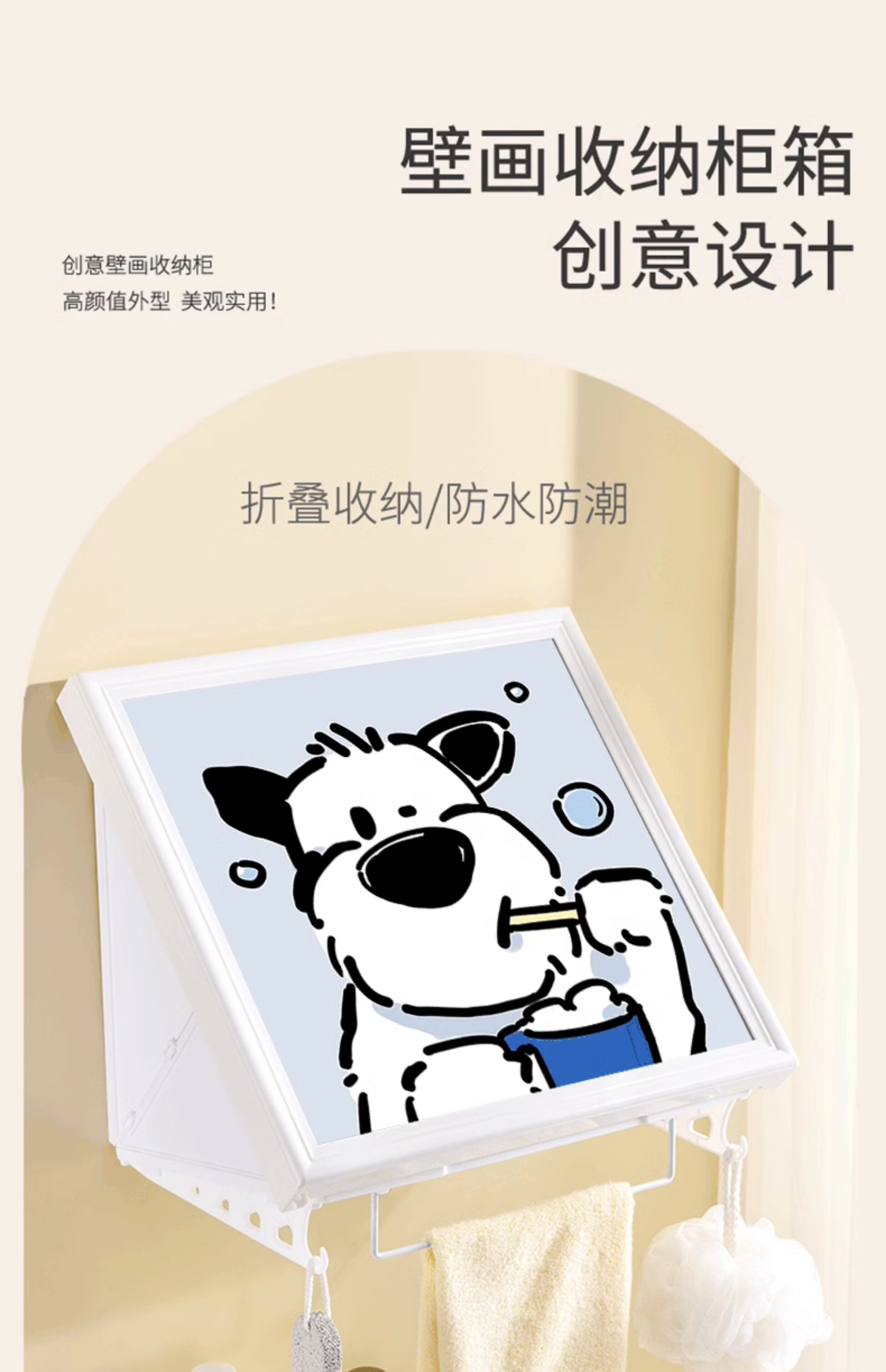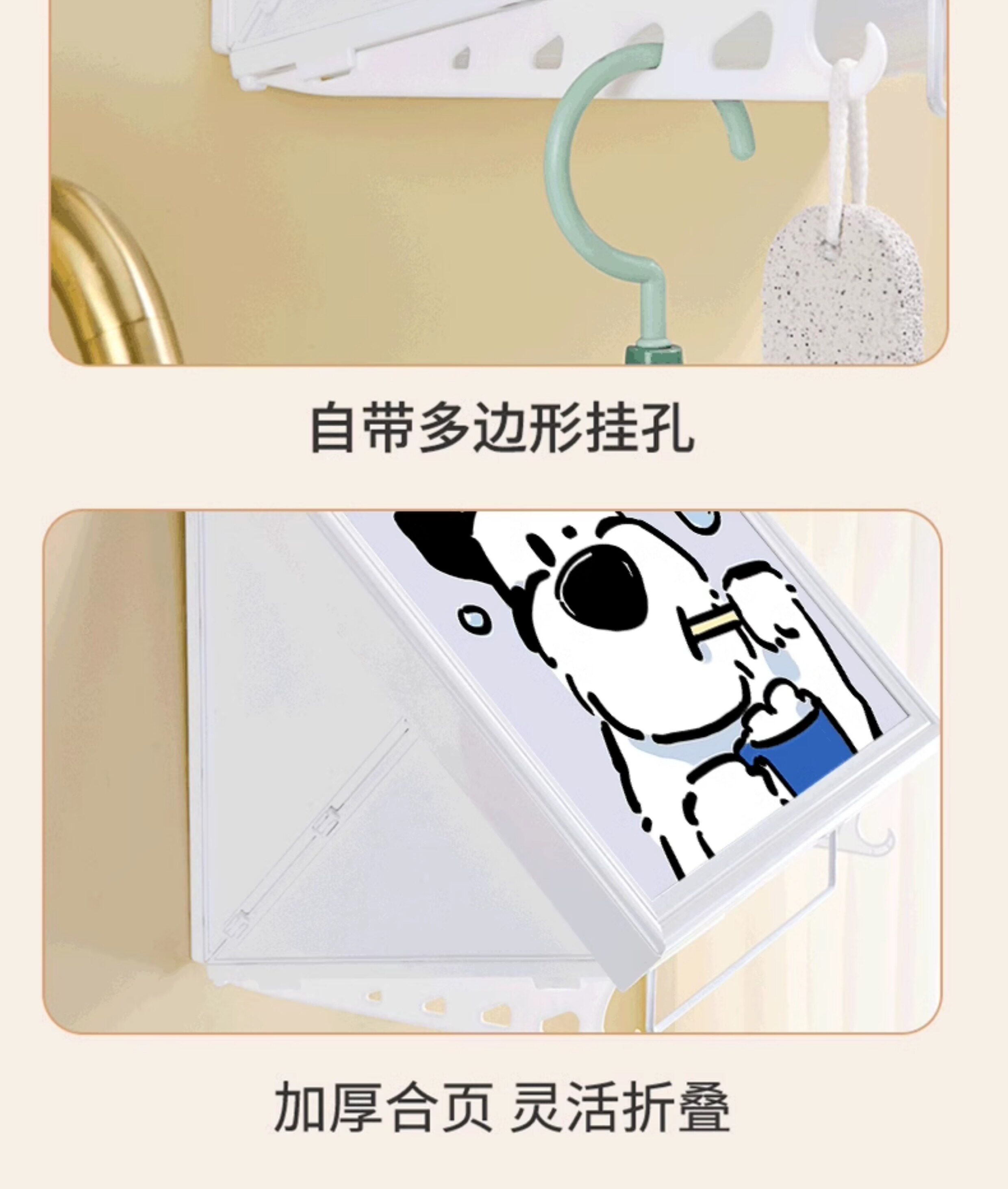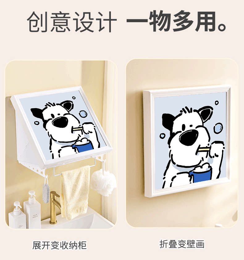Cartoon Puppy Bathroom Foldable Storage Painting Shower Room Waterproof Mural Storage Box Toilet Nail-Free Wall Shelf
