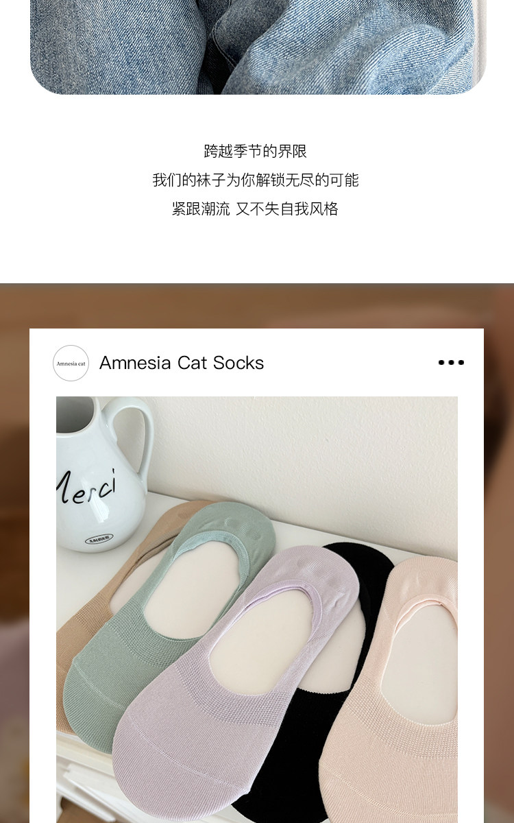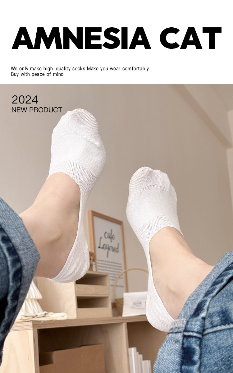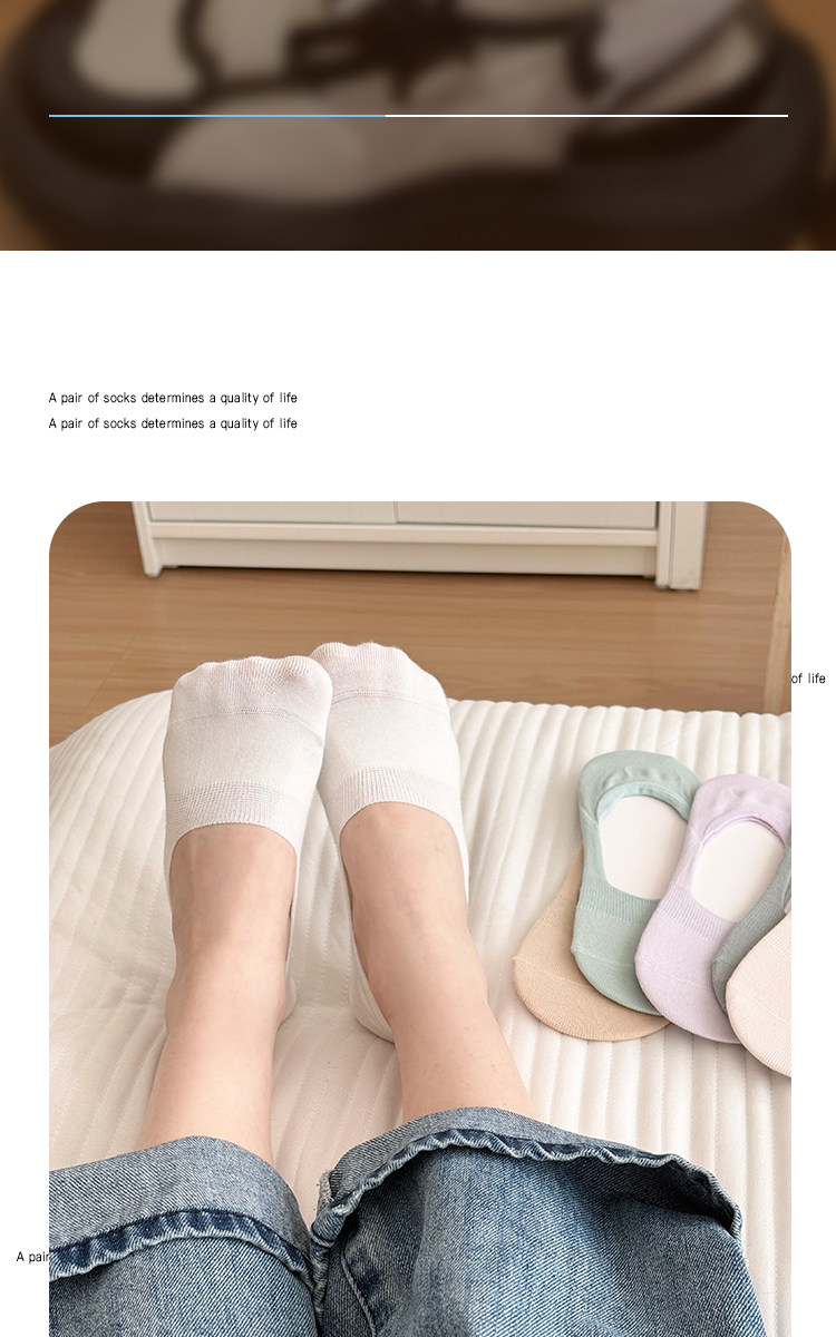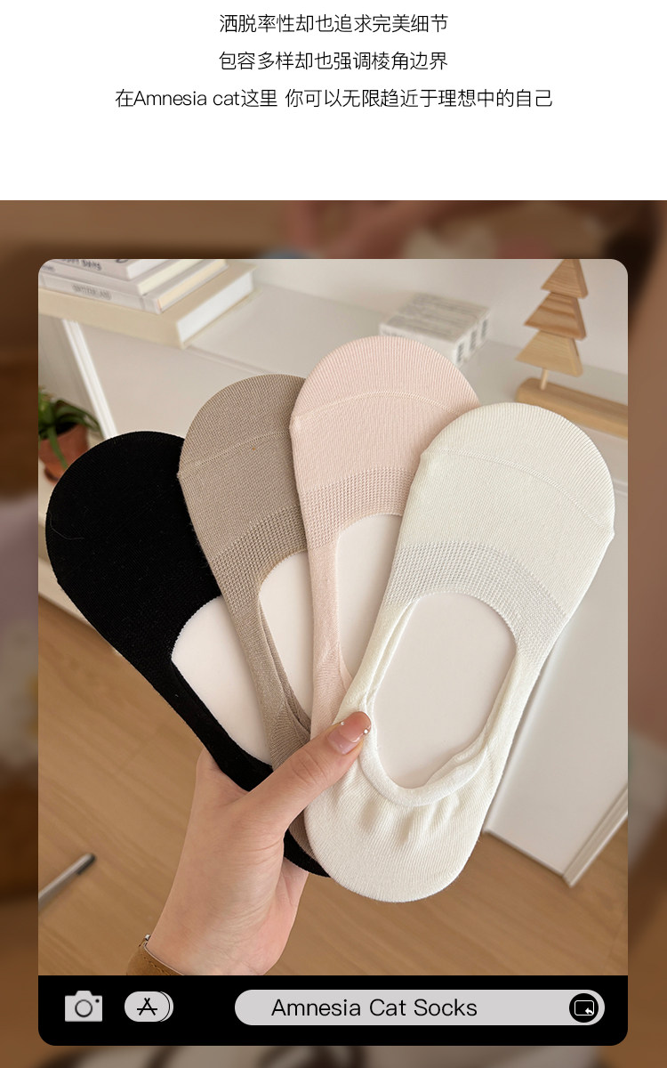 Women's Summer Thin Boat Socks, Japanese Style Solid Color Socks, Low-Cut Silicone Non-Slip No-Show Socks for Flats, Invisible Summer Short Socks