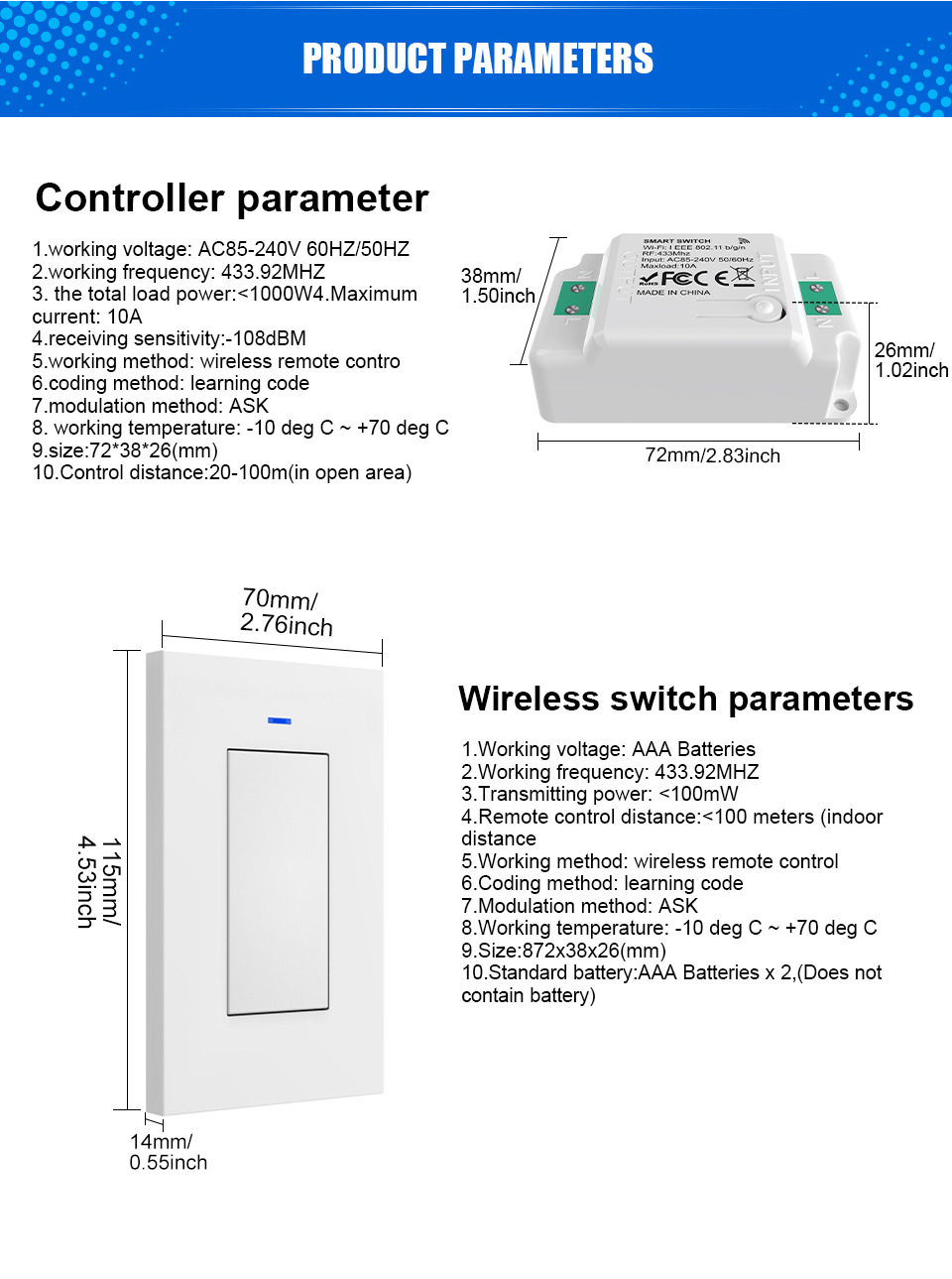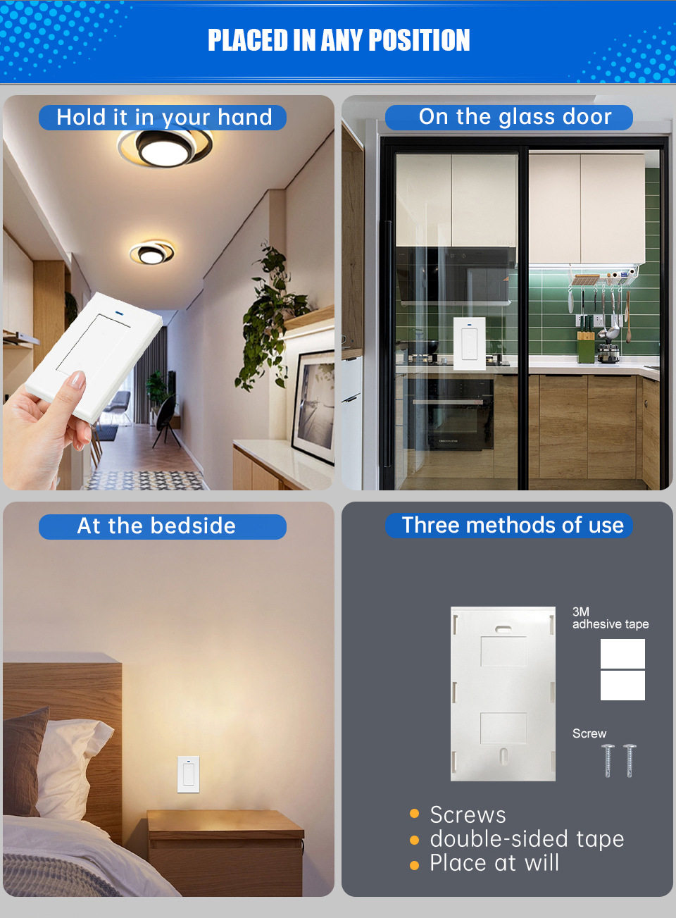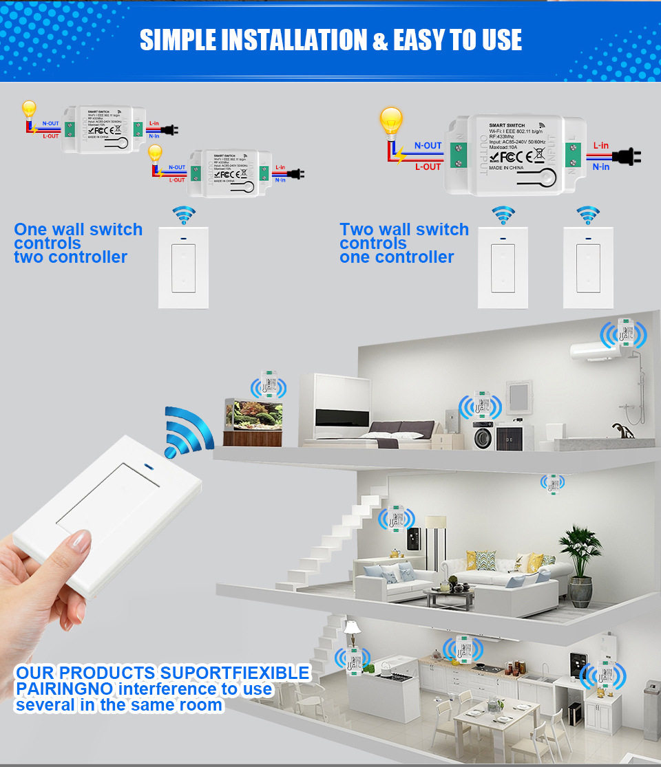 Color Classification Single Gang Single Pole (1 Us Standard Switch + 1 Whd01),Single Gang, Dual Control (2 Us Standard Switches + 1 Whd01),Dual Opening and Single Control (1 Us Version Switch + 2 Whd01),Dual Opening and Dual Control (2 American Version Switches + 2 Whd01),American Version of Random Sticker Switch (Invalid if Purchased Separately),Rf433 Controls Whd01 (Invalid if Purchased Separately)