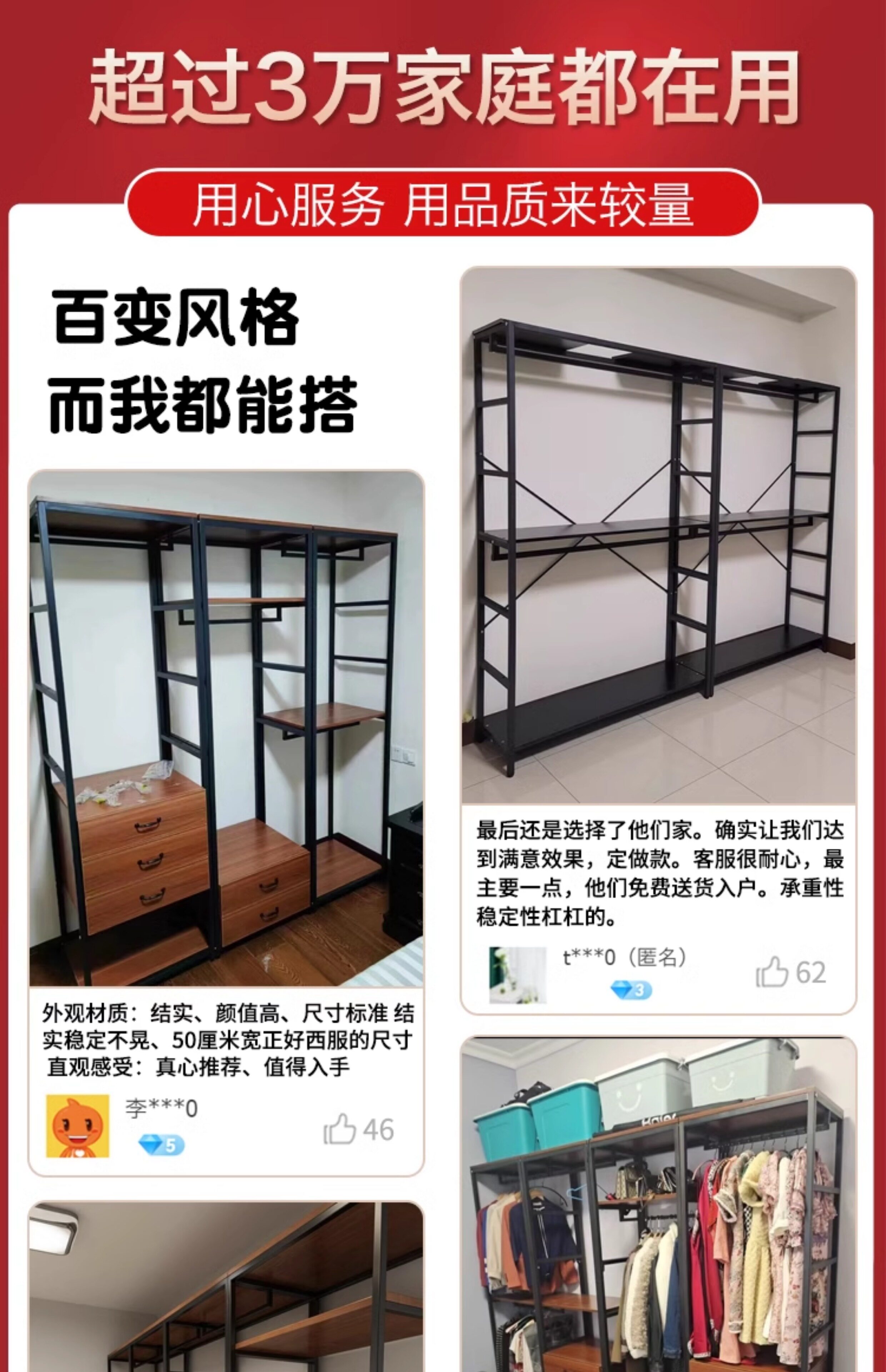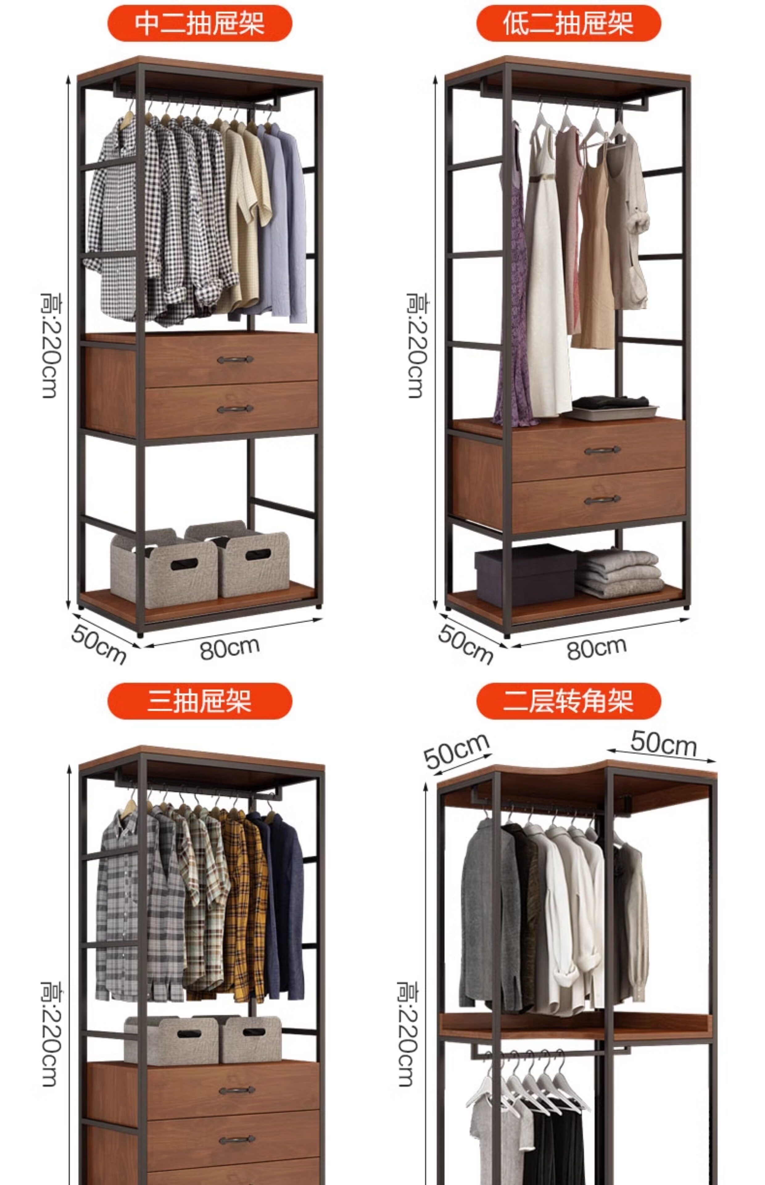 Open wardrobe household bedroom cloakroom coat rack storage rack simple floor-standing clothes rack walk-in rack