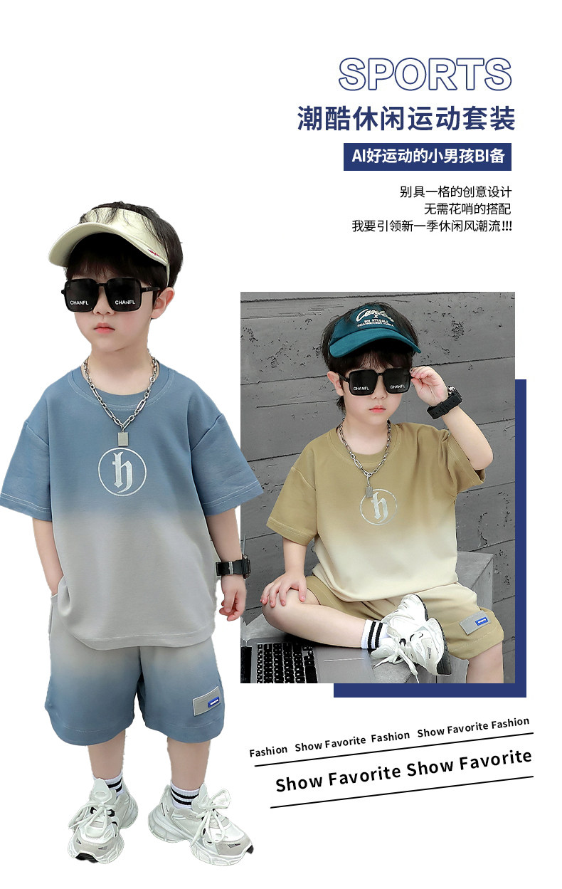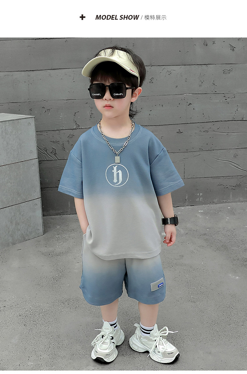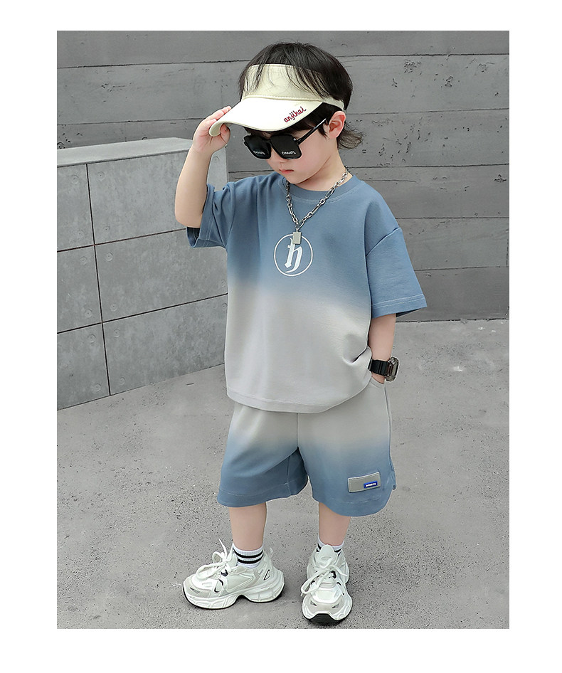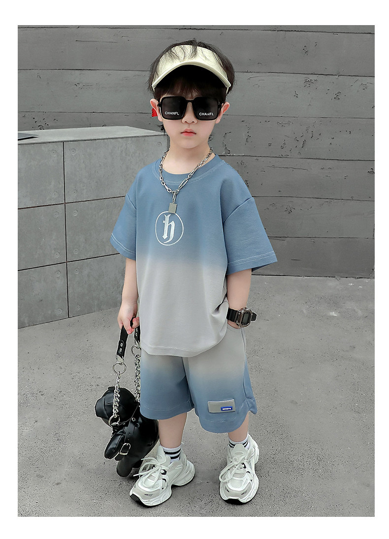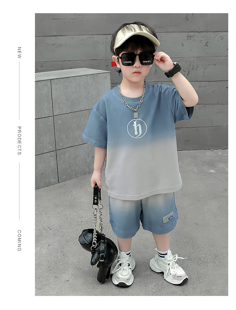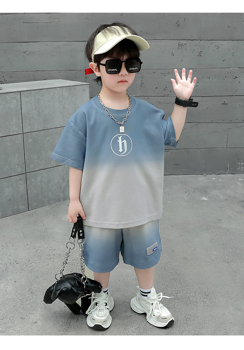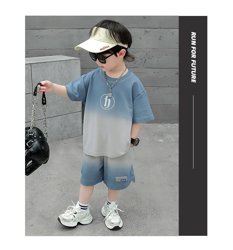 Boys' Summer Sports Suit 2024 New Style Handsome Little Boy Short-Sleeved Two-Piece Set Summer Kidsren's Fashionable Clothes