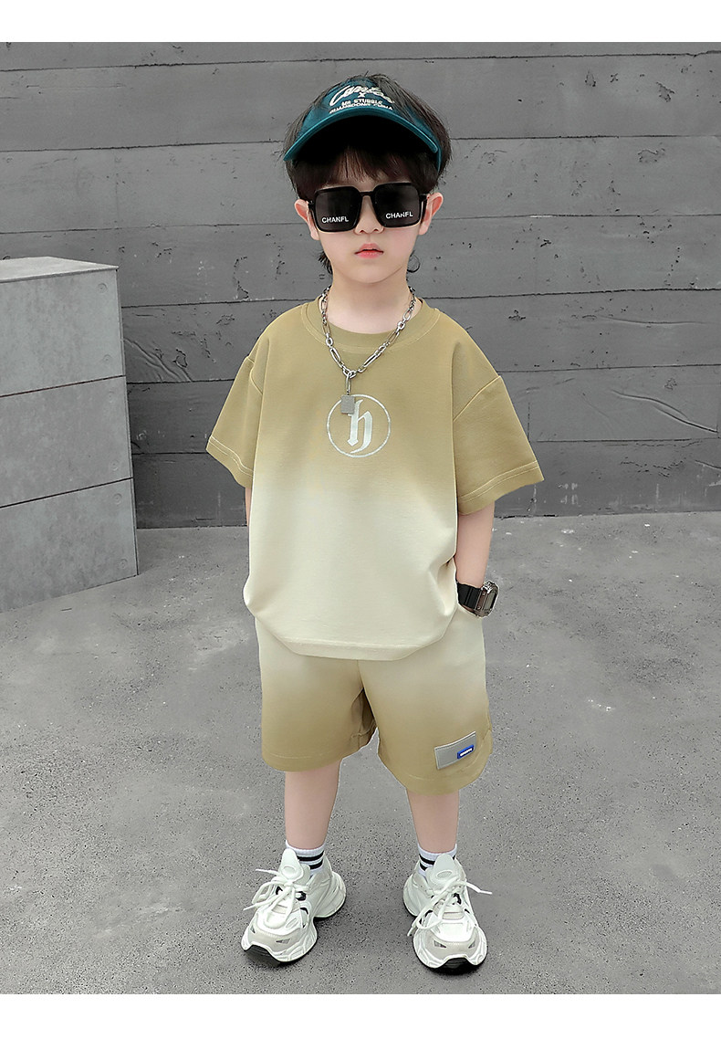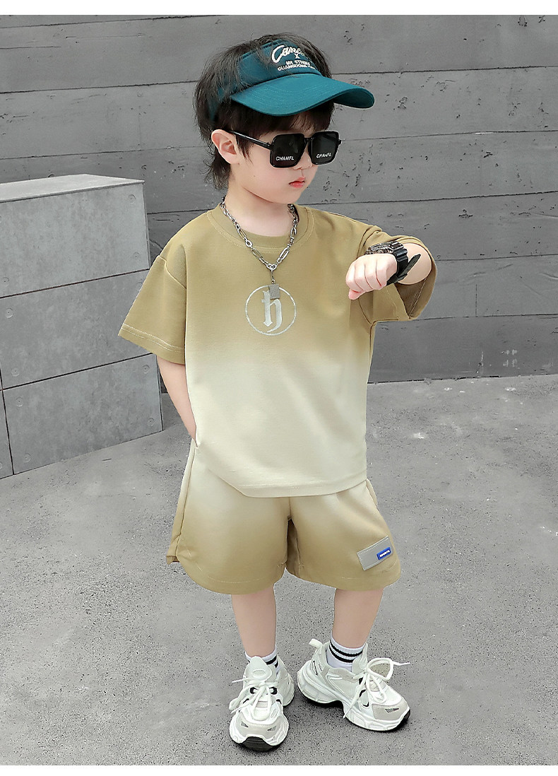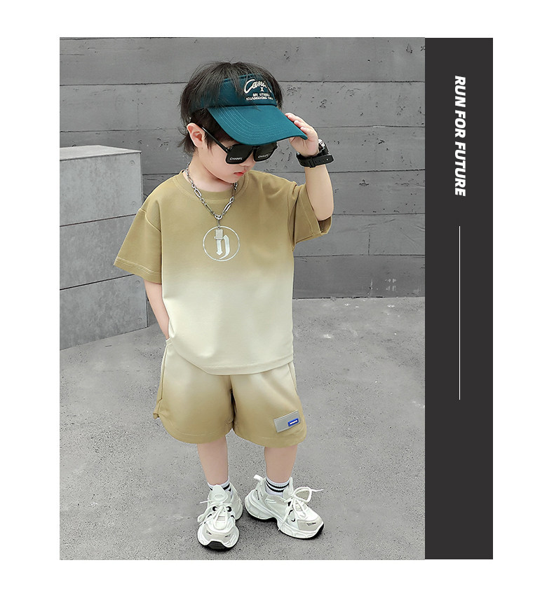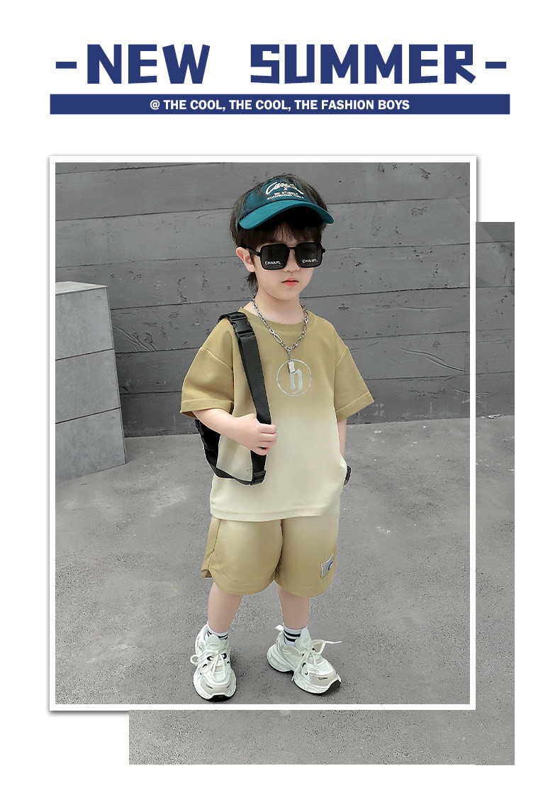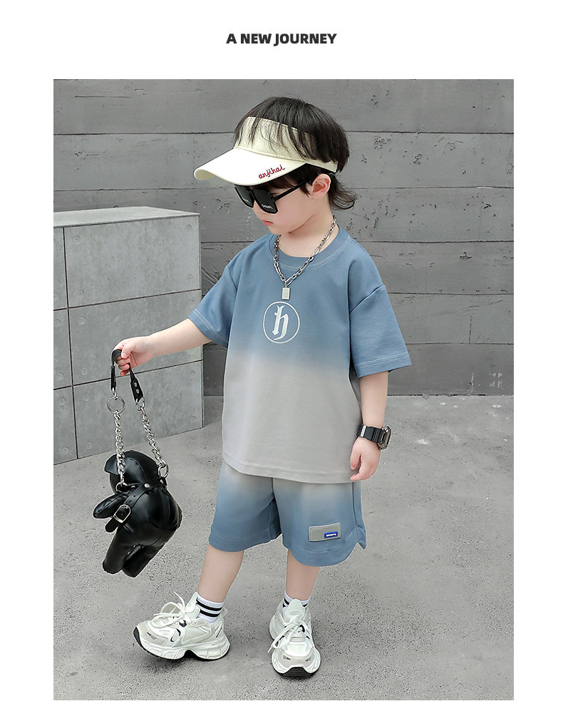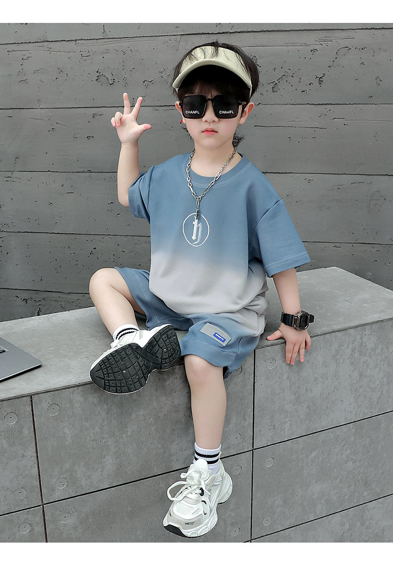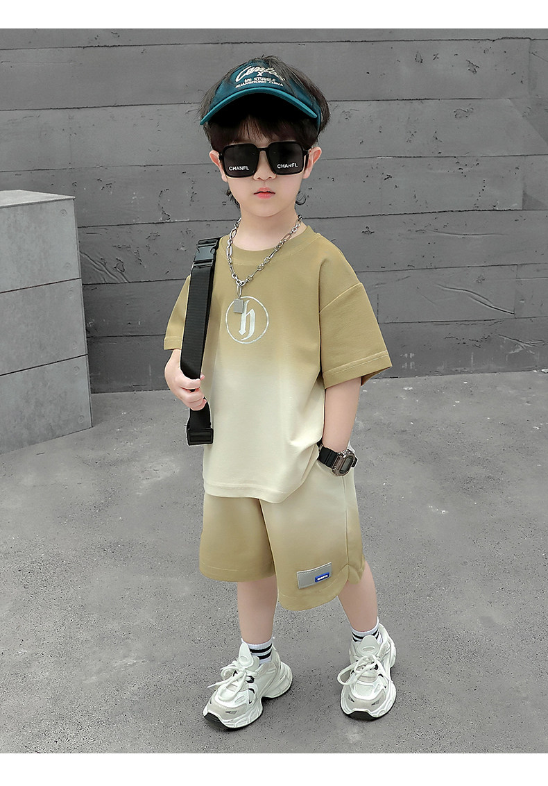 Boys' Summer Sports Suit 2024 New Style Handsome Little Boy Short-Sleeved Two-Piece Set Summer Kidsren's Fashionable Clothes