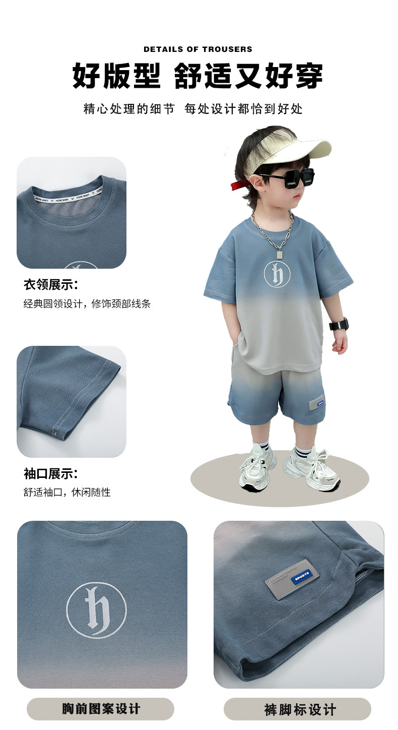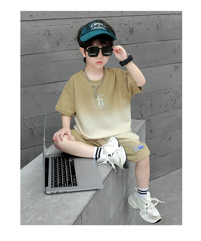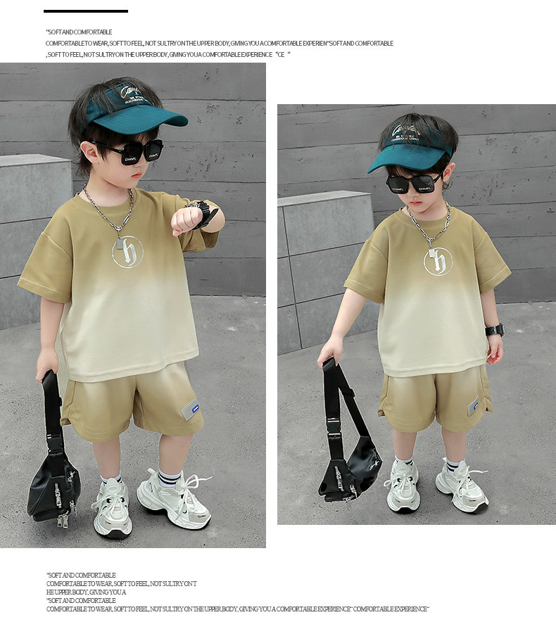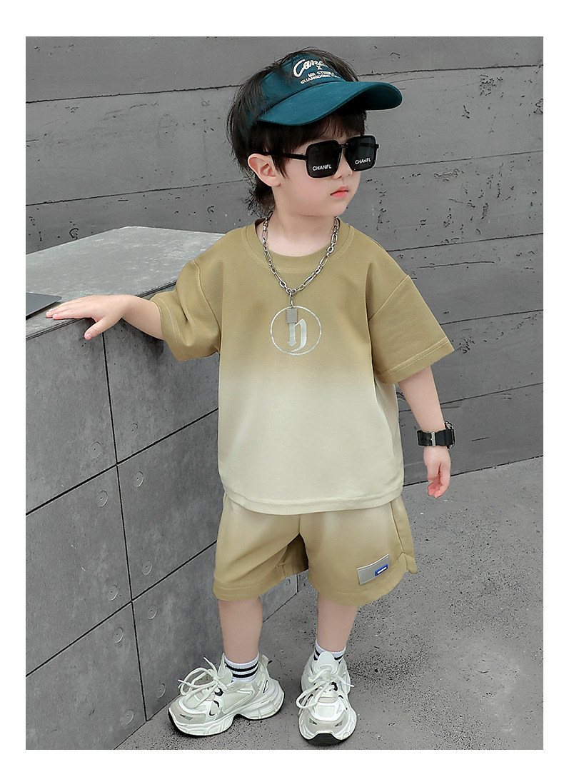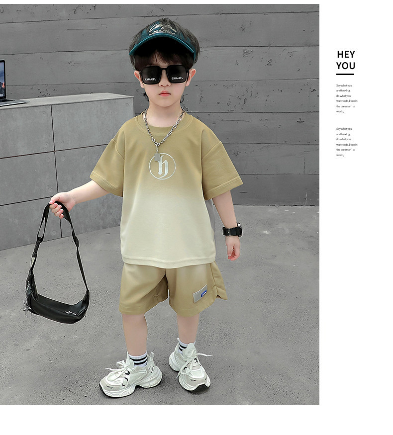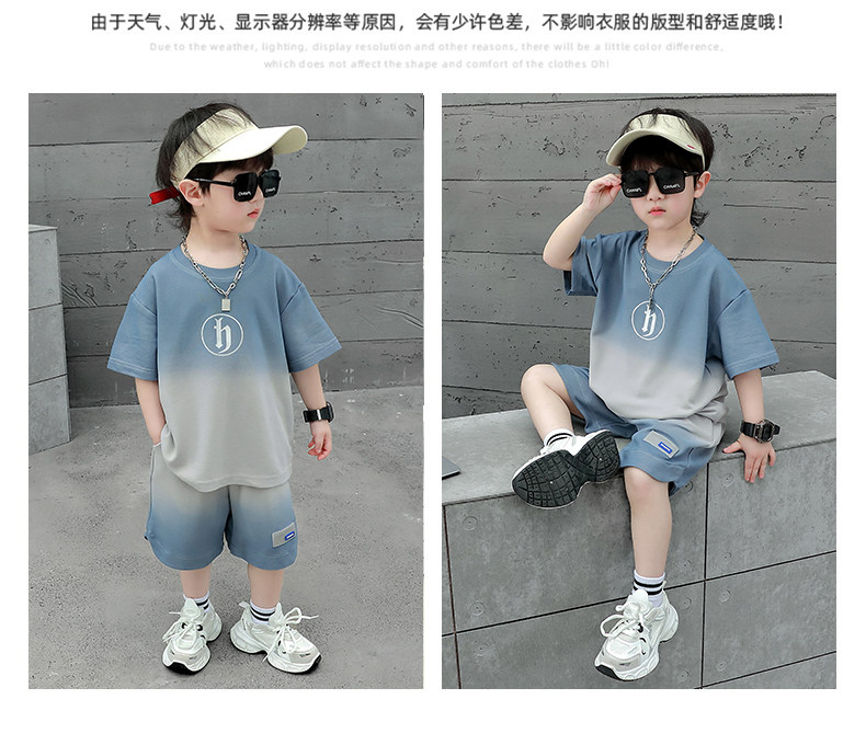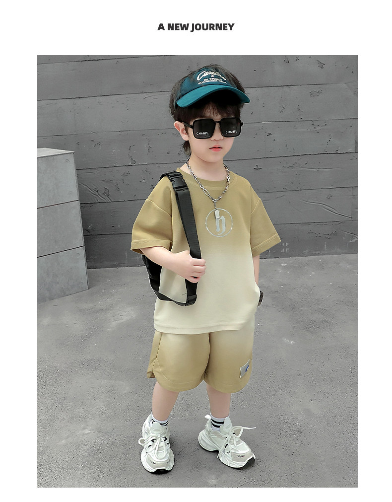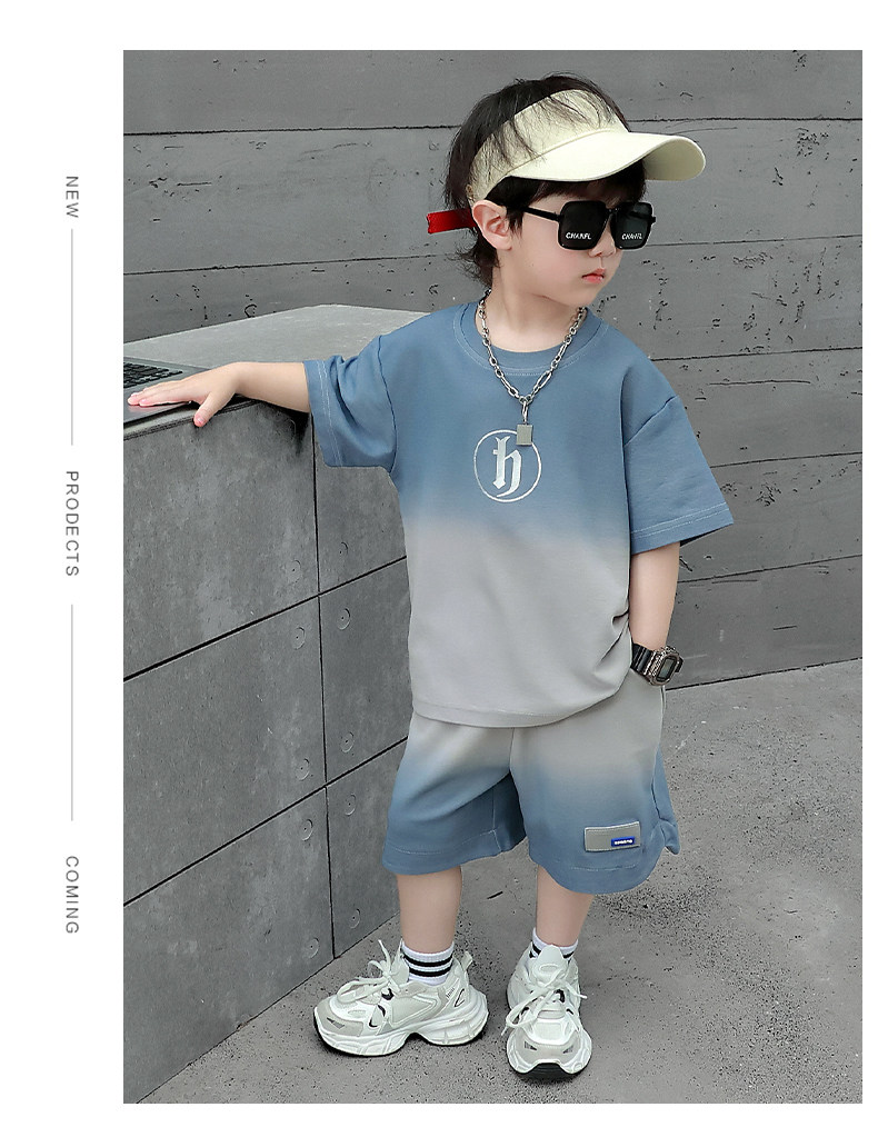 Boys' Summer Sports Suit 2024 New Style Handsome Little Boy Short-Sleeved Two-Piece Set Summer Kidsren's Fashionable Clothes