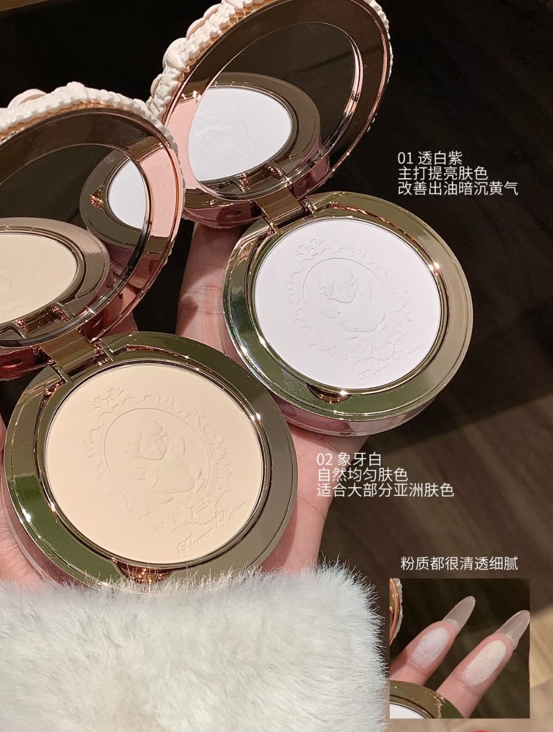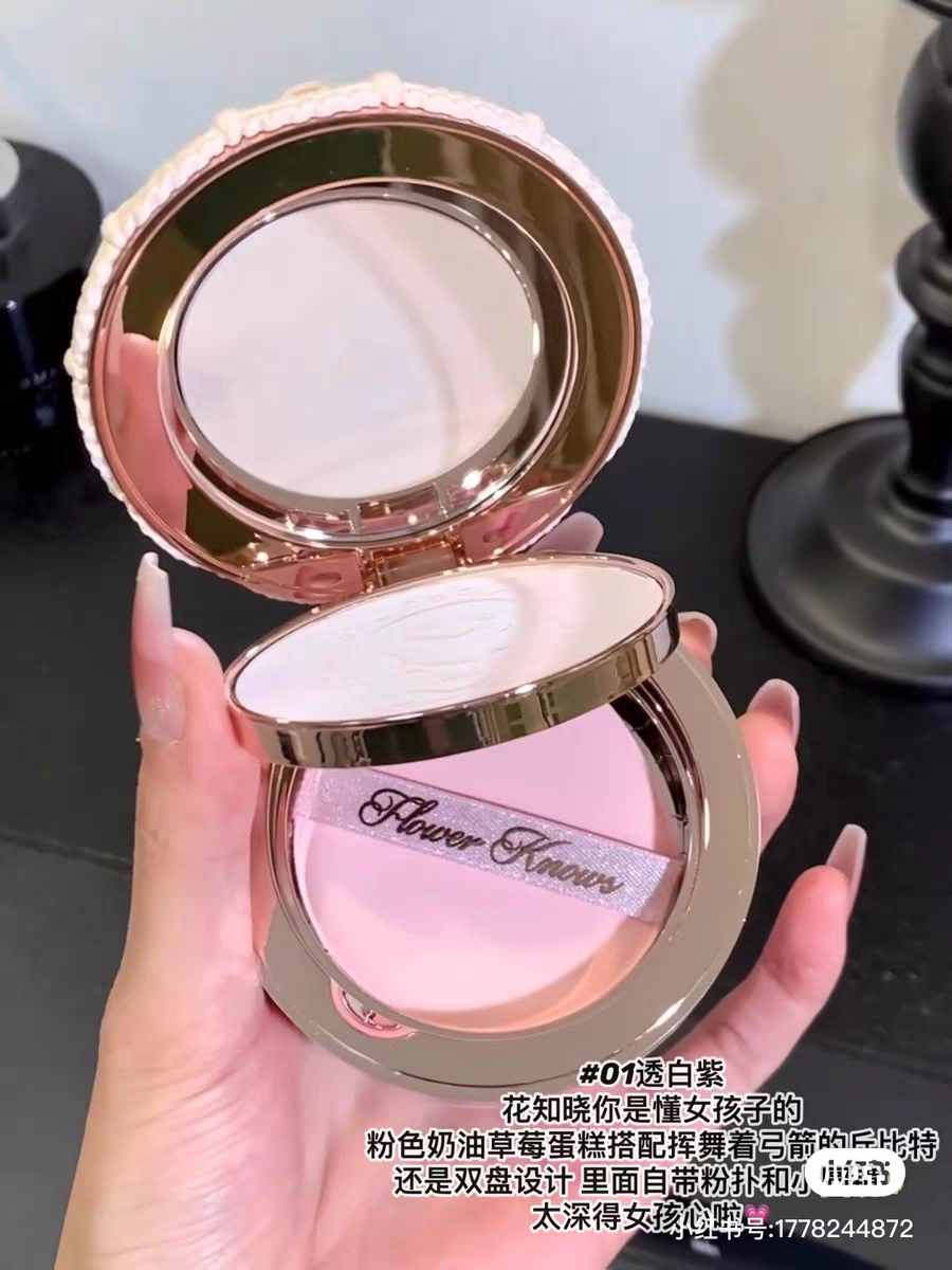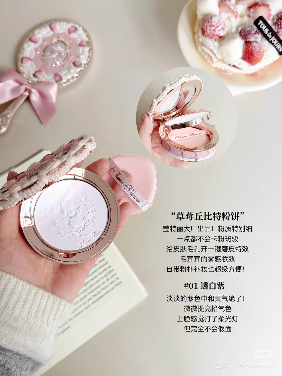 Product Name Flower Knows Strawberry Cupid Series Pressed Powder 01 Translucent White Purple
