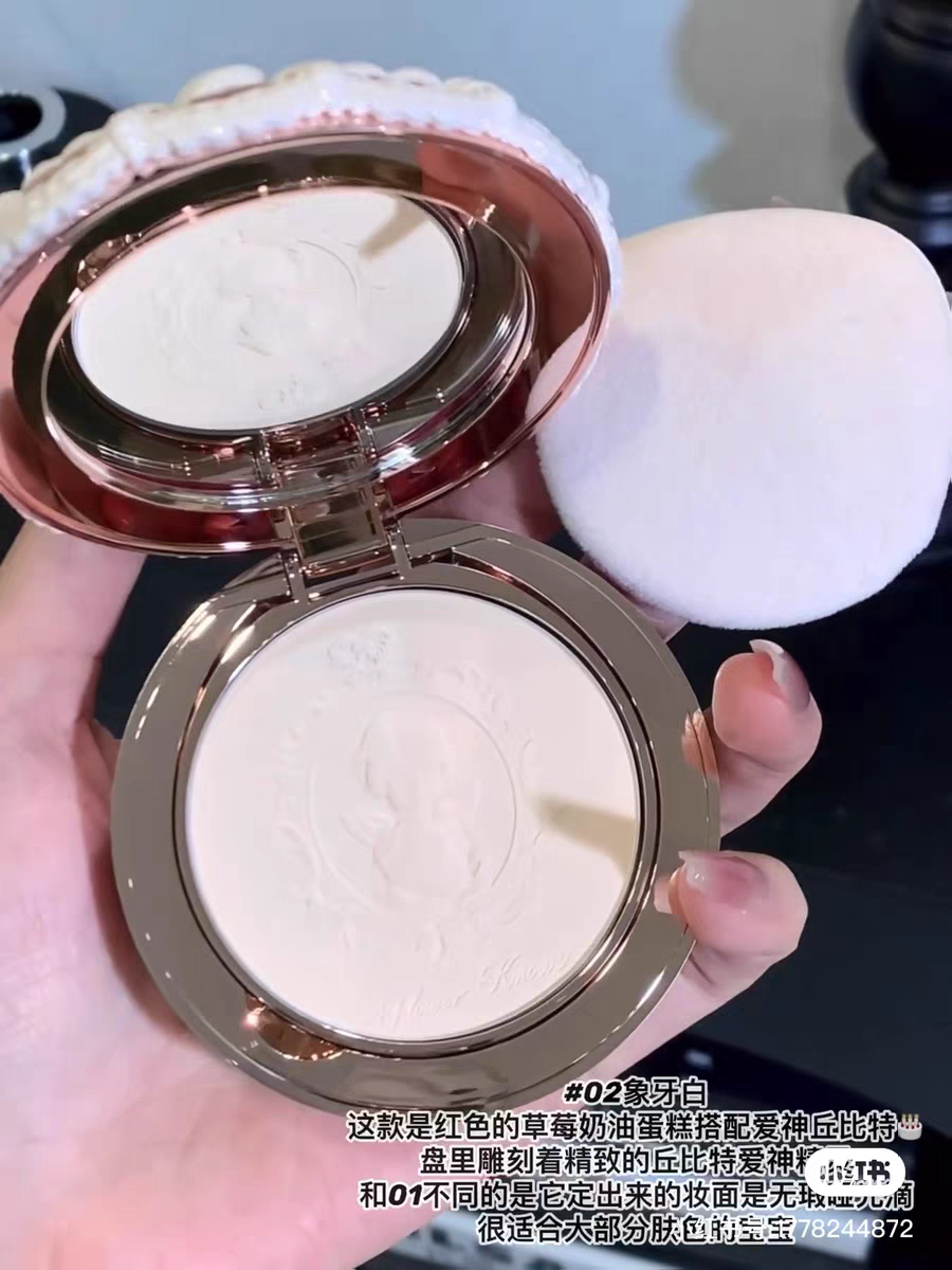 Flower Knows Strawberry Cupid Cake Shell Pearl Powder Compact for Setting Makeup, Brightening, Oil Control, Loose Powder for Dry and Oily Skin, Base Makeup